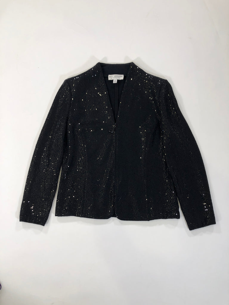 AKRIS Size 10 BLACK JACKET LONG SLEEVES HOOK EYE CLOSURE NWT