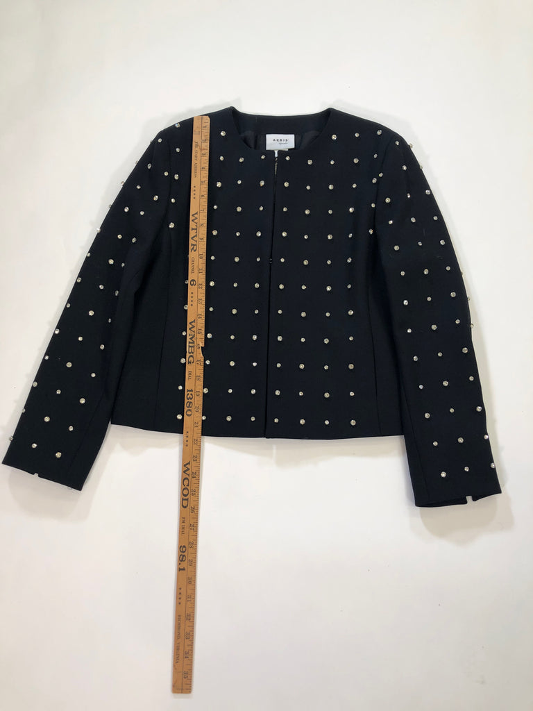 AKRIS Size 10 BLACK JACKET LONG SLEEVES HOOK EYE CLOSURE NWT