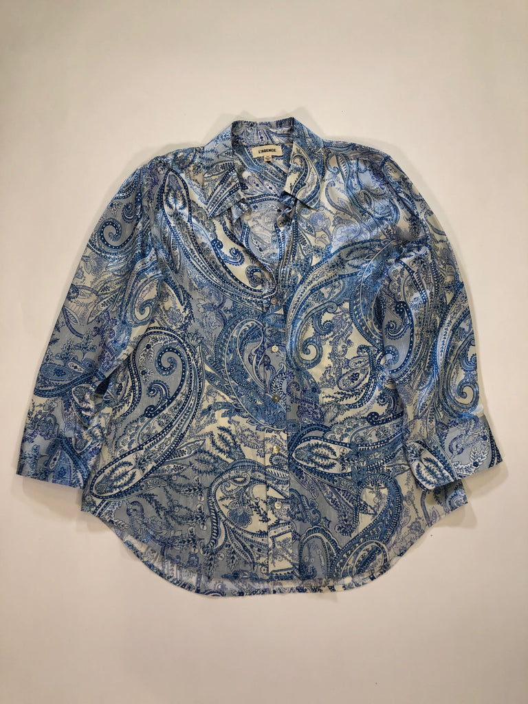 L'AGENCE Size M BLUE & WHITE BLOUSE SILK PAISLEY DANI