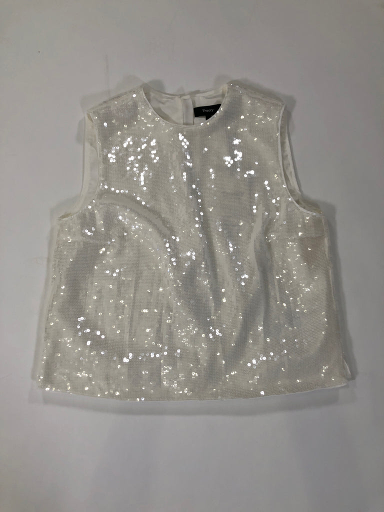 THEORY Size M WHITE TOP SLEEVELESS SEQUINS NWT