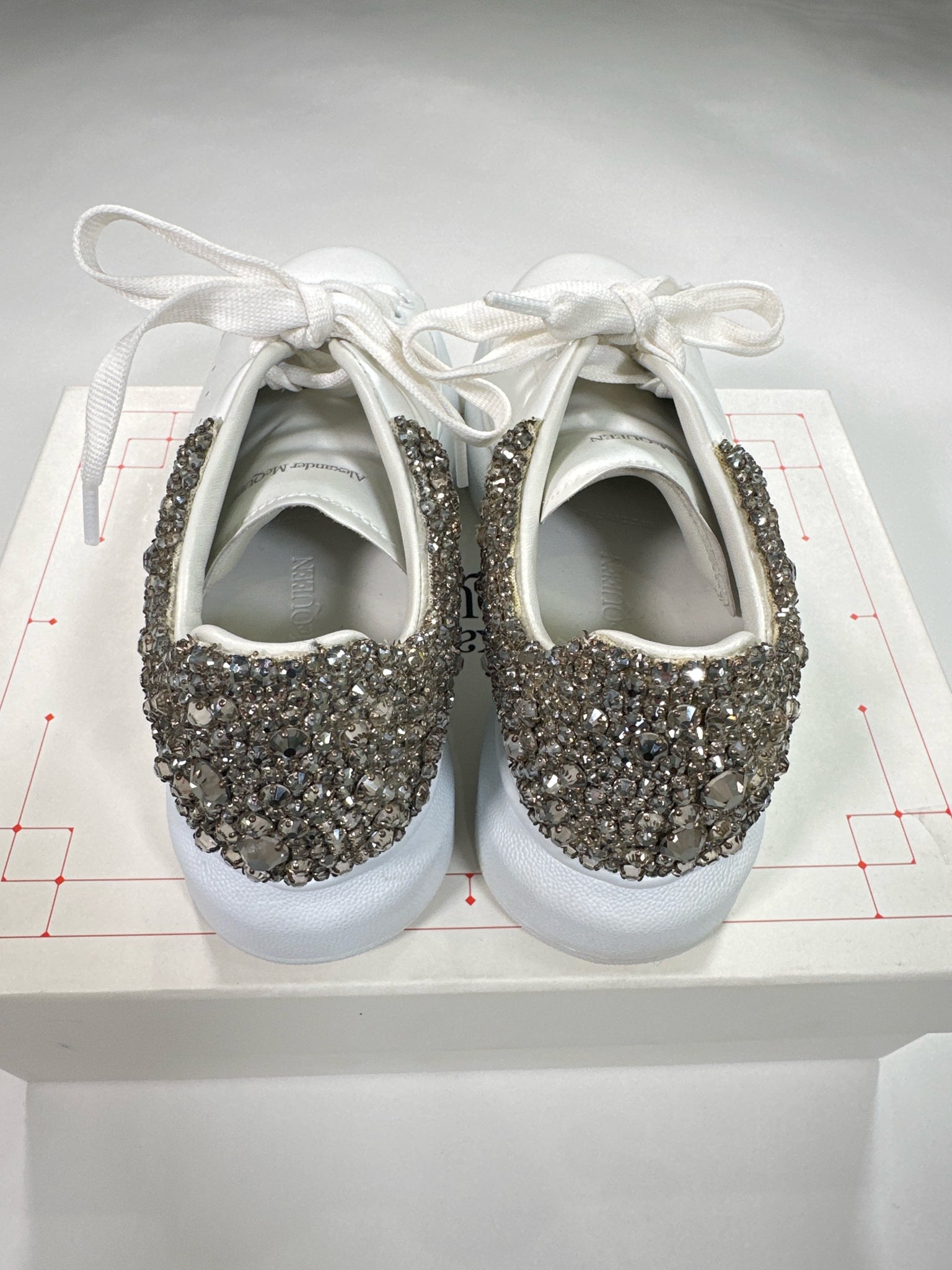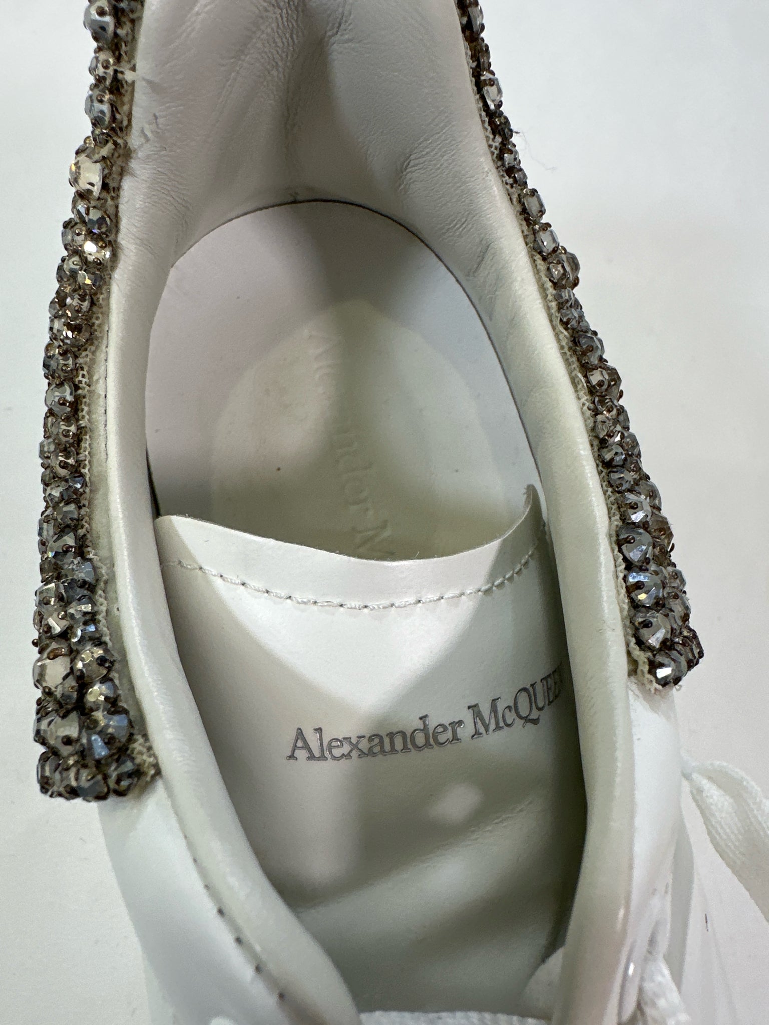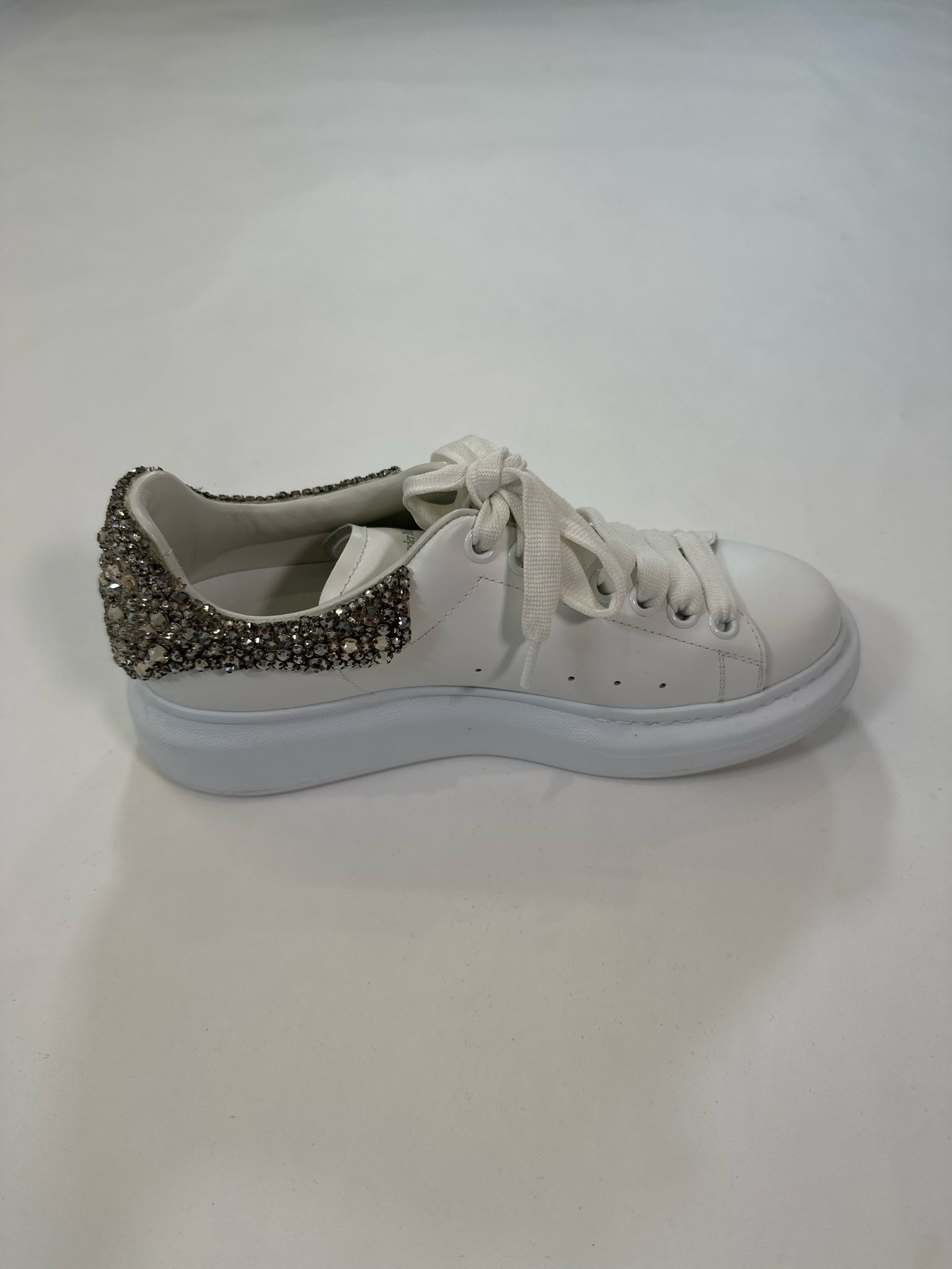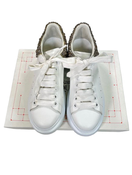 ALEXANDER MCQUEEN Size 38 WHITE SHOE LARRY SNEAKER CRYSTALS WITH DUST BAGS BOX