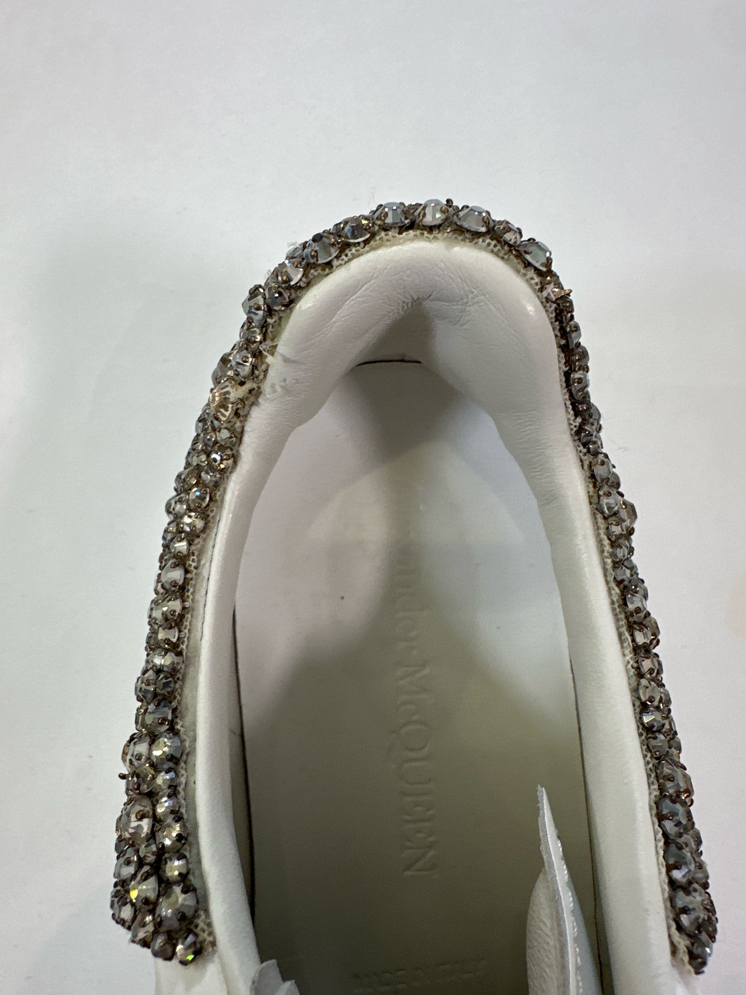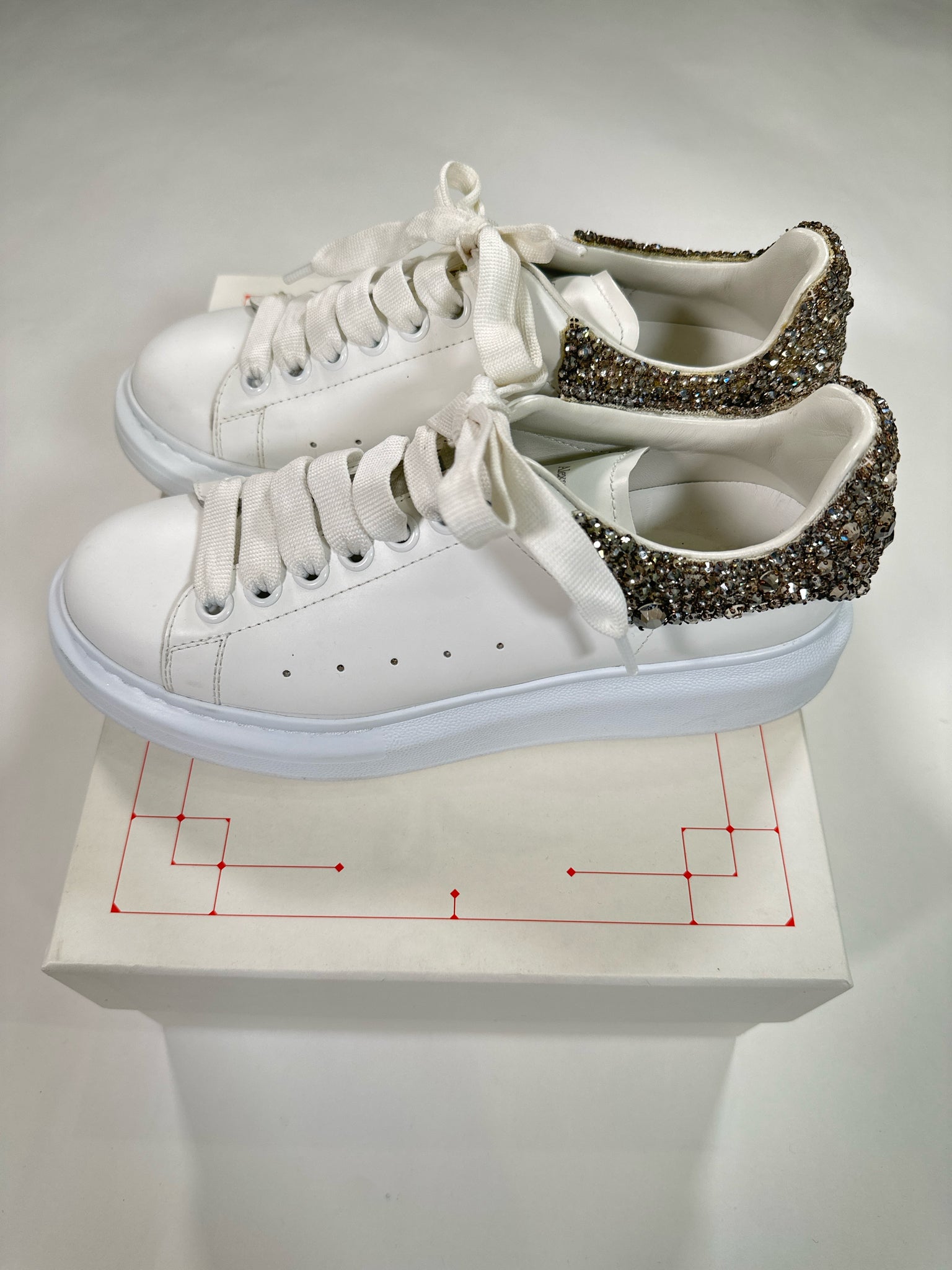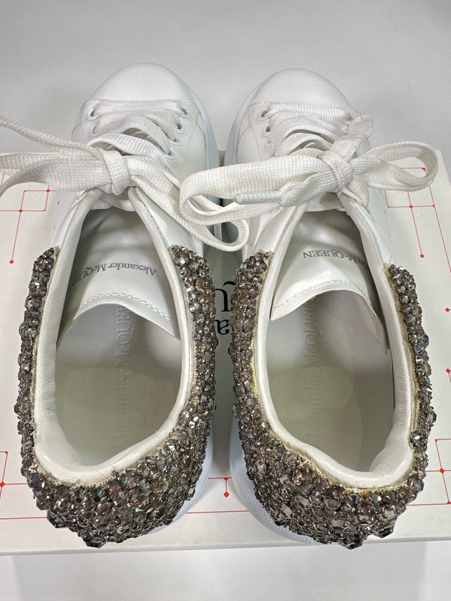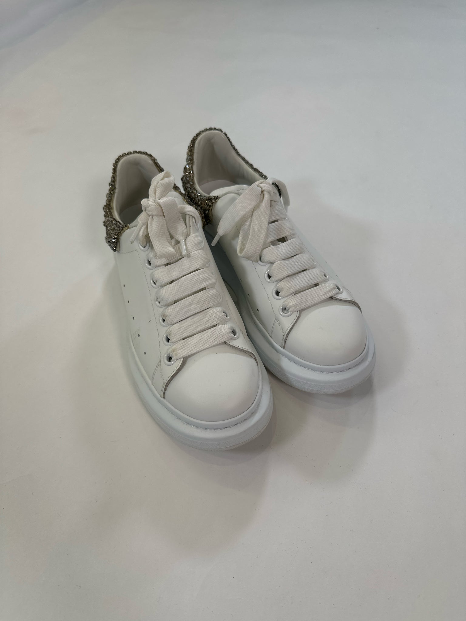 ALEXANDER MCQUEEN Size 38 WHITE SHOE LARRY SNEAKER CRYSTALS WITH DUST BAGS BOX