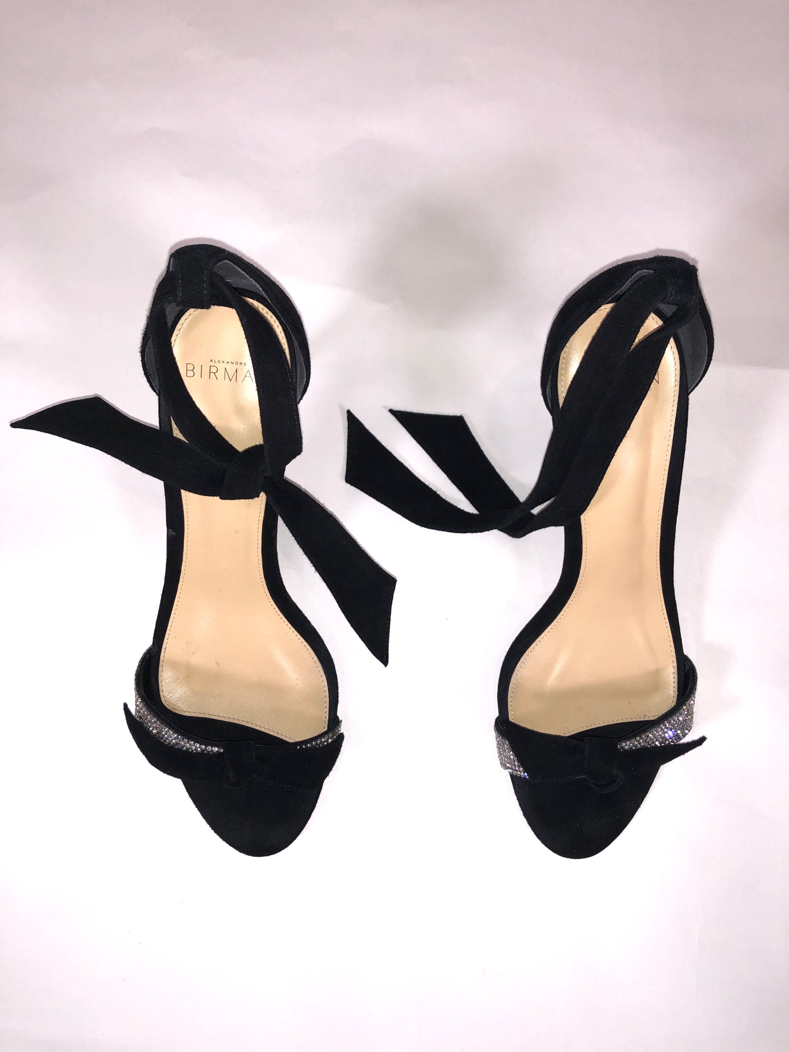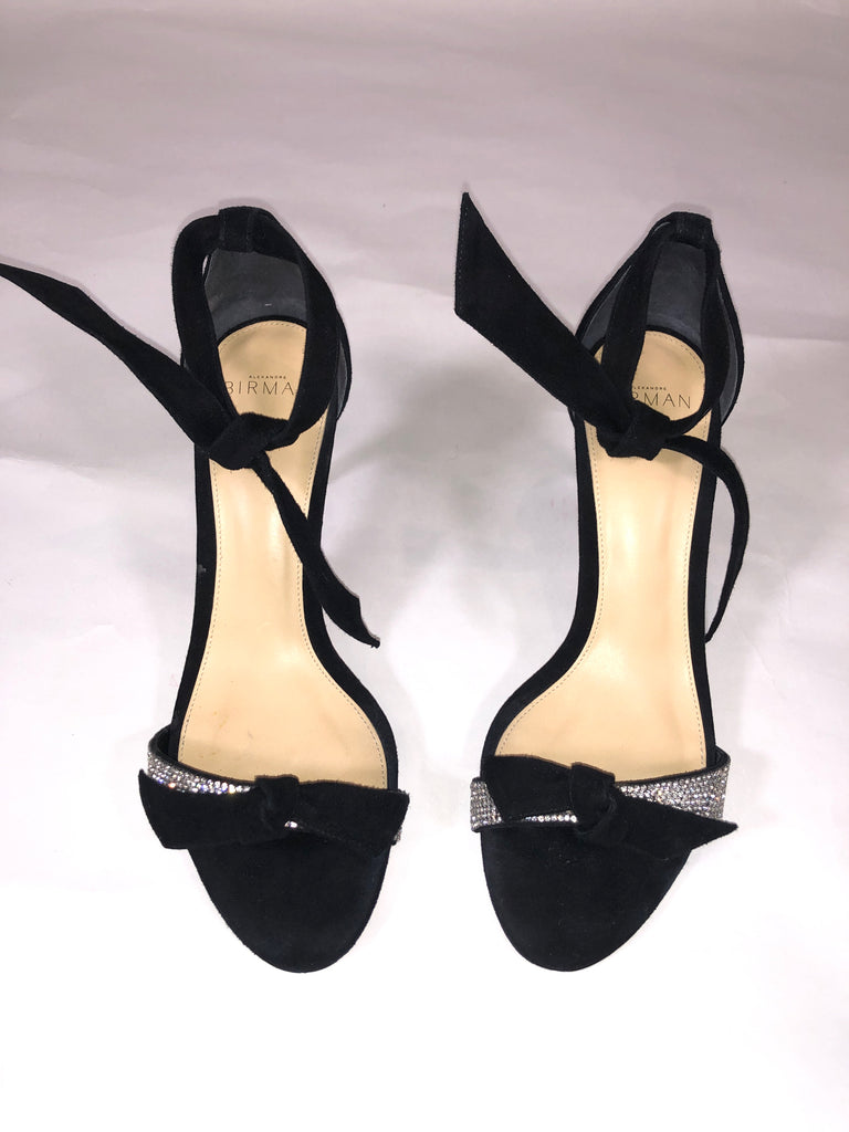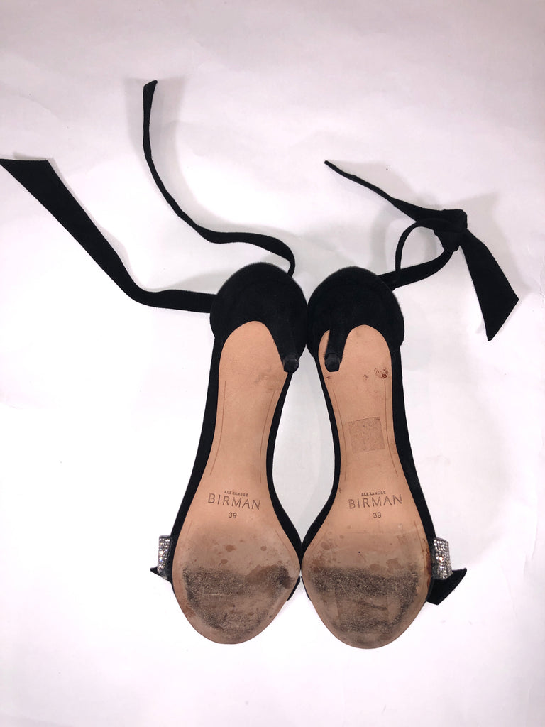 ALEXANDRE BIRMAN Size 39 BLACK SHOE BLACK SUEDE CRYSTALS DETAIL PEEP ANKLE TIE