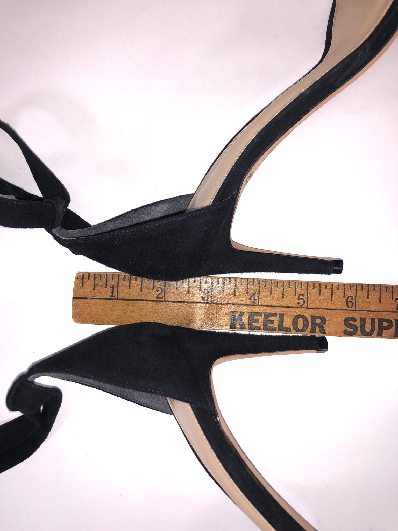 BLACK HEEL ANKLE STRAP PEEP SILVER CRYSTALS SUEDE