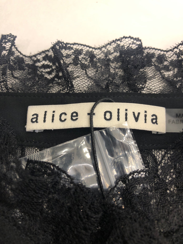 ALICE + OLIVIA Size M BLACK TOP LONG SLEEVES LAYERS OF LACE NWT