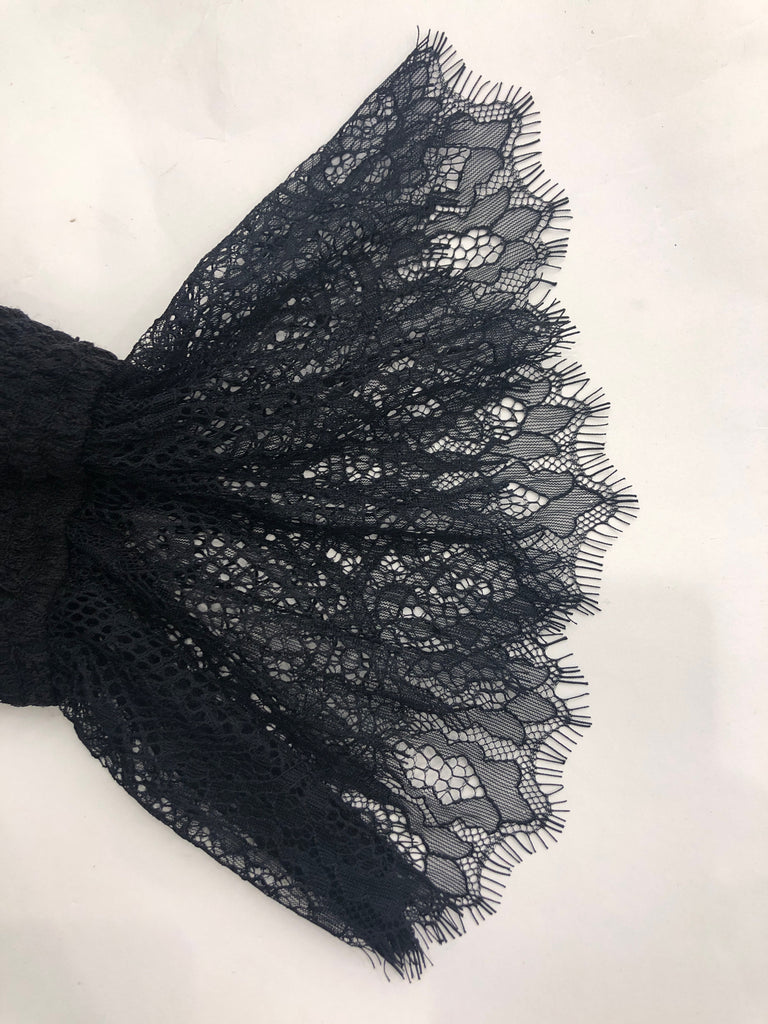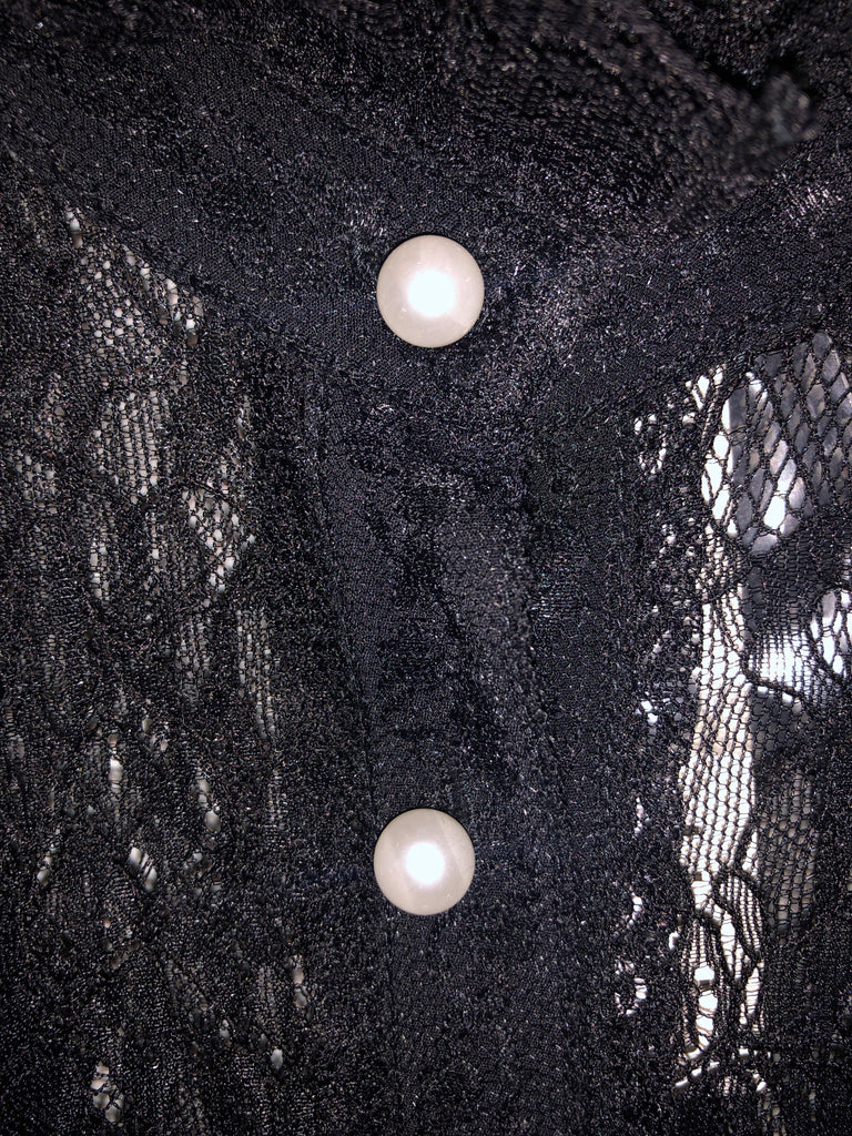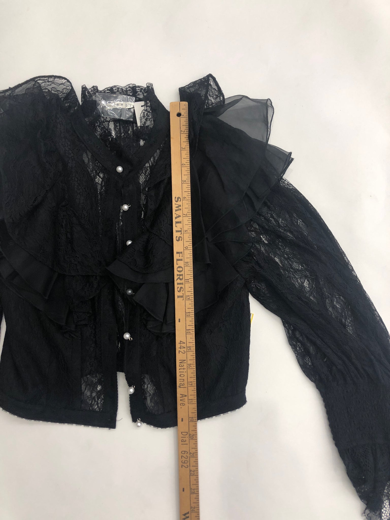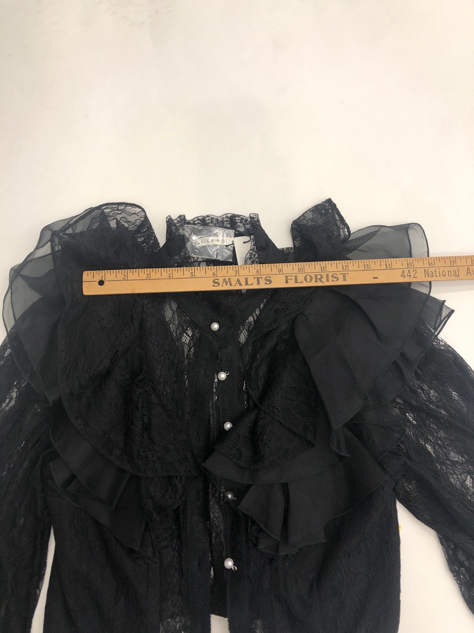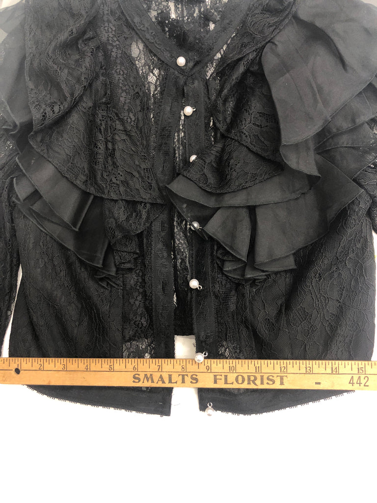 BLACK LACE LS RUFFLES NWT WHITE "PEARL" BUTTONS