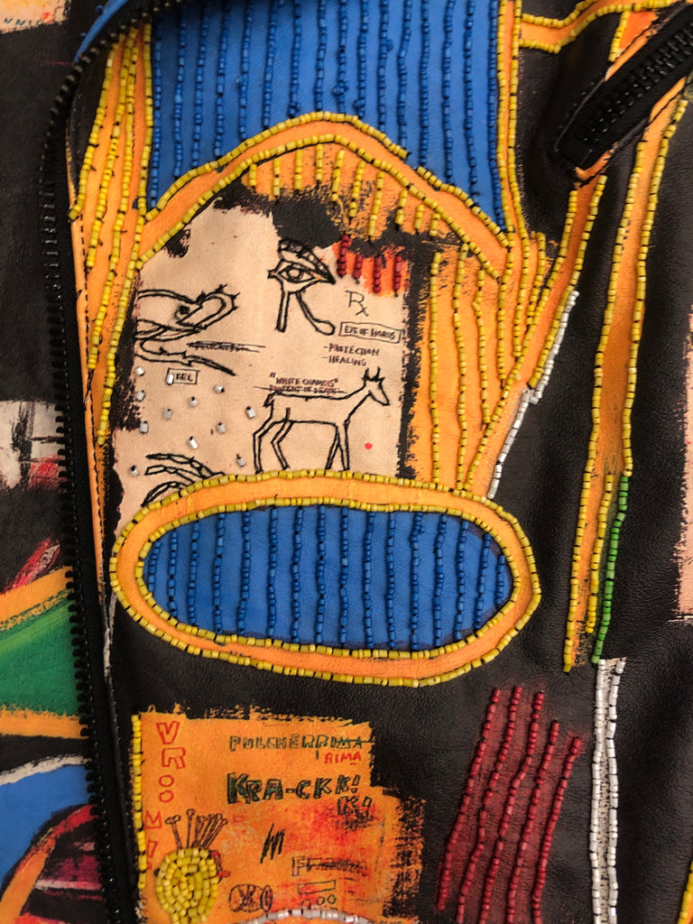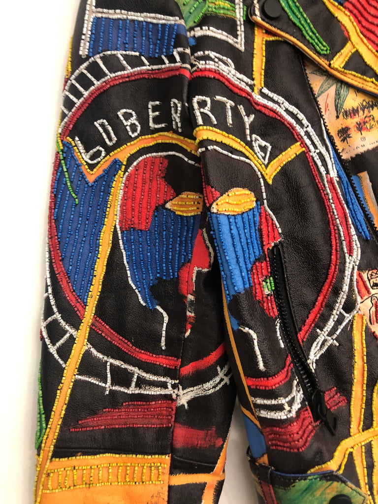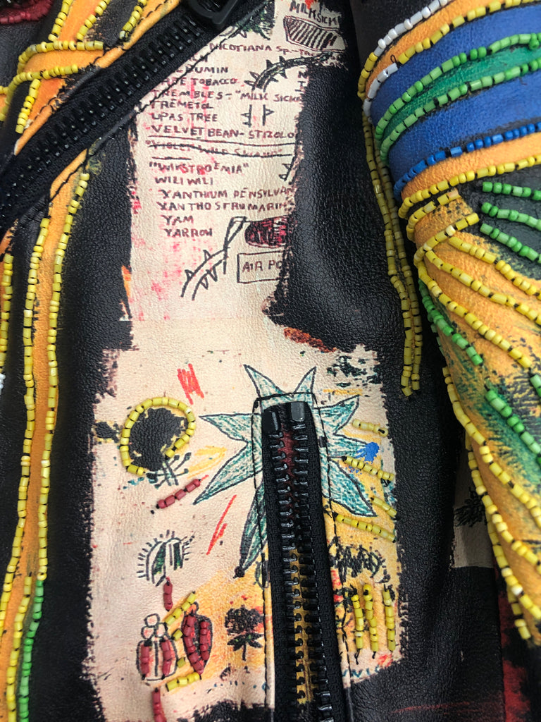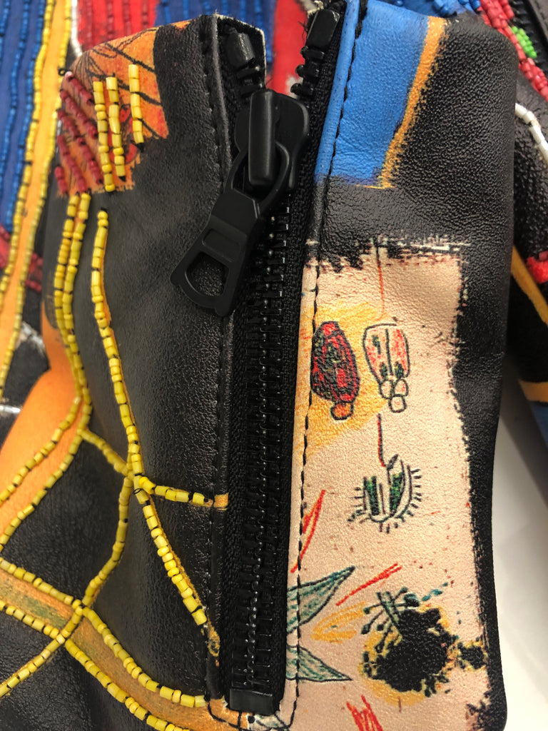 YELLOW BLUE RED GREEN BEADED LAMB LEATHER