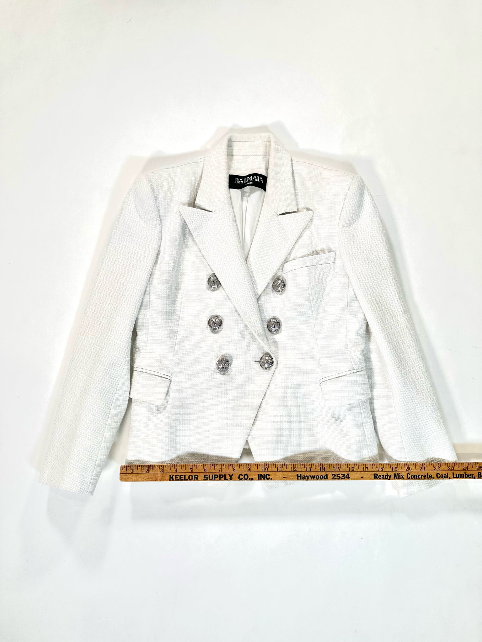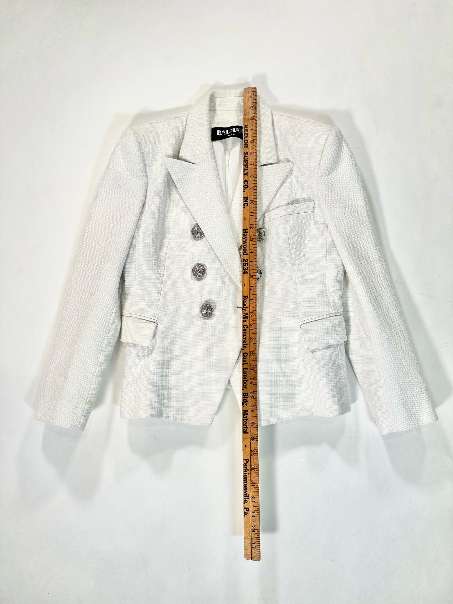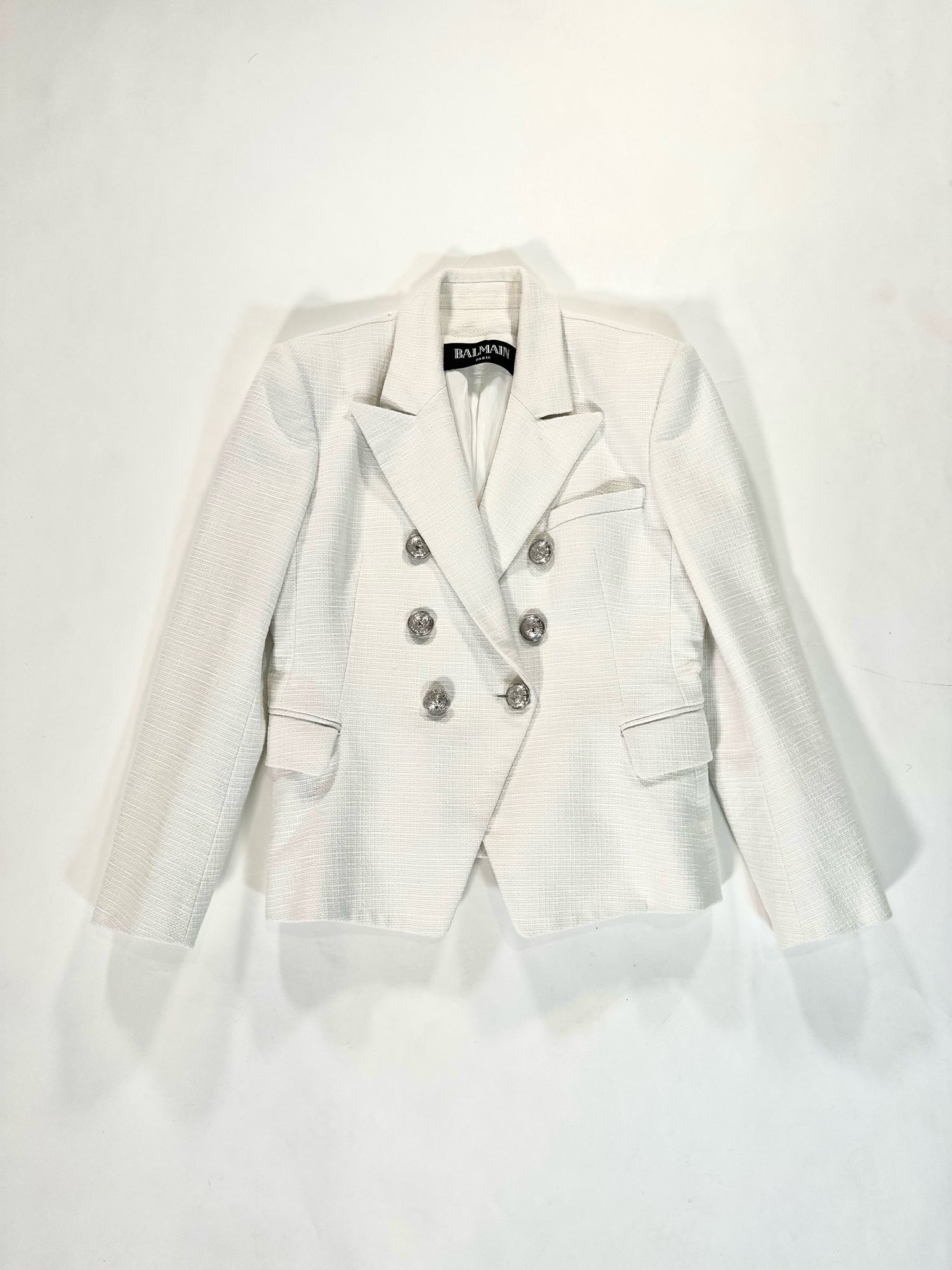 BALMAIN Size M WHITE BLAZER SILVER TONE BUTTONS DOUBLE BREASTED