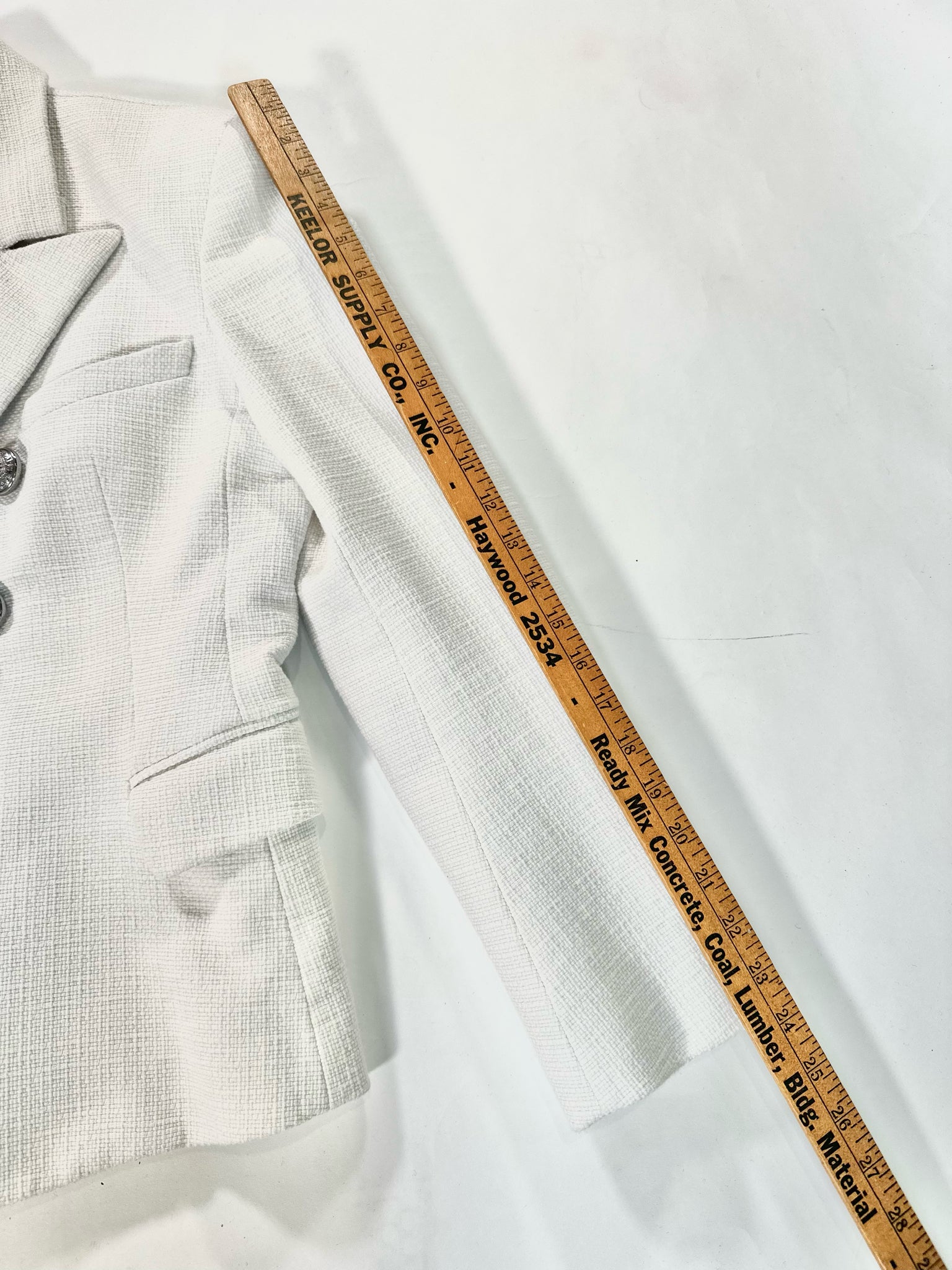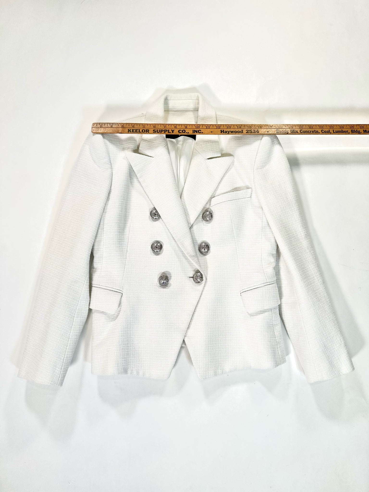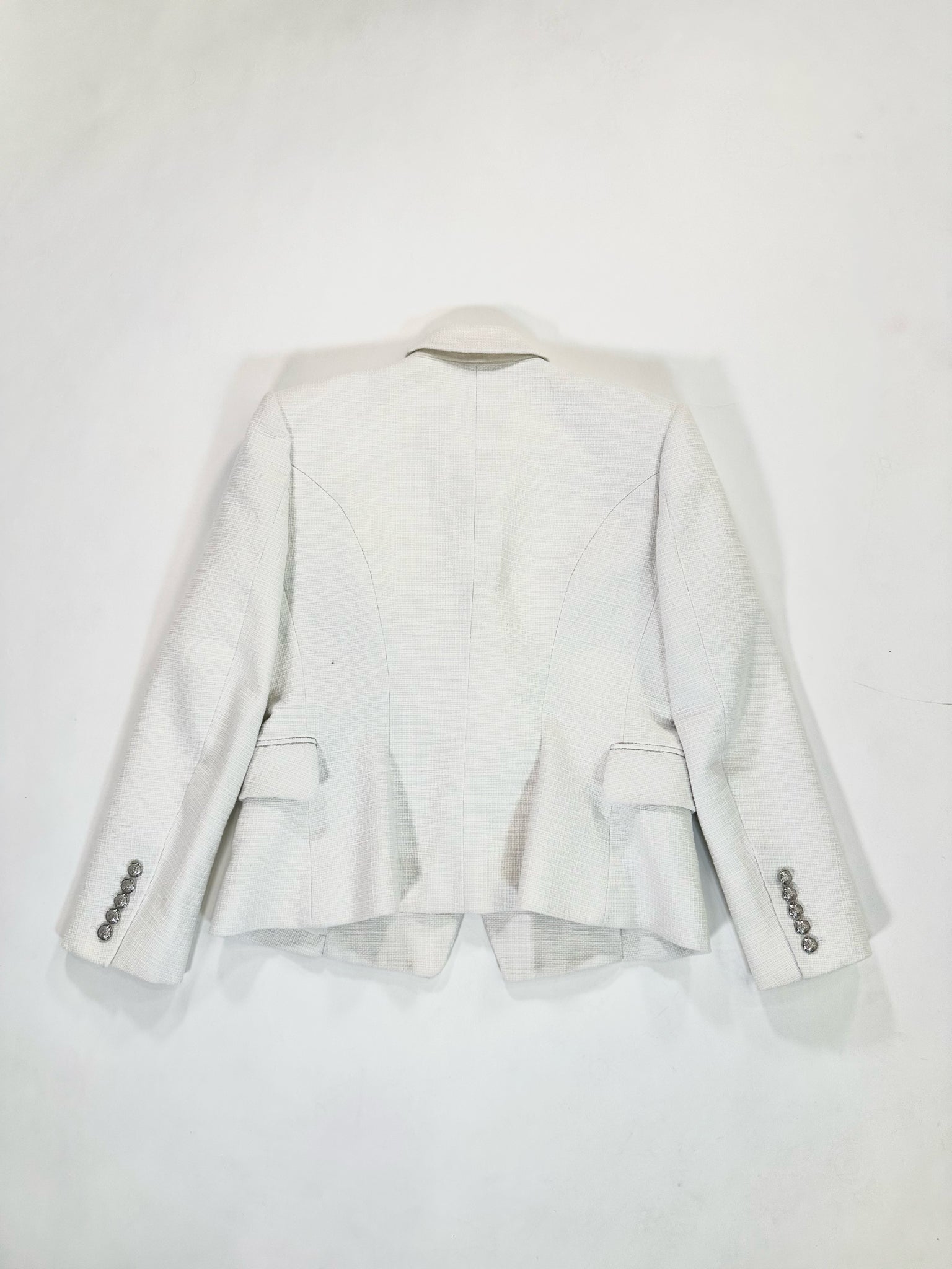 WHITE TEXTURE LS SILVER TONE BUTTONS DOUBLE BREASTED (TAGS SAYS 46) COTTON VISCOSE BLEND