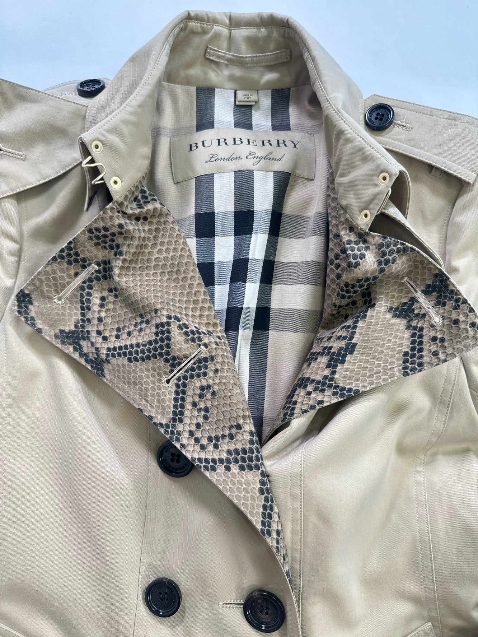 BURBERRYS' Size 4/6 KHAKI COAT SNAKE PRINT PLAID LINED