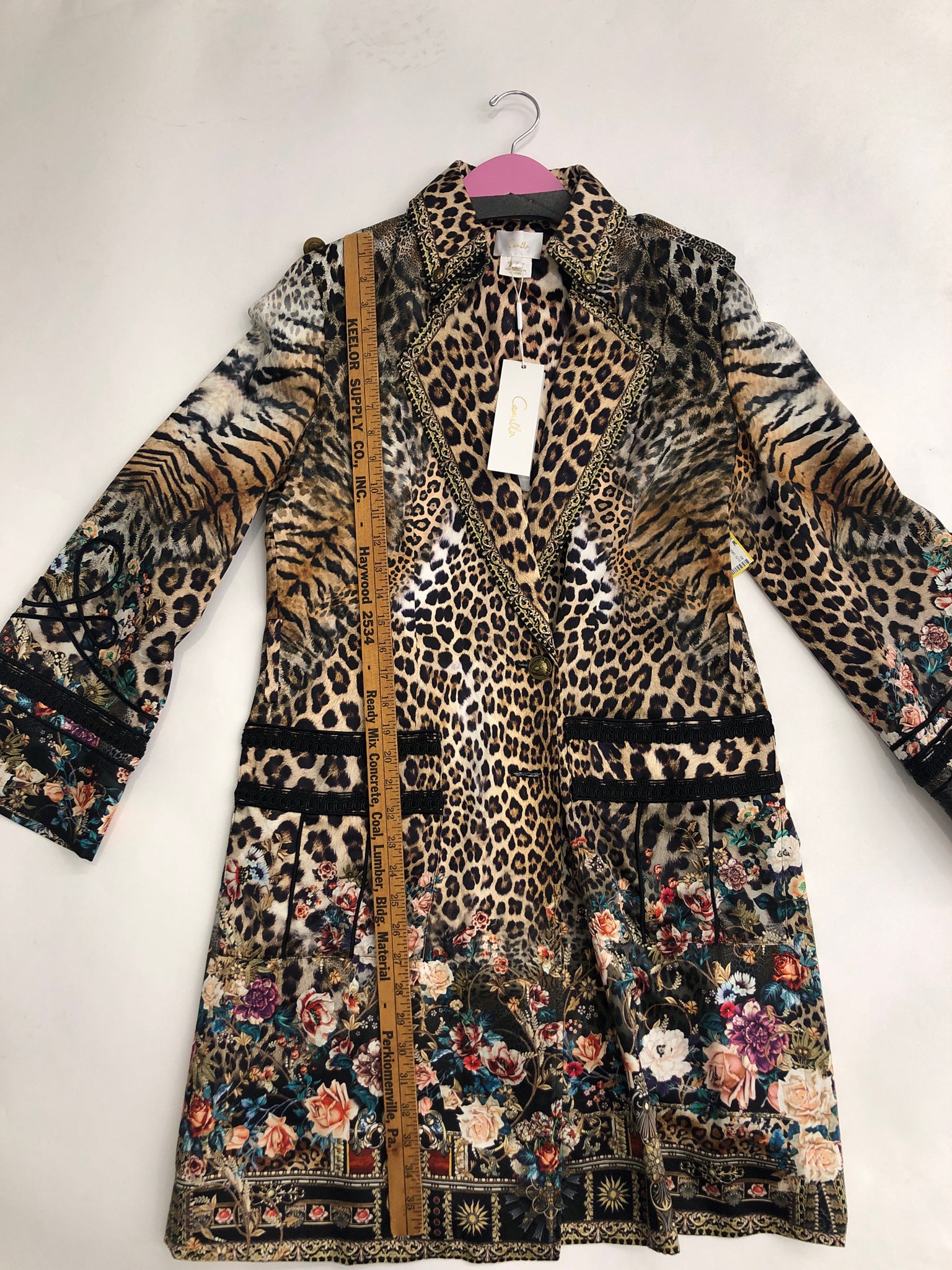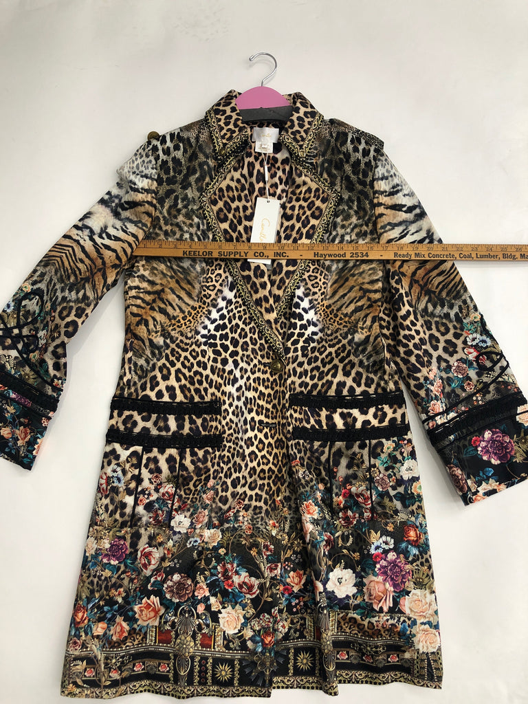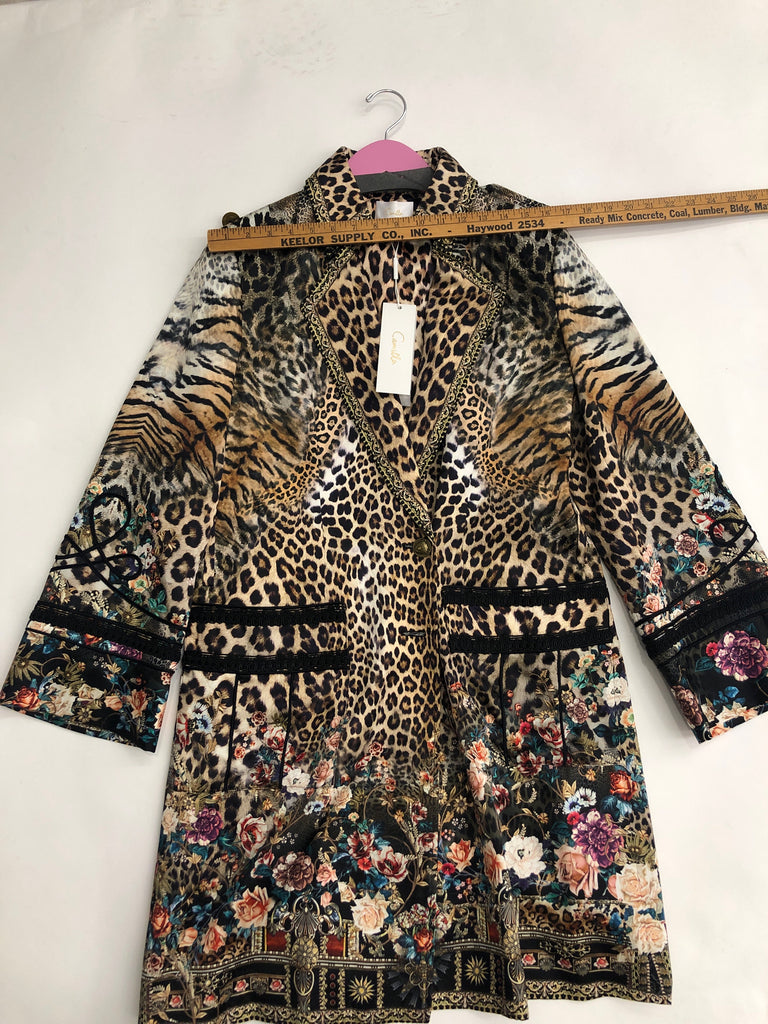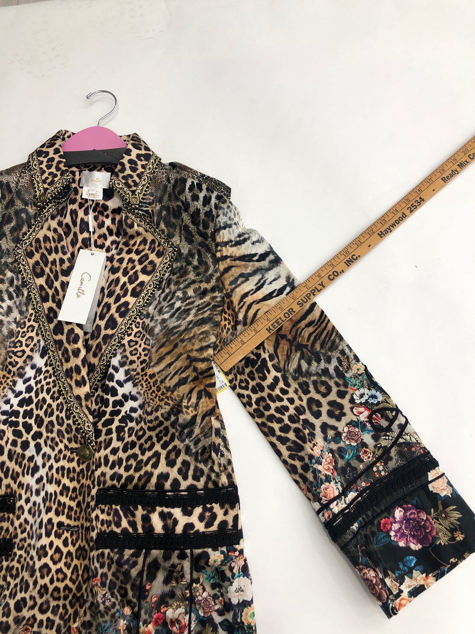 CAMILLA Size S JACKET TAN BEIGE BLACK LEOPARD PRINT FLORAL