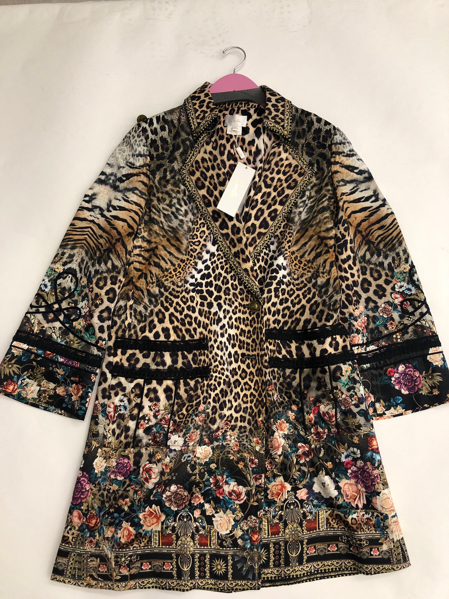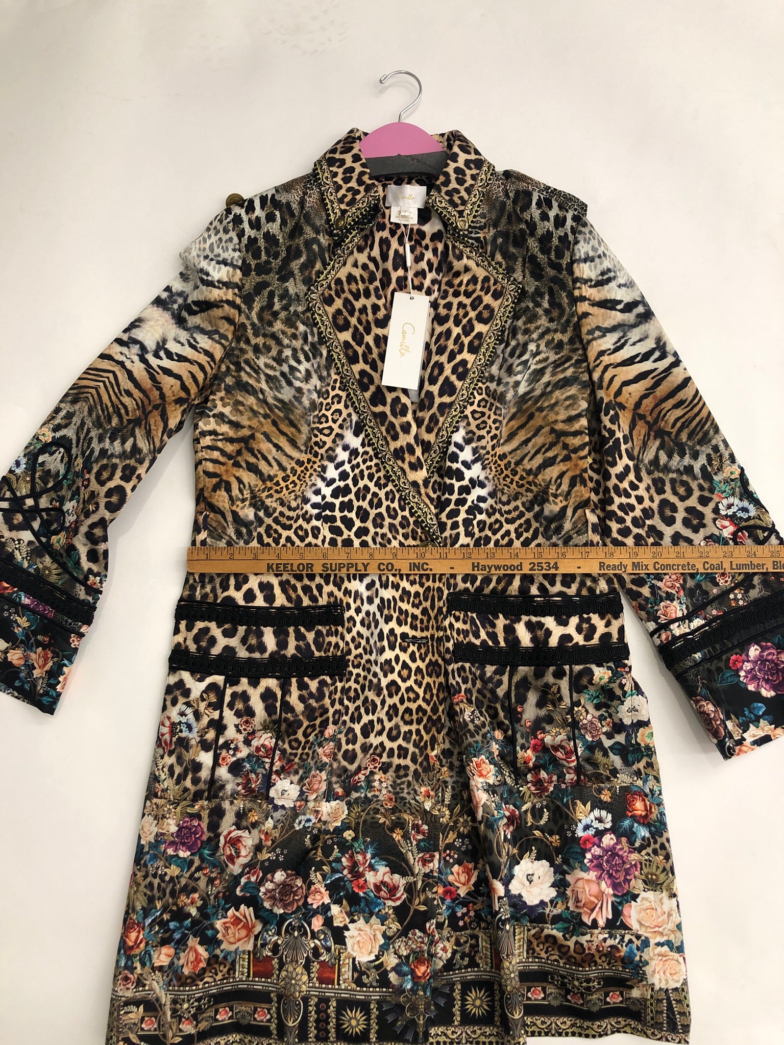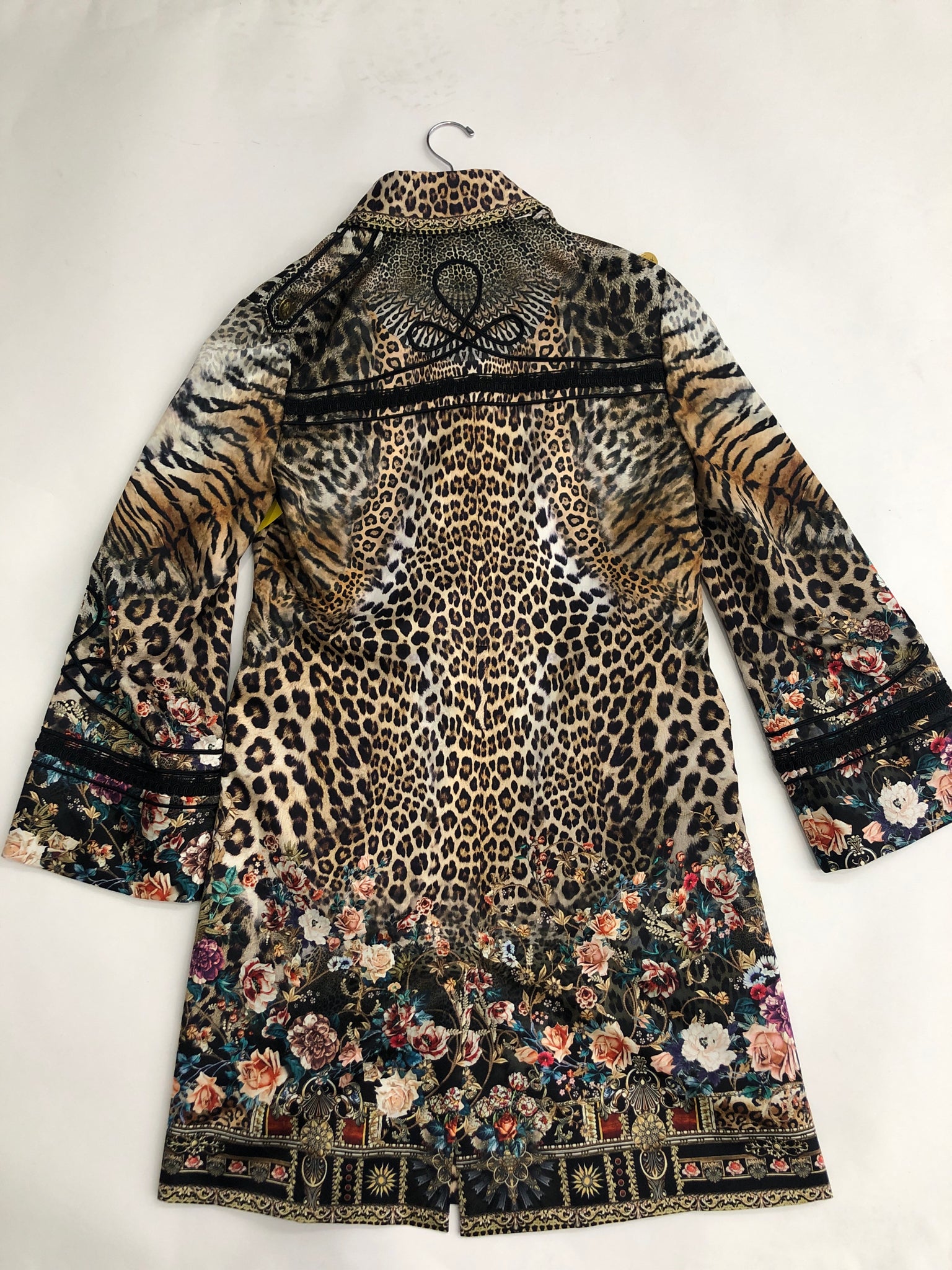 CAMILLA Size S JACKET TAN BEIGE BLACK LEOPARD PRINT FLORAL