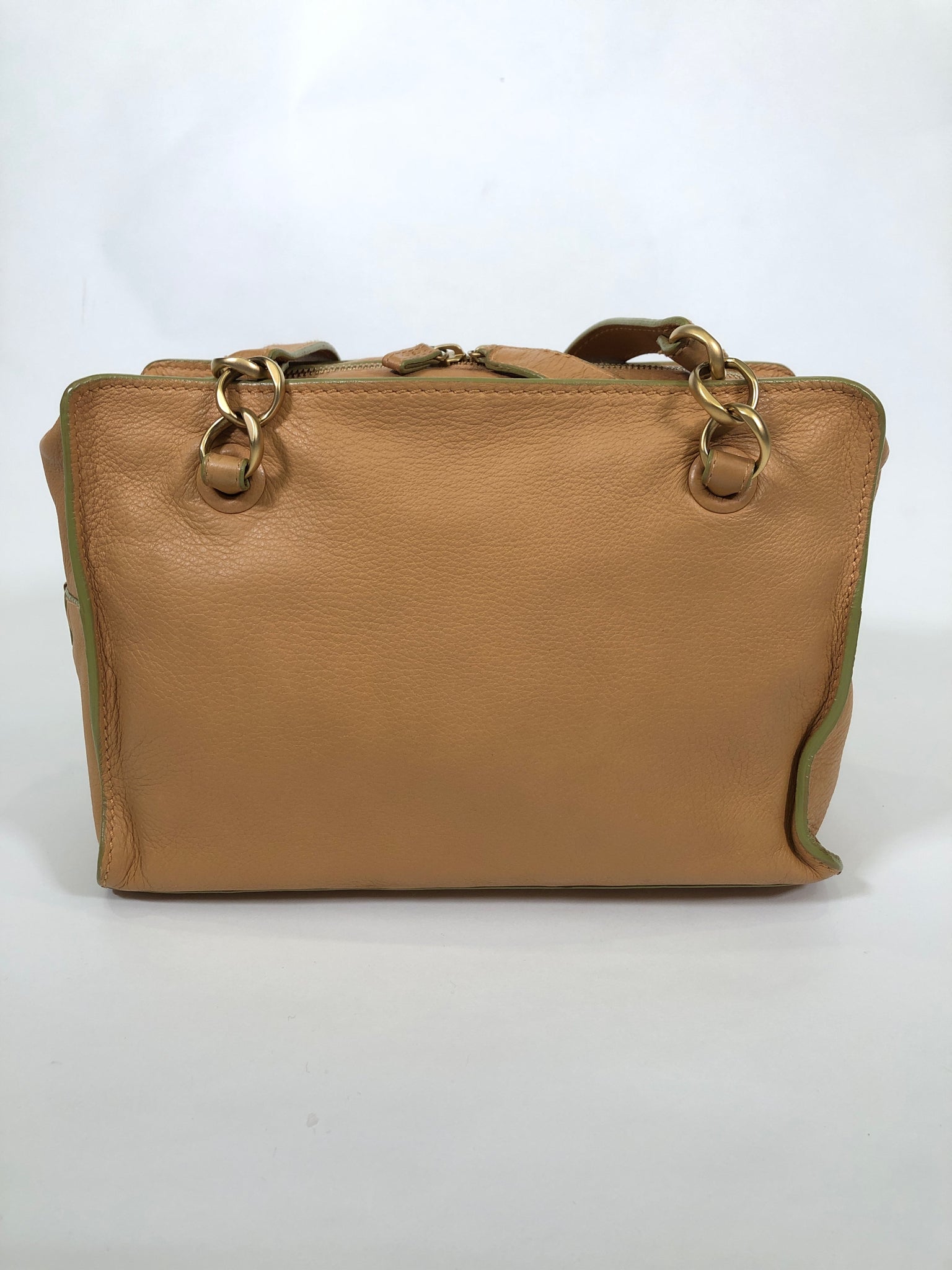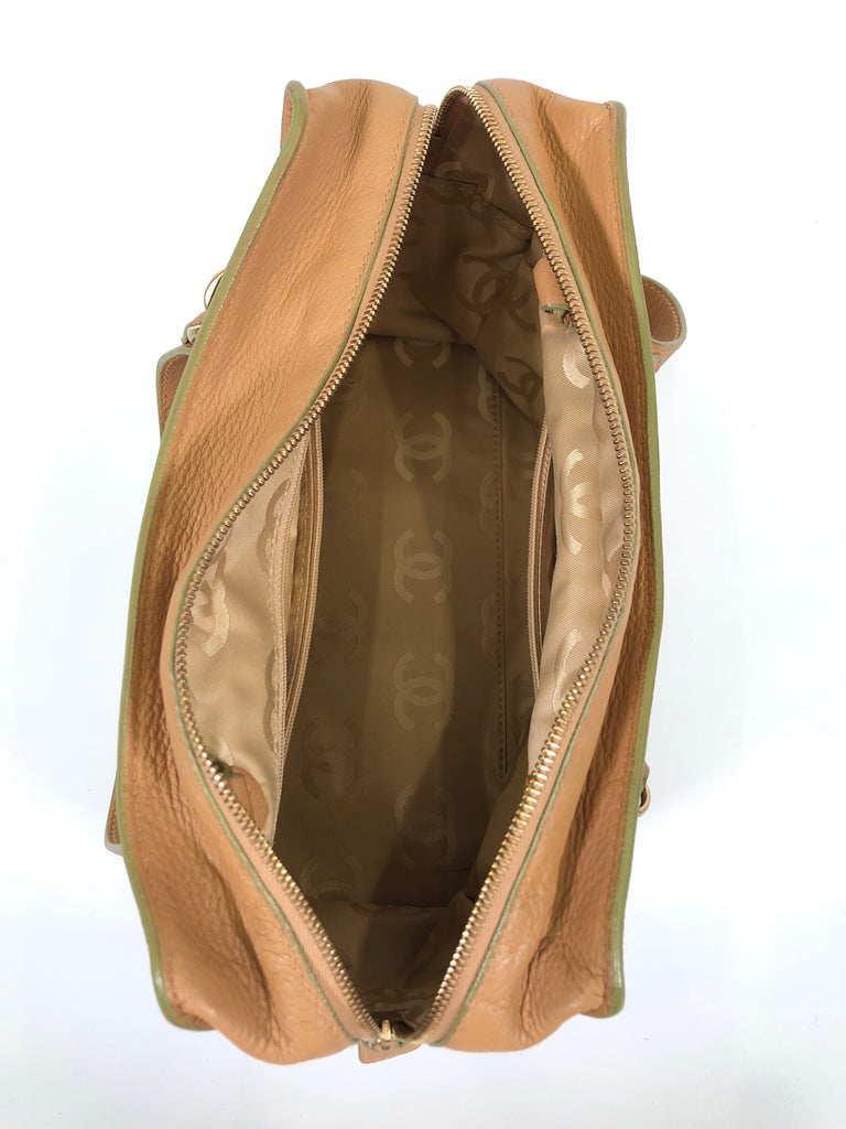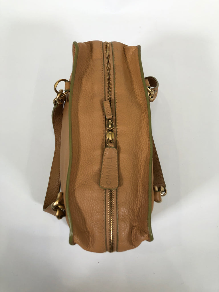 CHANEL Size M BEIGE LEATHER WHIPSTITCH PALE GREEN BOWLER - BEIGE / M is backordered and will ship as soon as it is back in stock.