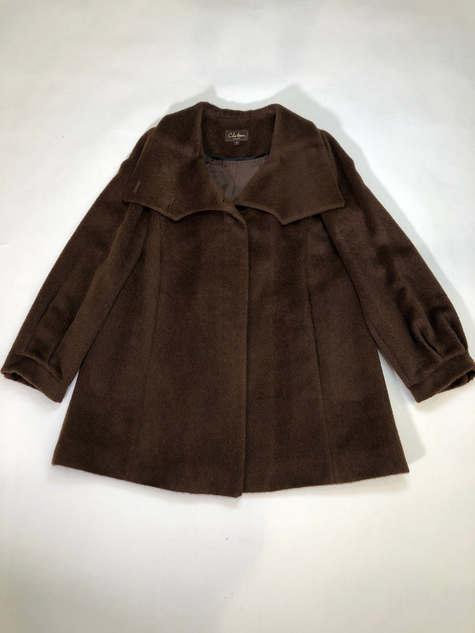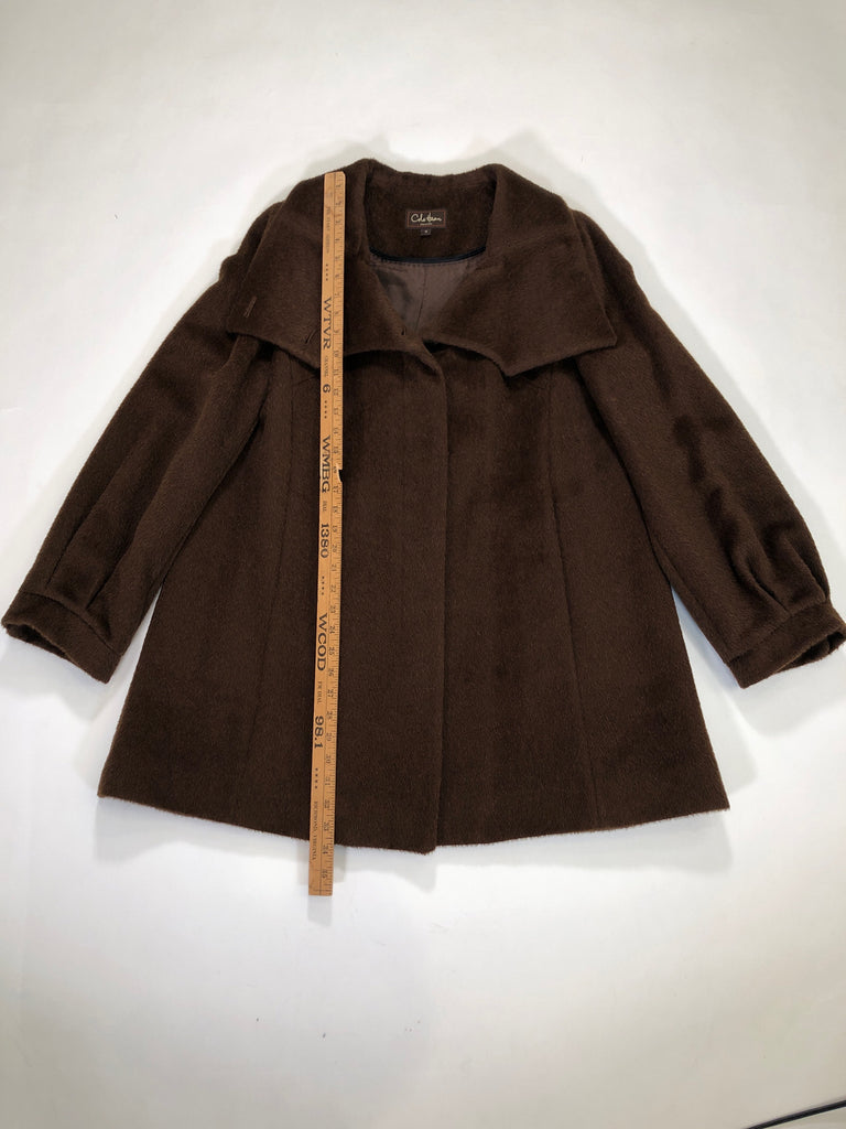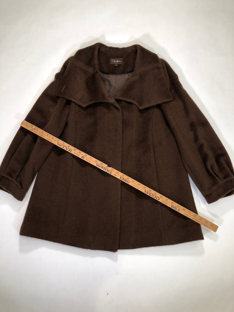 COLE HAAN Size 10 BROWN FUZZY JACKET ALPACA WOOL BLEND LONG SLEEVES SIX BUTTONS