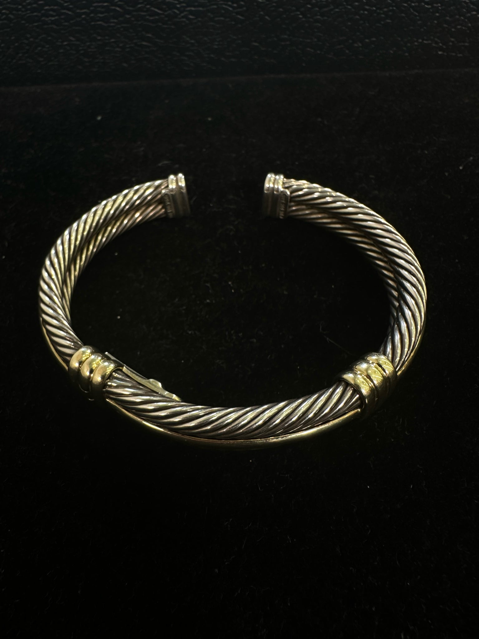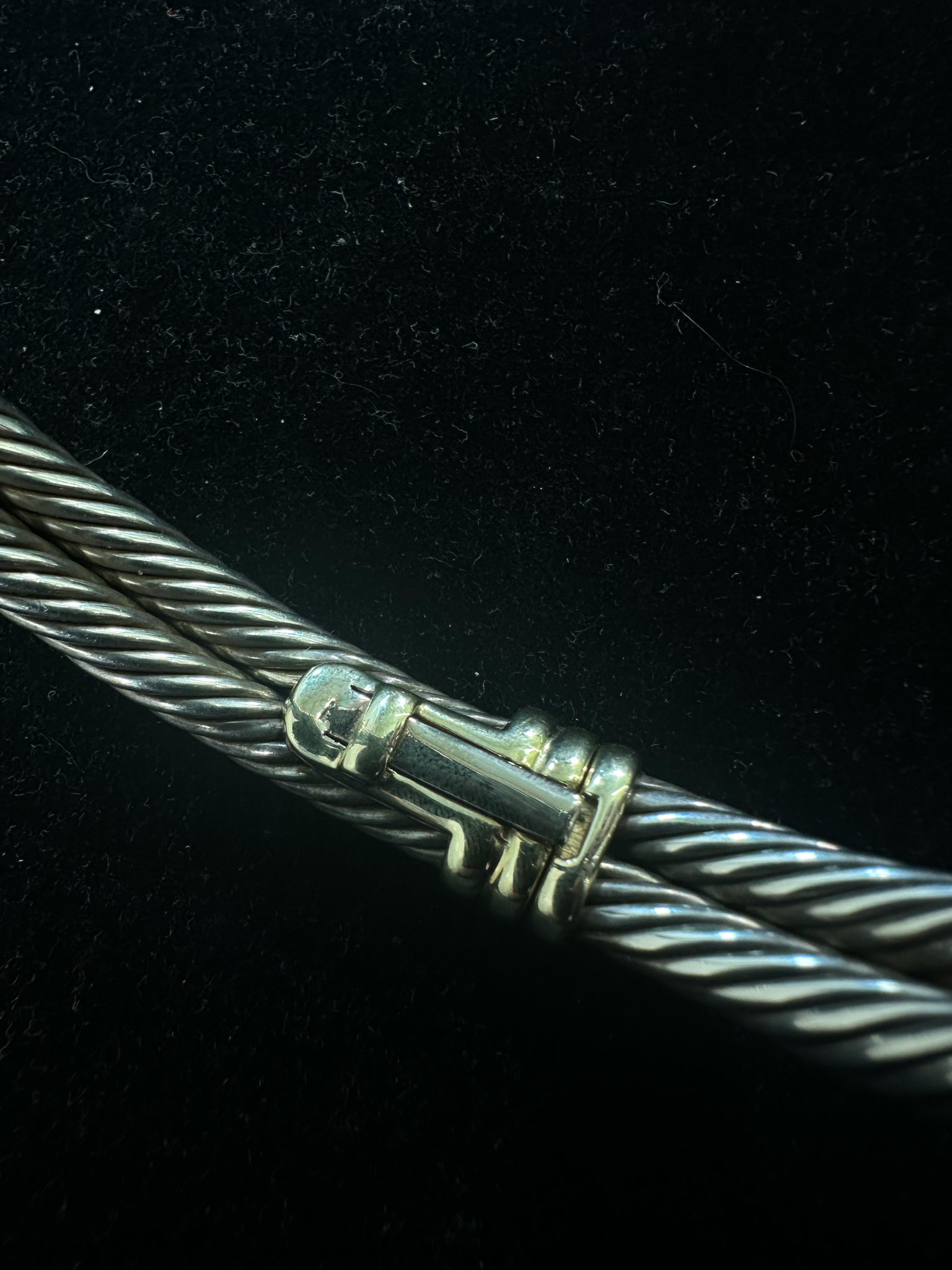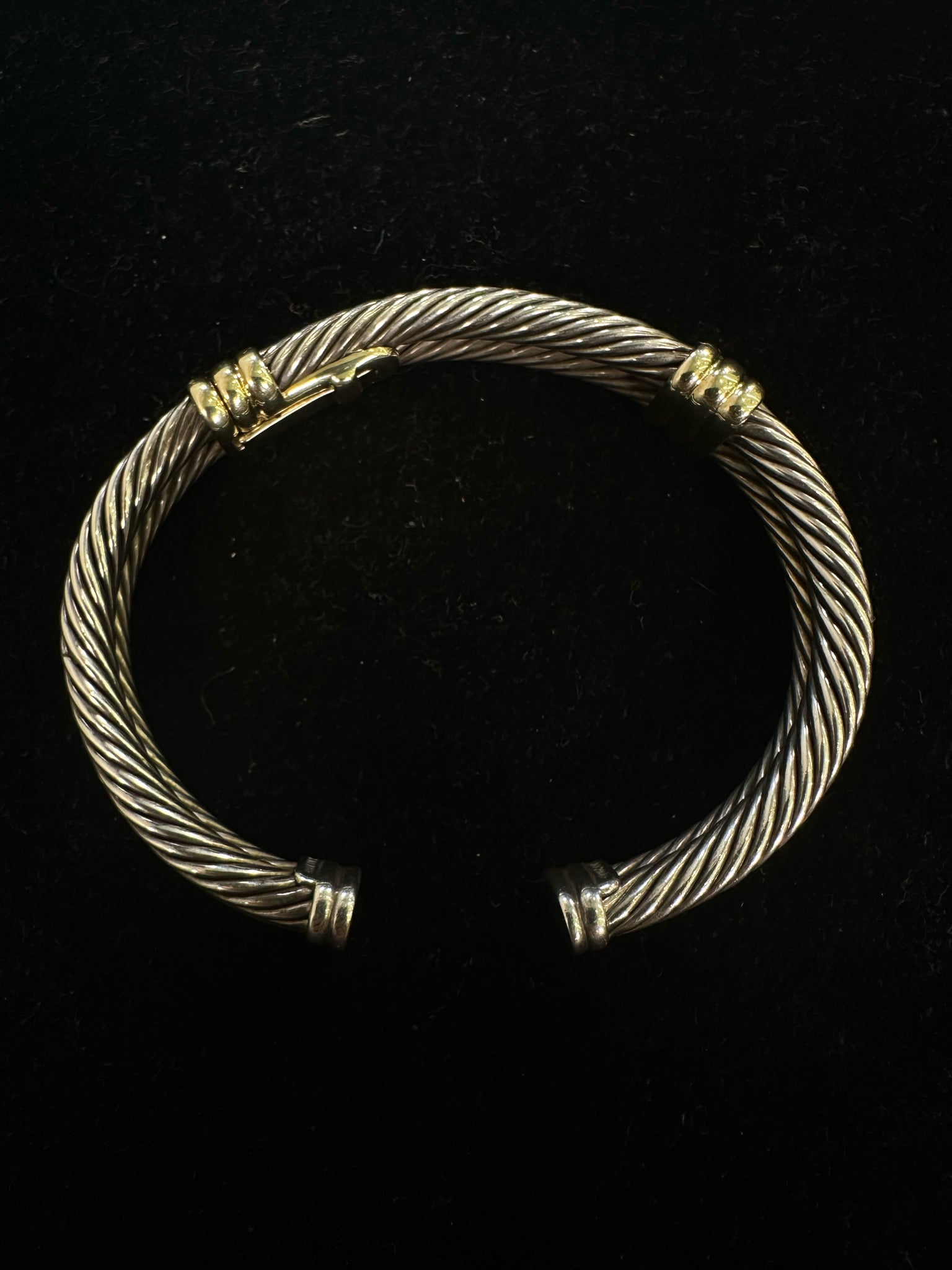 DAVID YURMAN SILVER BRACELET STERLING CABLE HINGED OPENING 14K DETAIL