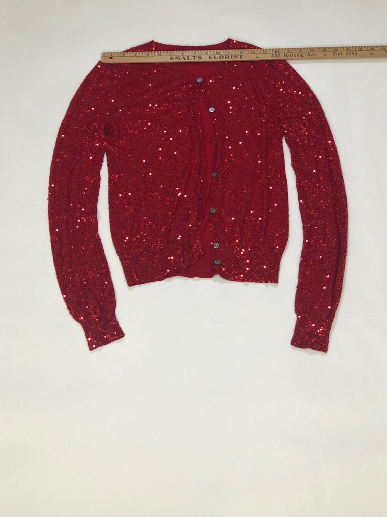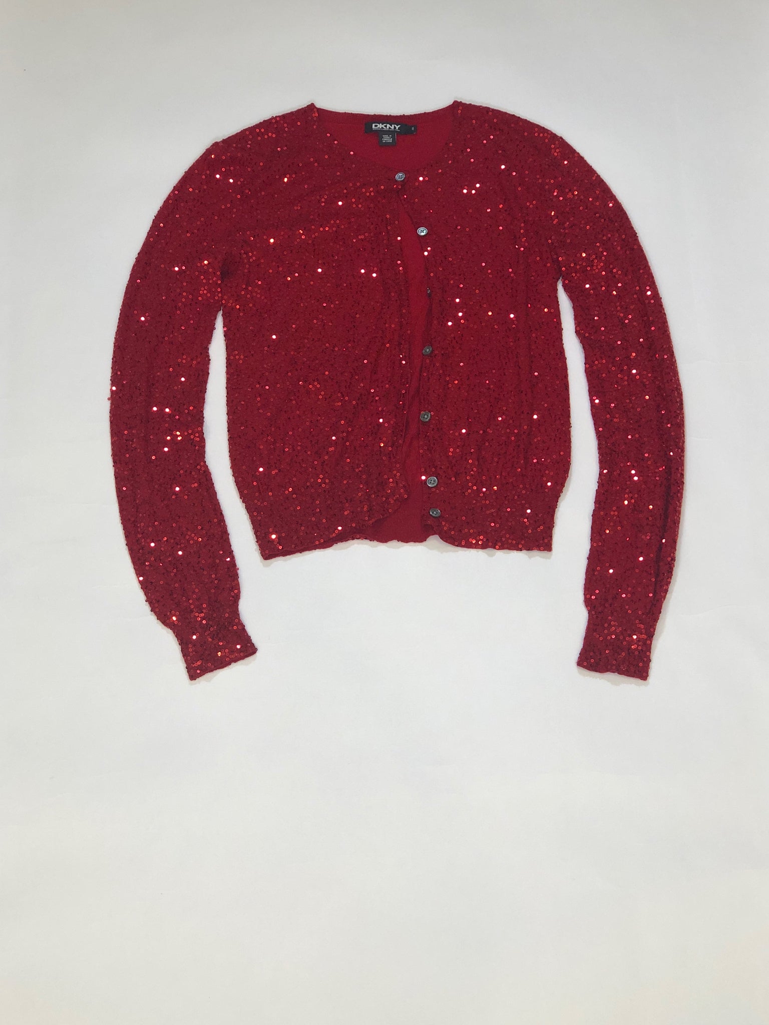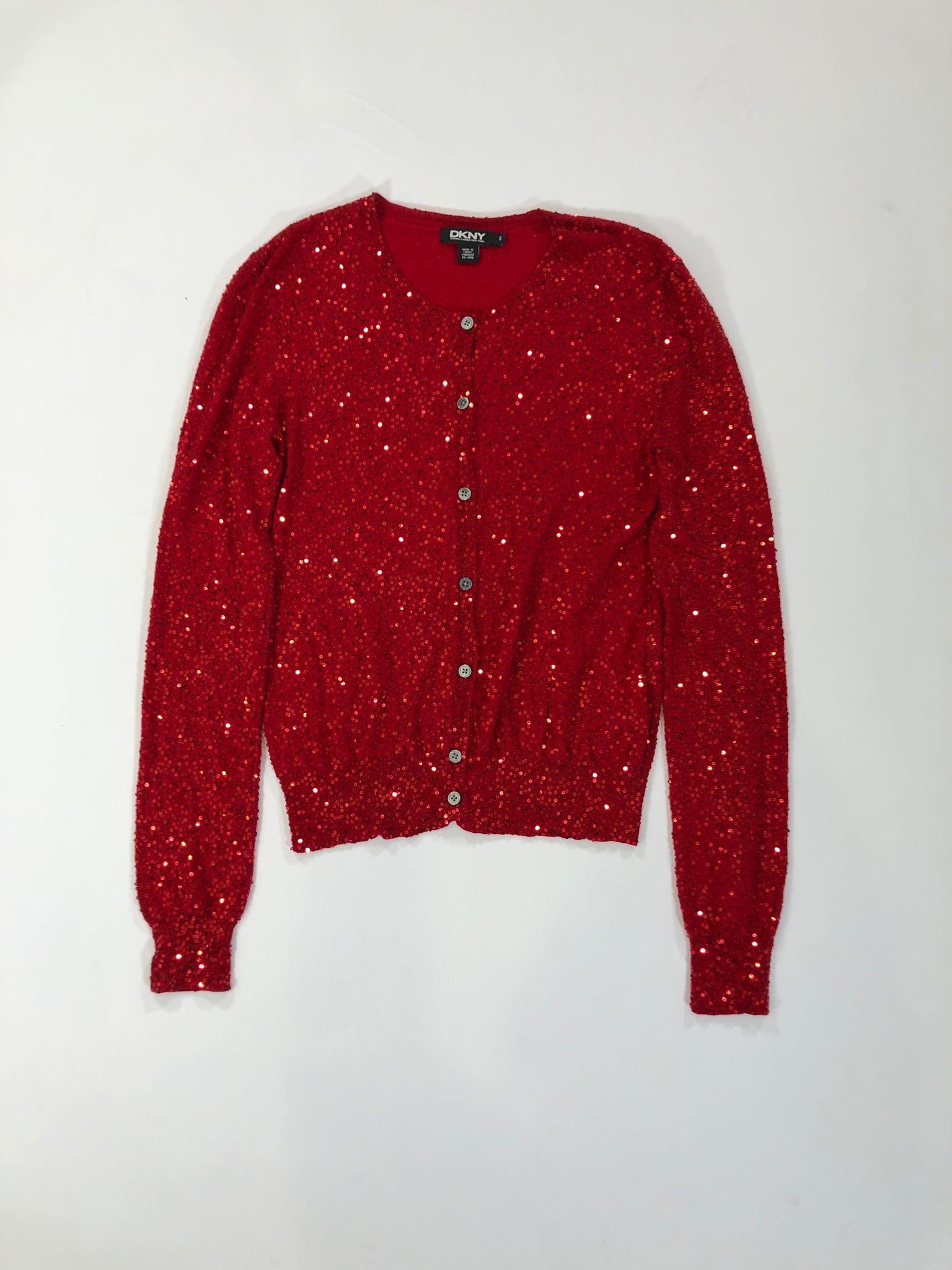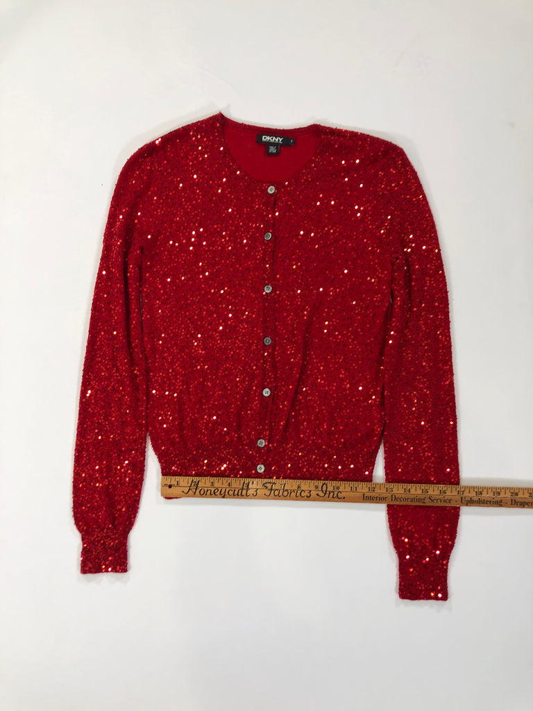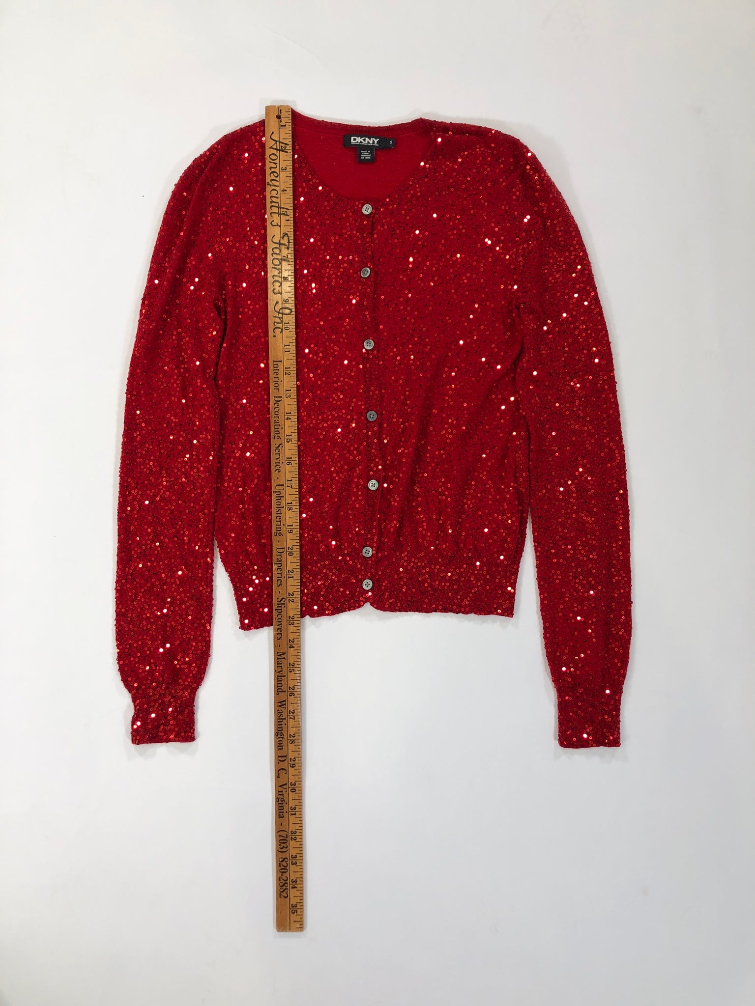 DKNY Size S RED SWEATER SEQUINS CARDIGAN - RED / S is backordered and will ship as soon as it is back in stock.