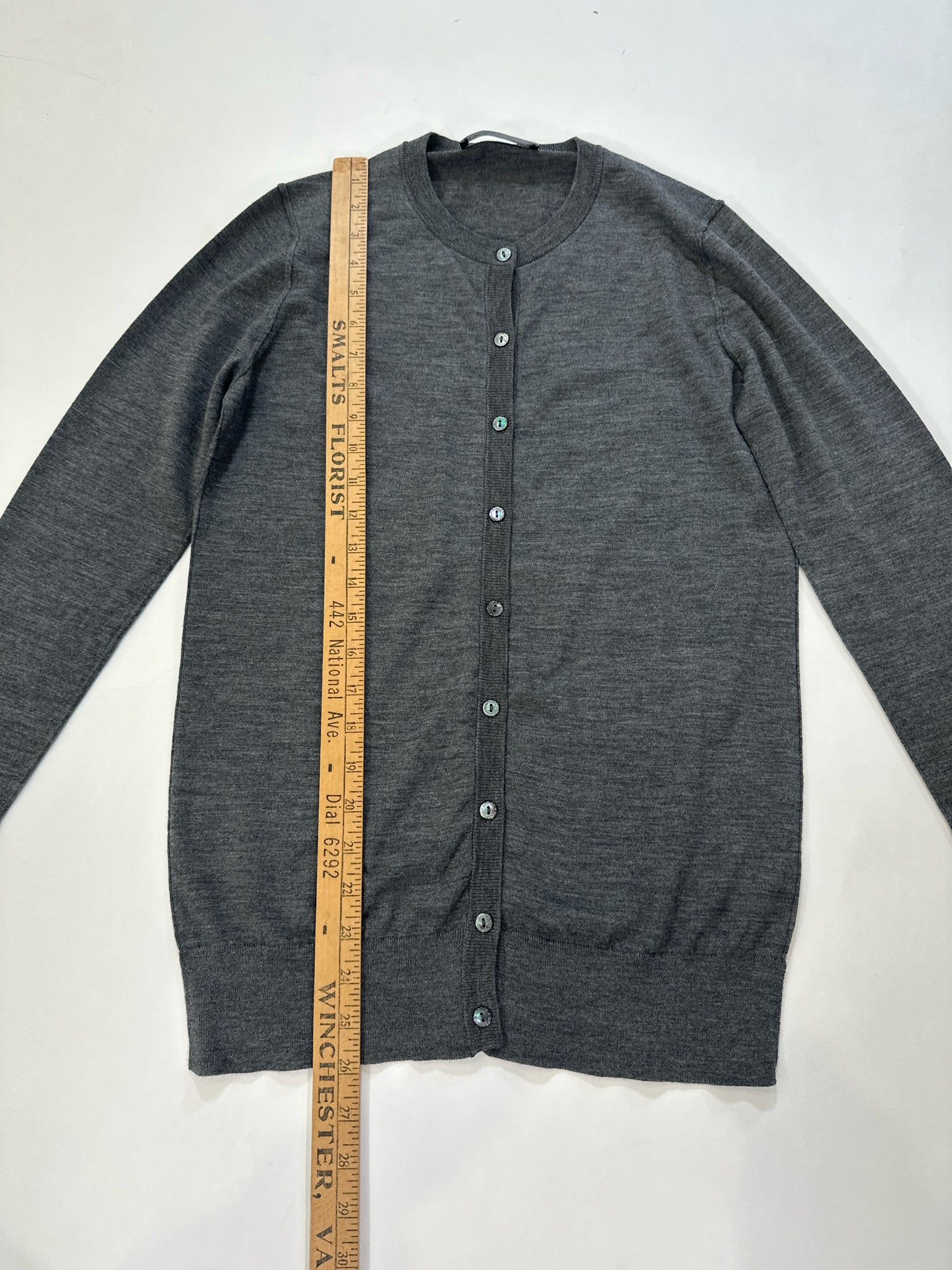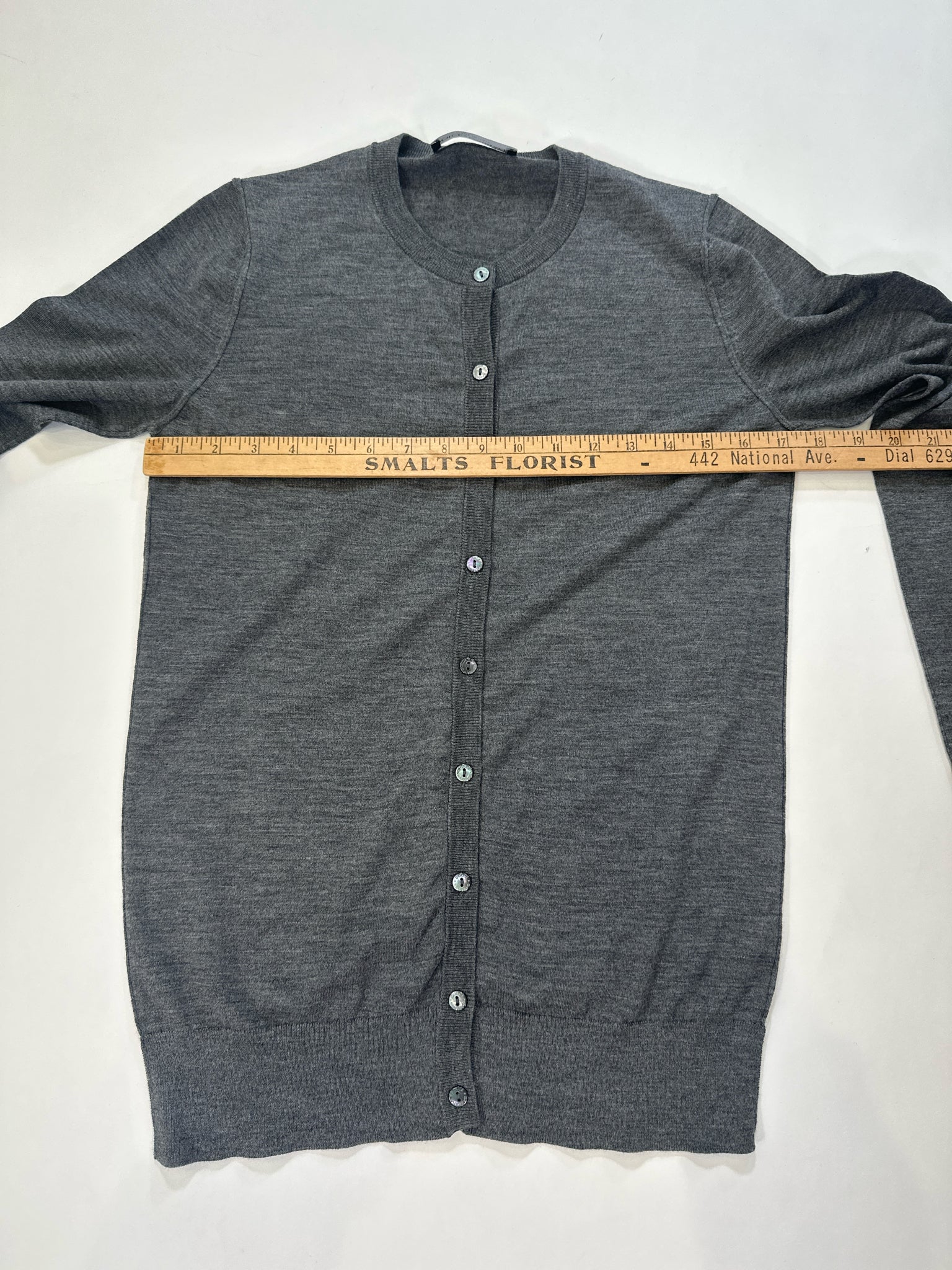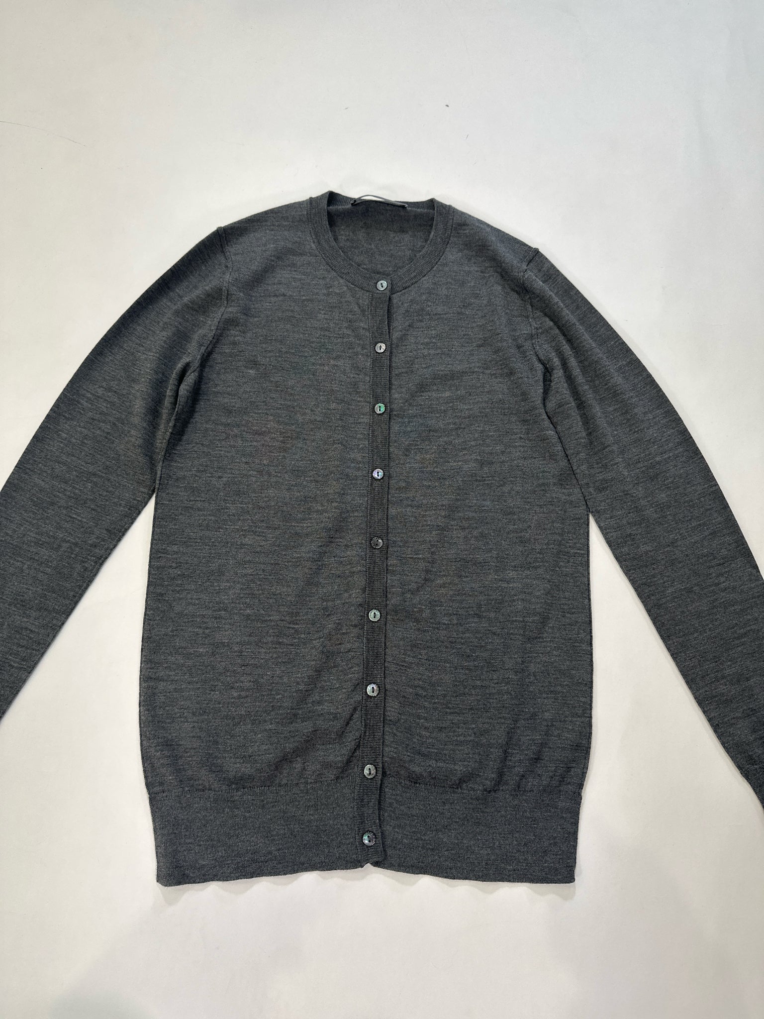 CHARCOAL CARDIGAN VIRGIN WOOL LS