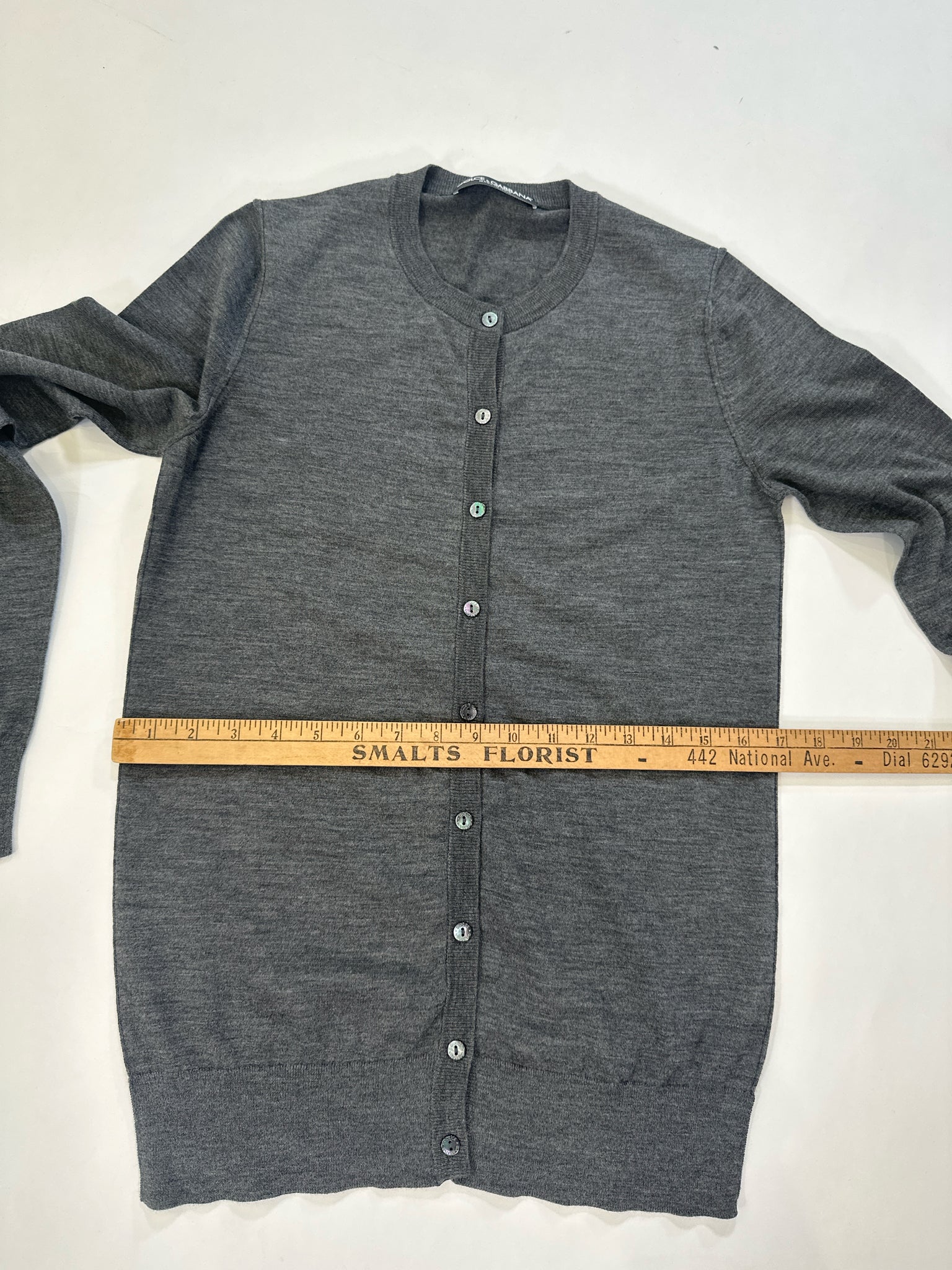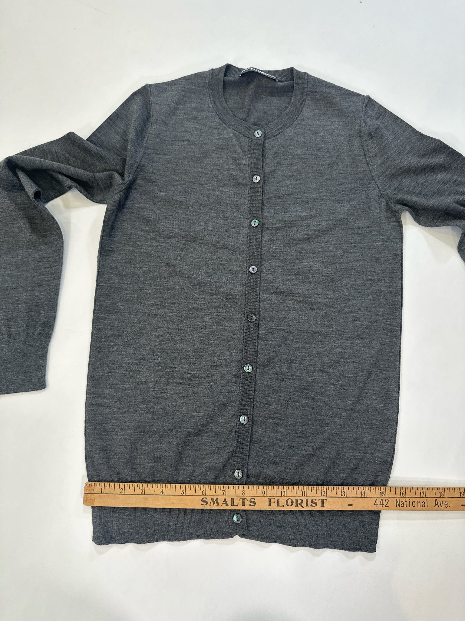 DOLCE & GABBANA Size 40 CHARCOAL SWEATER VIRGIN WOOL CARDIGAN