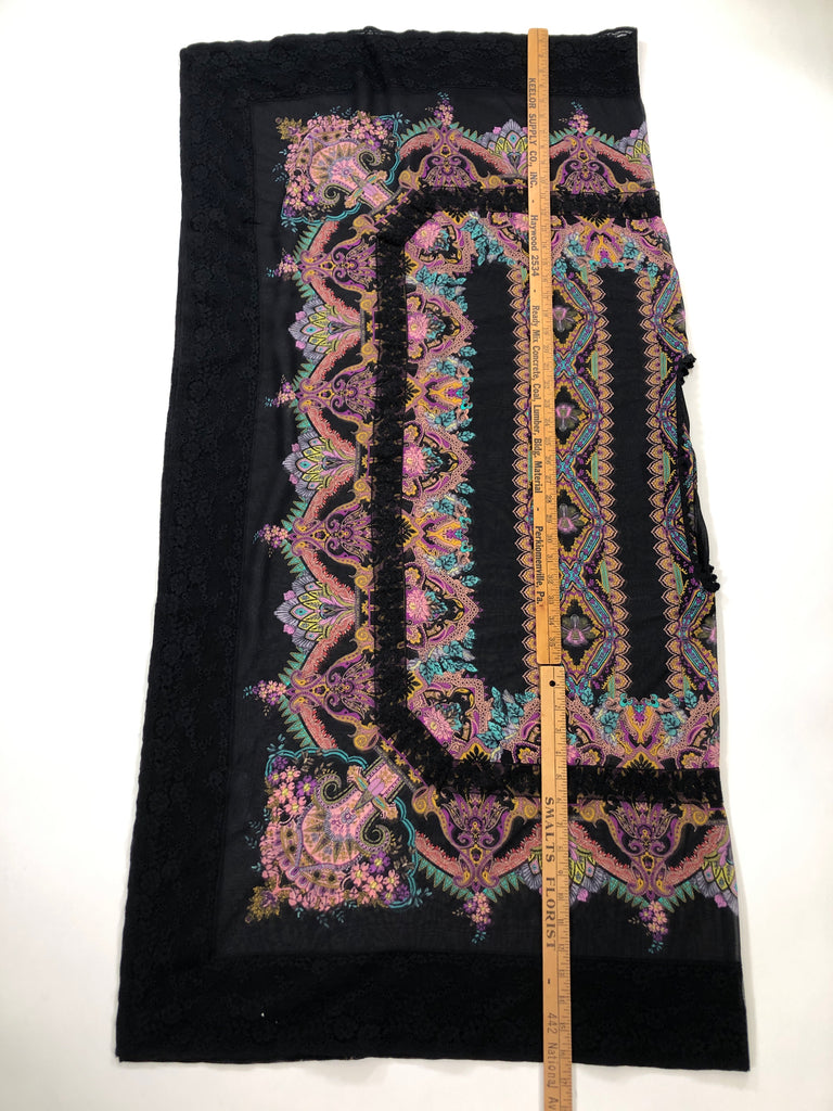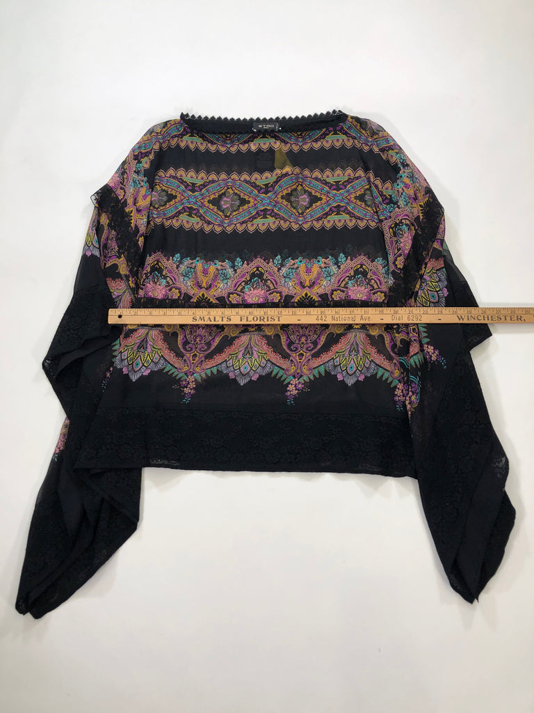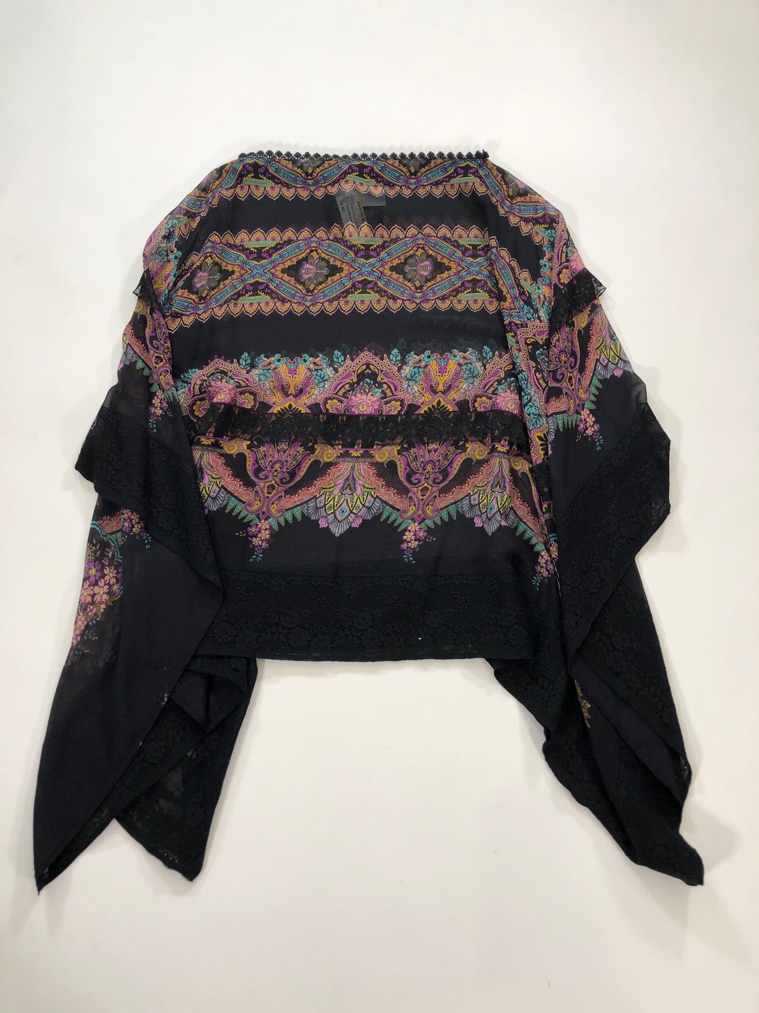 ETRO Size ONE SIZ MULTI COLORS PONCHO BLACK TURQUOISE LAVENDER LACE COTTON TRIM