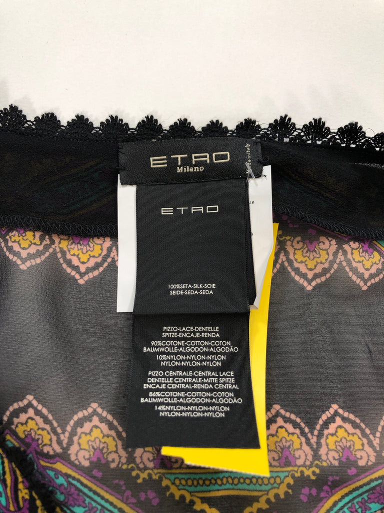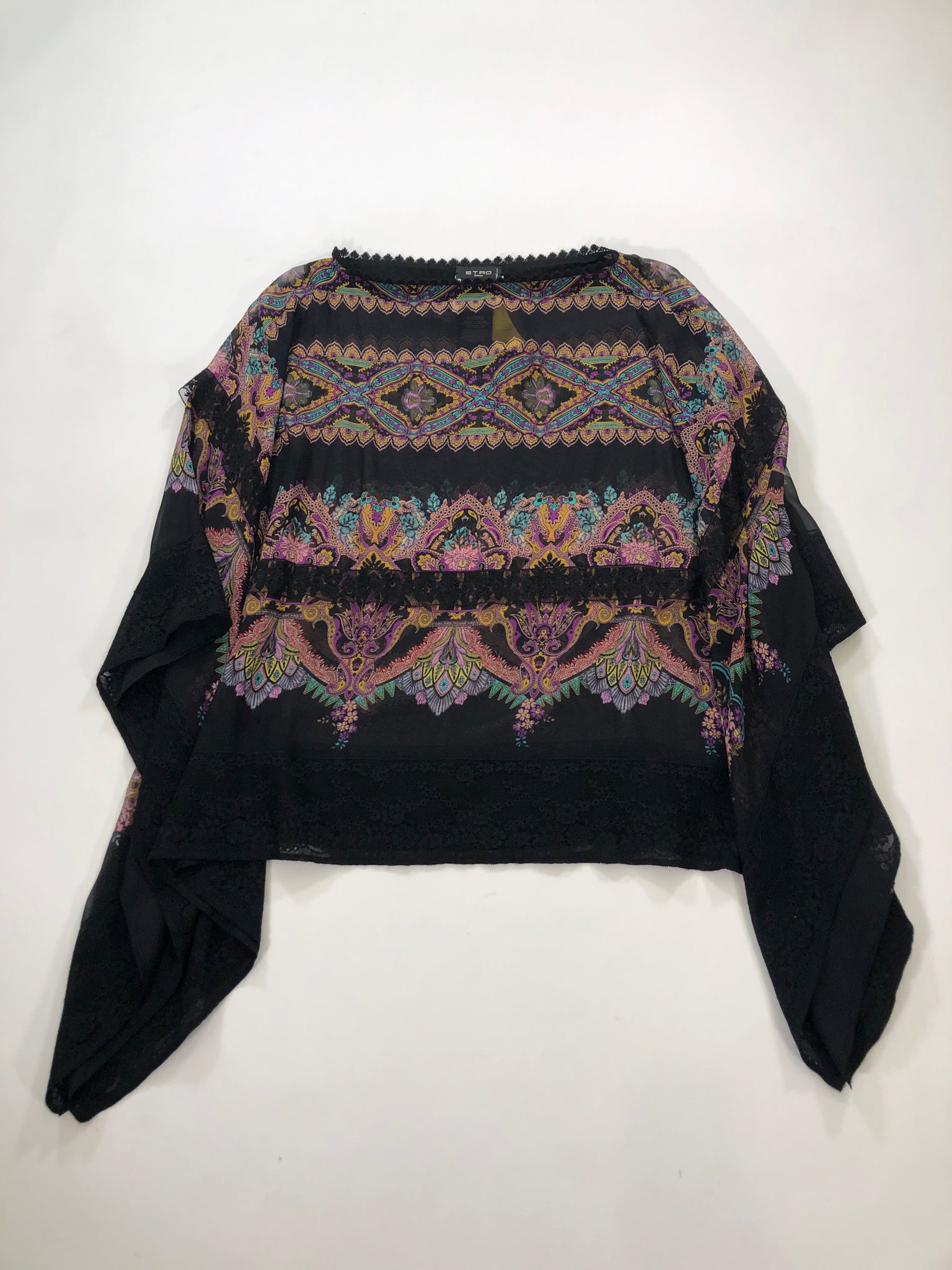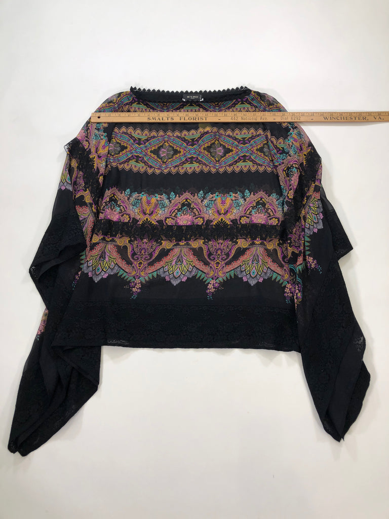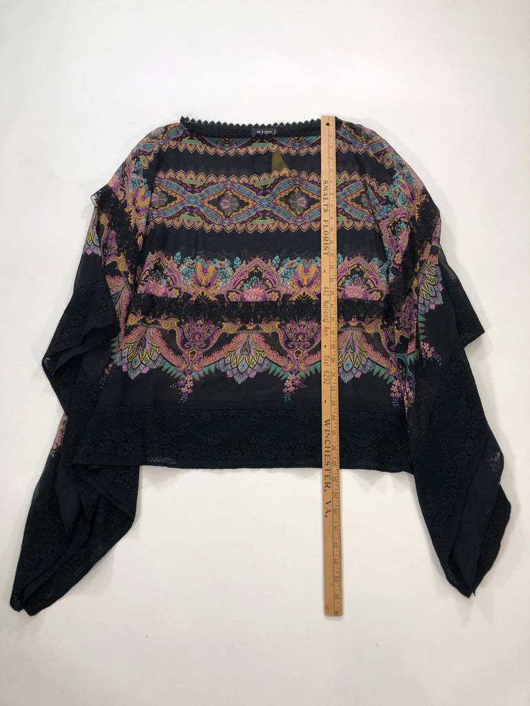 ETRO Size ONE SIZ MULTI COLORS PONCHO BLACK TURQUOISE LAVENDER LACE COTTON TRIM