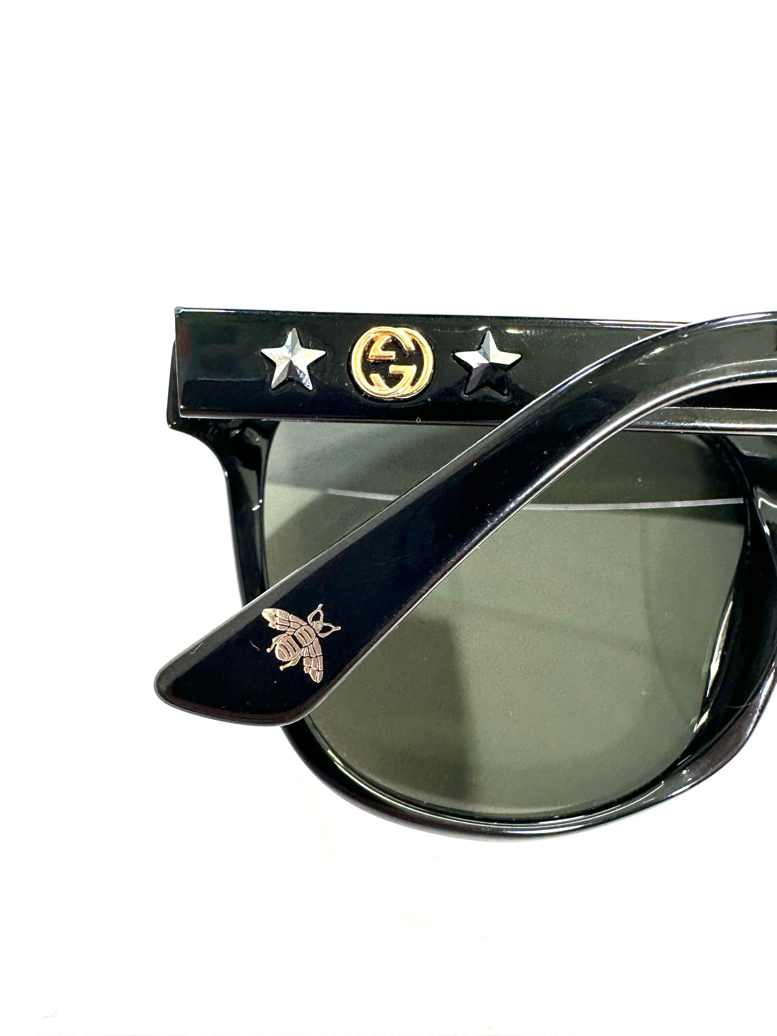 GUCCI BLACK SUNGLASSES STARS ON THE SIDE WITH BLUE CASE