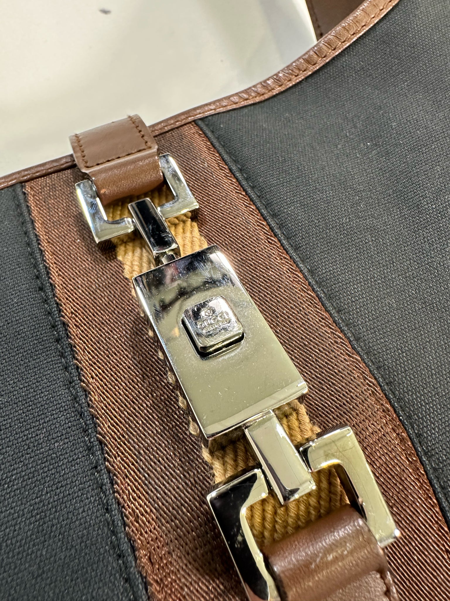 GUCCI Size S MULTI BAG NAVY FABRIC BROWN TRIM JACKIE - MULTI / S is backordered and will ship as soon as it is back in stock.