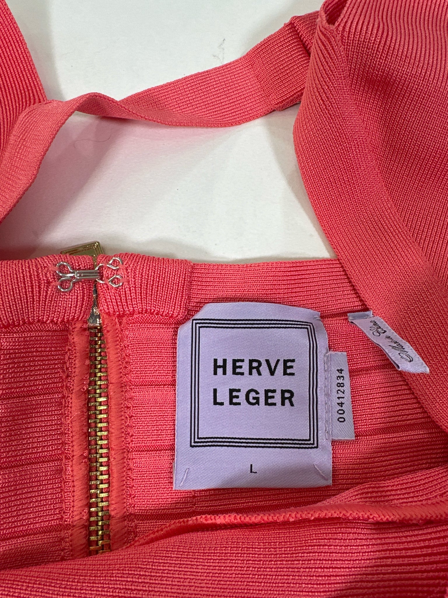 HERVE LEGER Size L CORAL DRESS SLEEVELESS BANDAGE