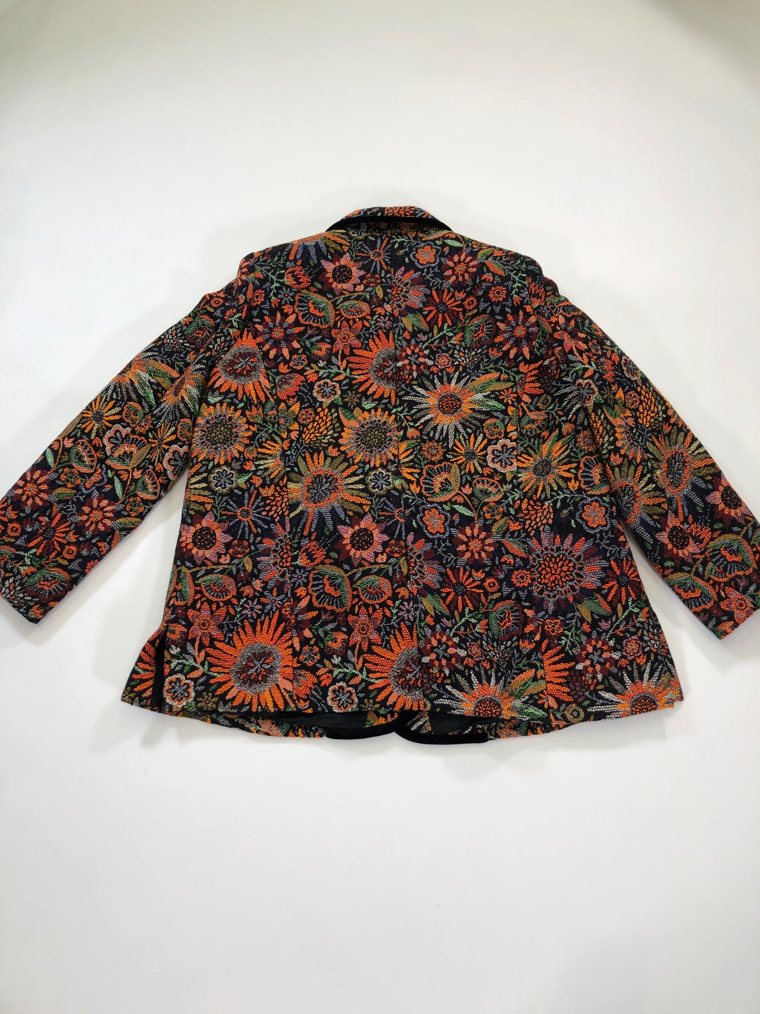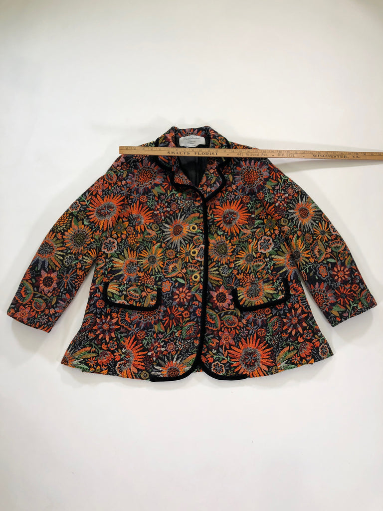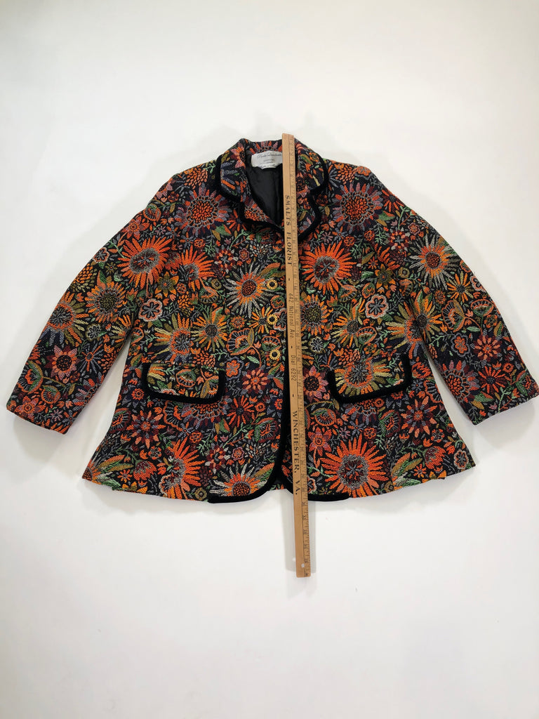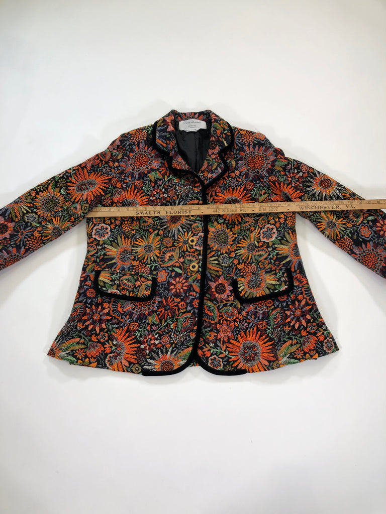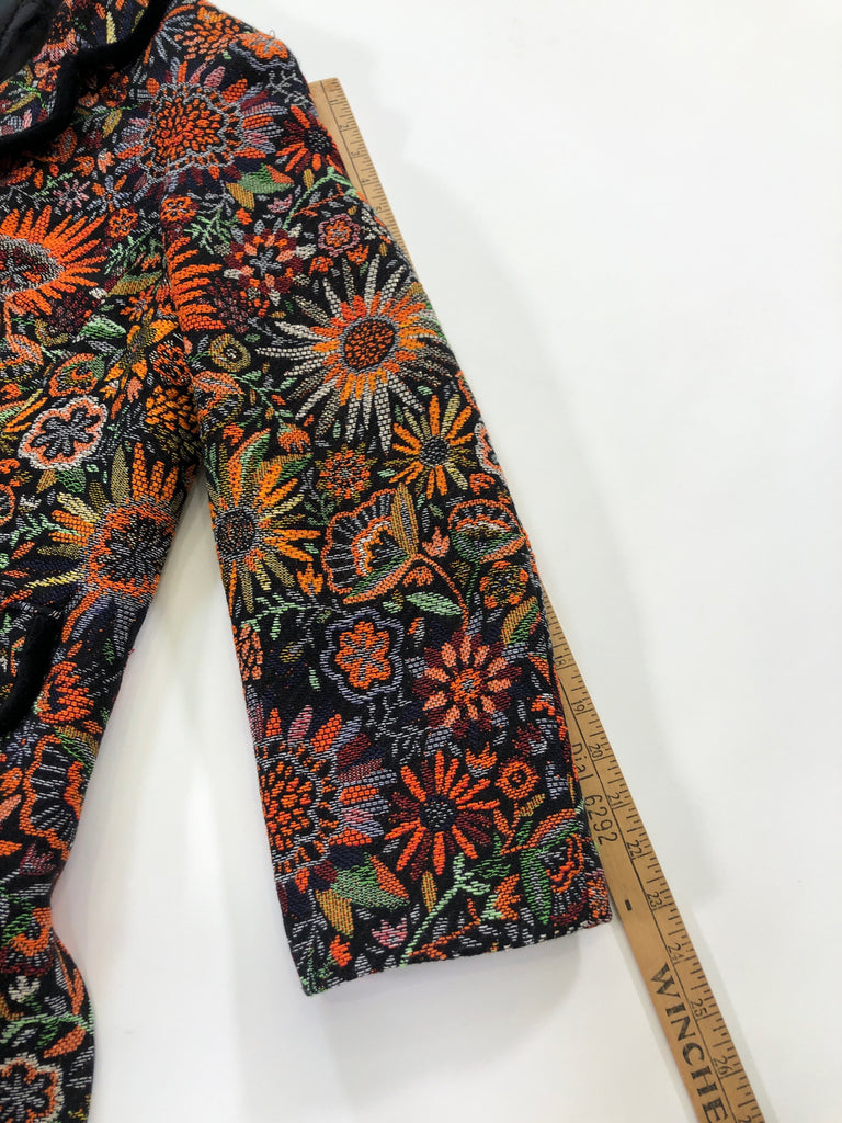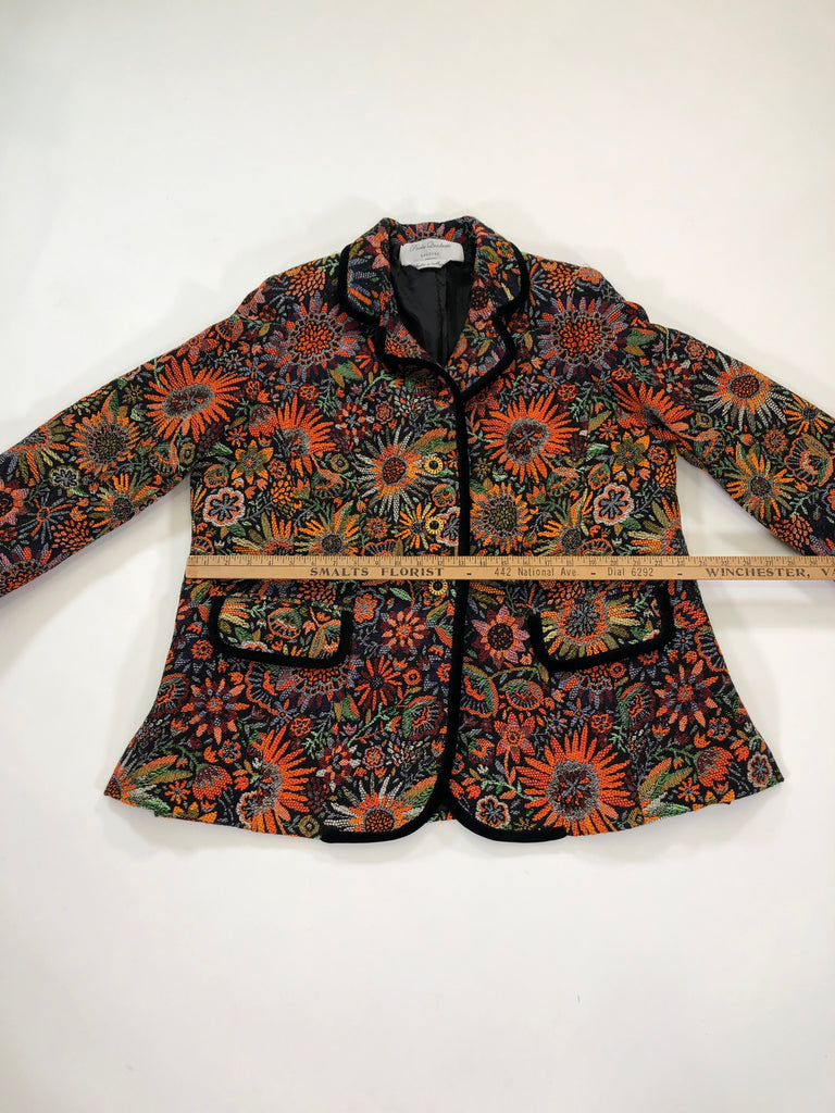 ITALY Size L/XL JACKET ORANGE GREEN BLACK FLORAL TAPESTRY PAOLA QUADRETTI
