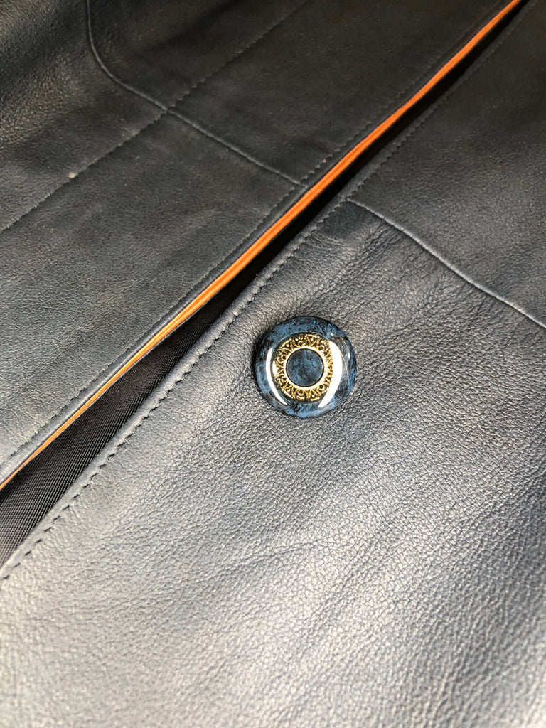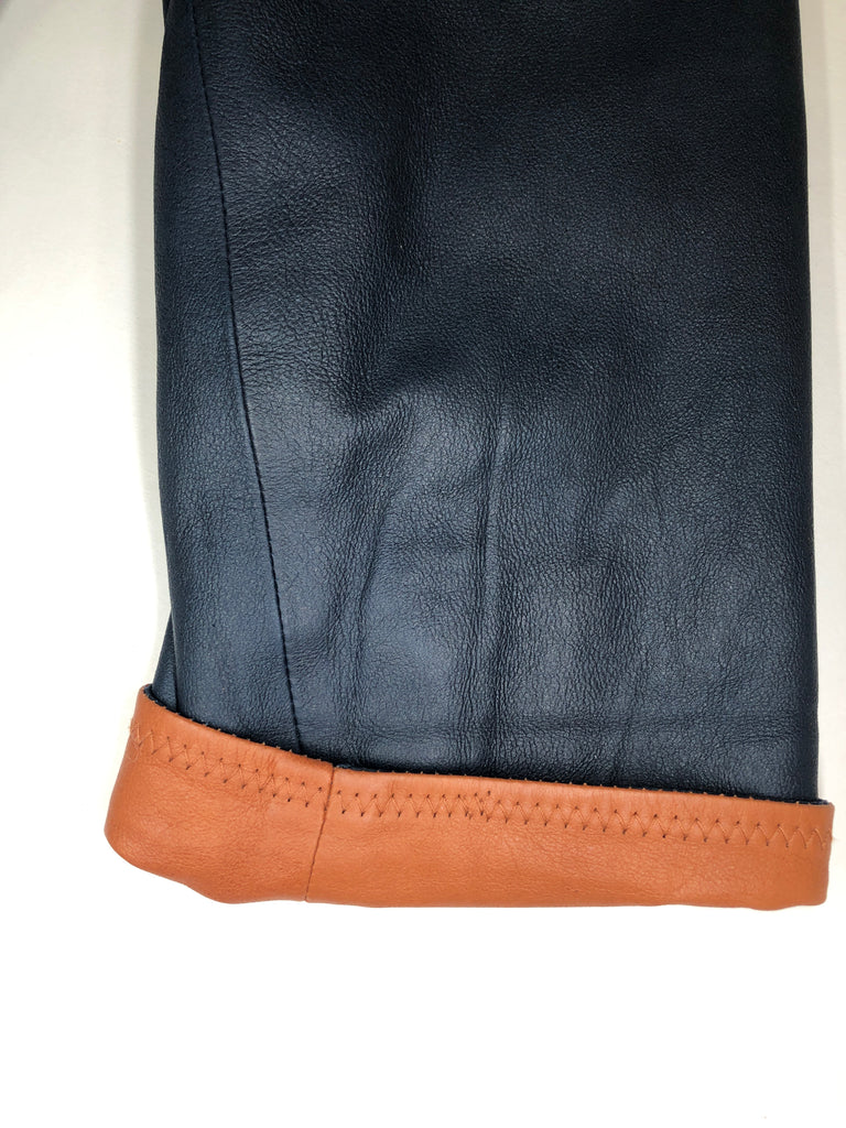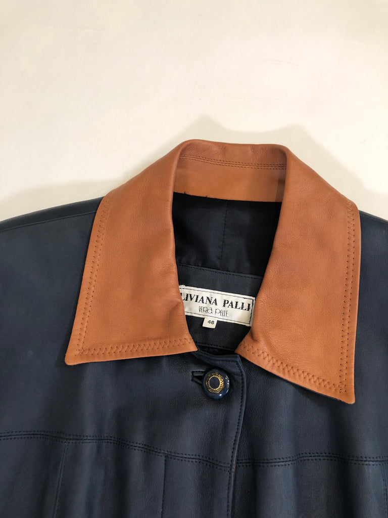 NAVY LEATHER W/ COGNAC COLLAR CUFFS LIVIANA PALLI