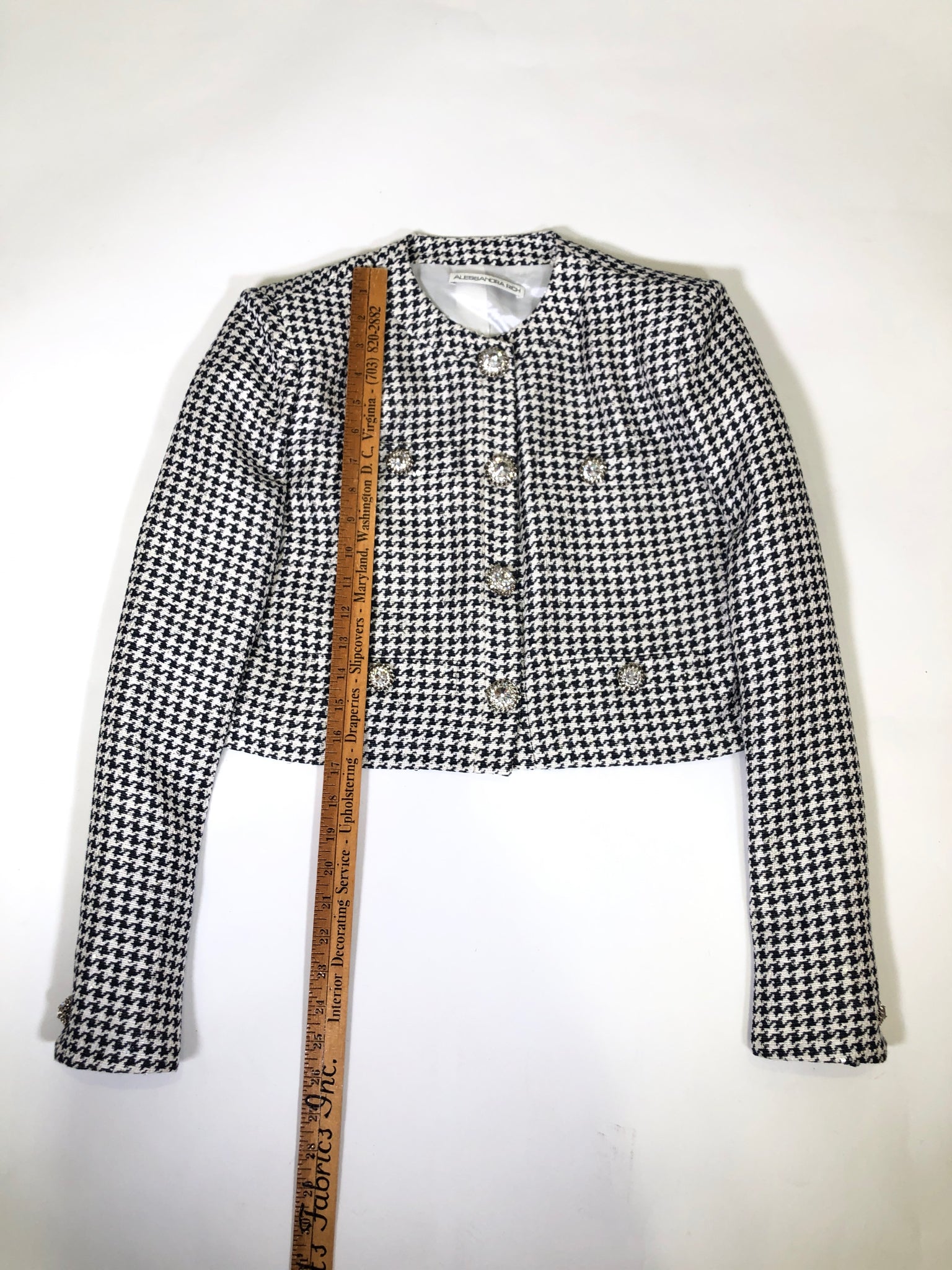ITALY Size S BLACK AND WHITE BLAZER HOUNDSTOOTH RHINESTONE BUTTONS