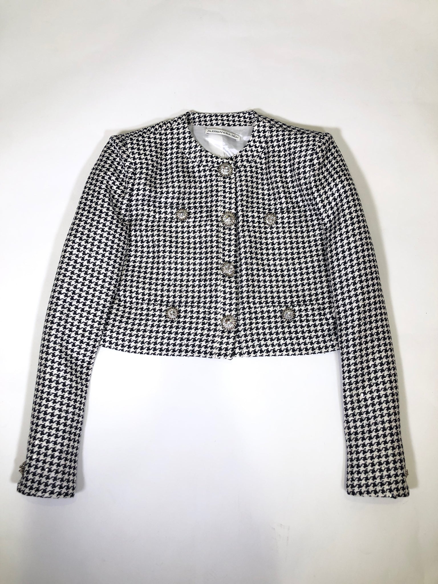 BLACK WHITE HOUNDSTOOTH SPARKLE ALESSANDRA RICH R/S BUTTONS