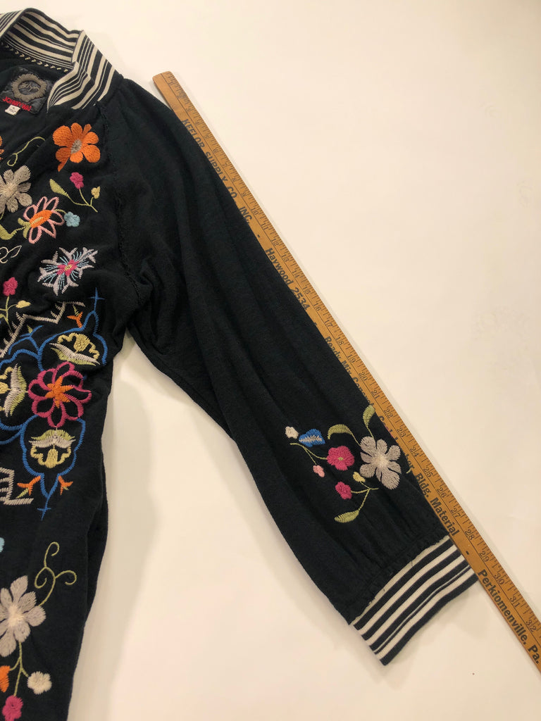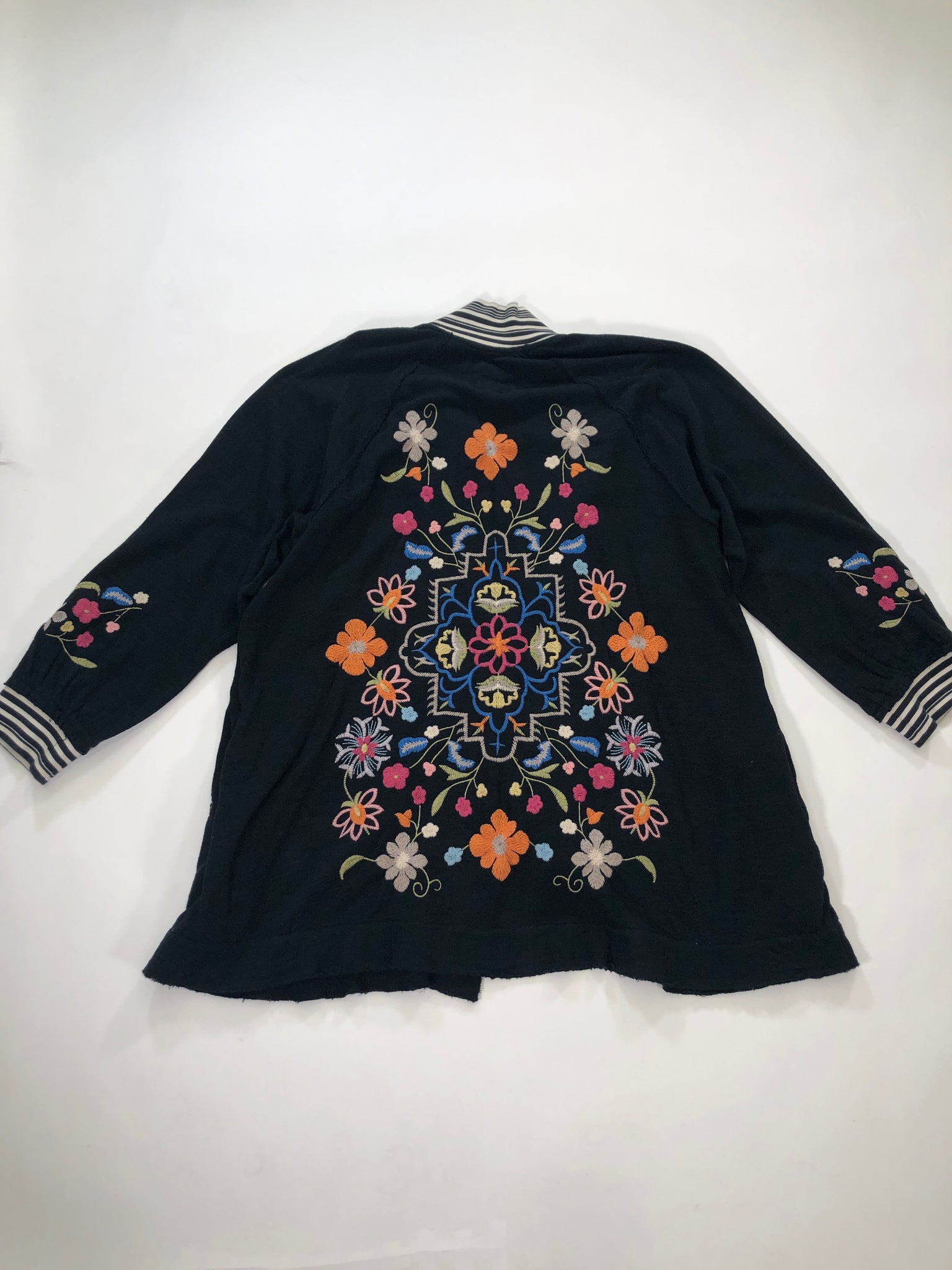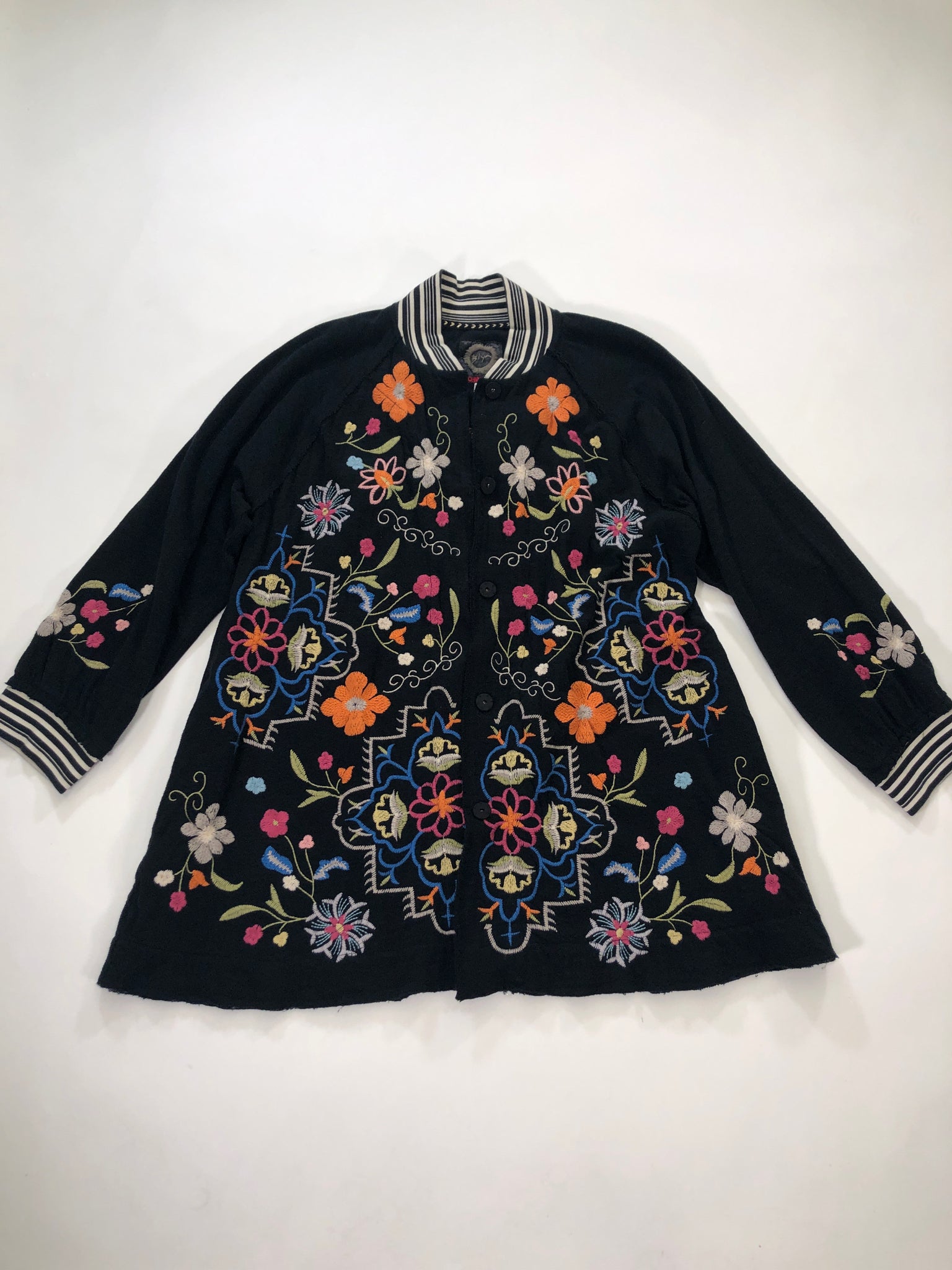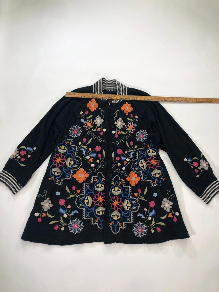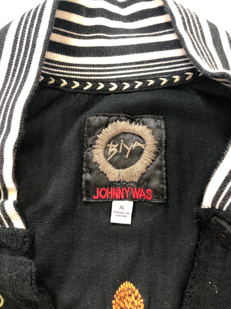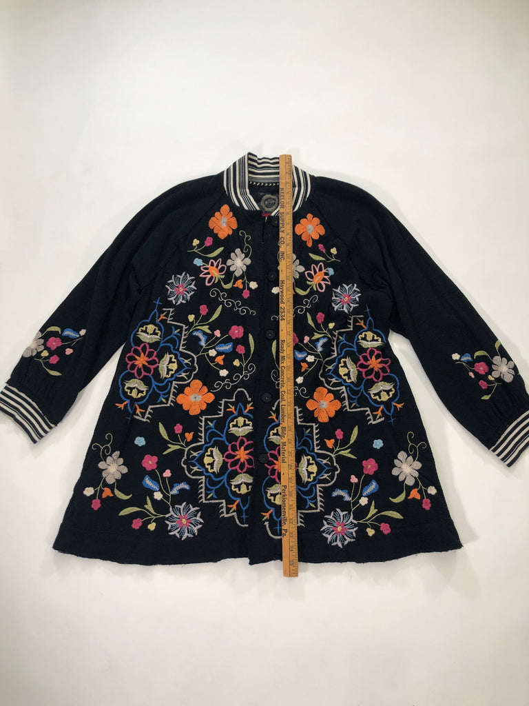 JOHNNY WAS Size XL JACKET BLACK GREY BLUE ORANGE EMBROIDERY SNAPS BIYA