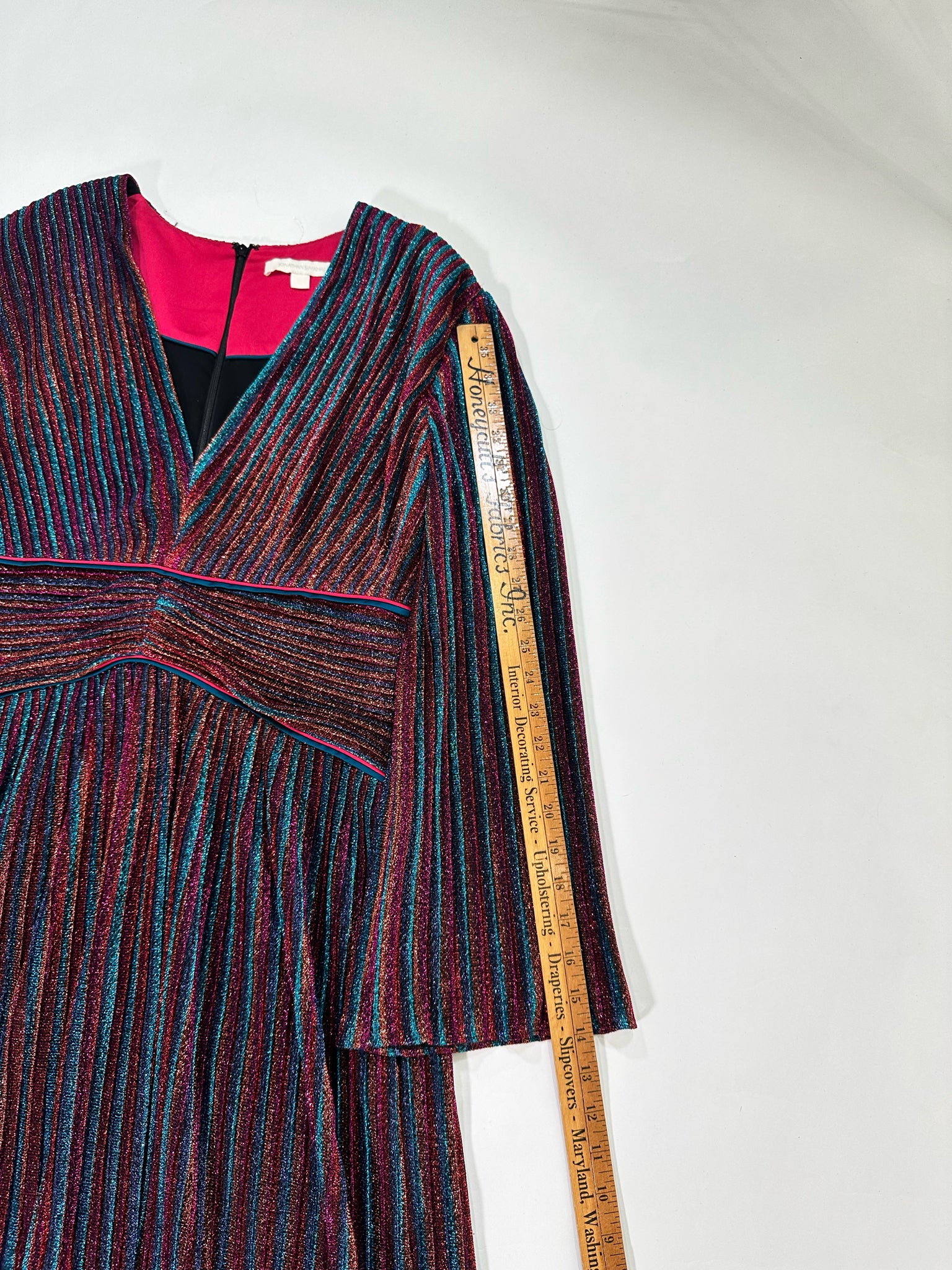 JONATHAN SIMKHAI Size 10 BLUE RED STRIPES METALLIC LONG SLEEVES