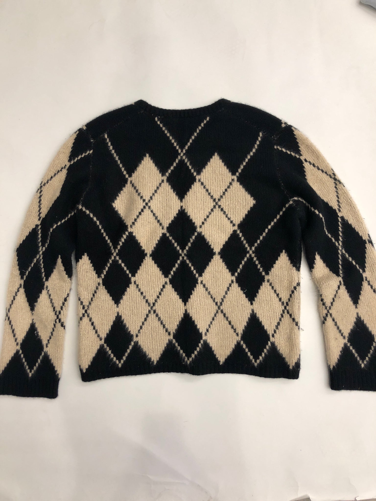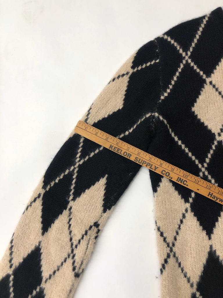 BLACK BEIGE ARGYLE LS CASHMERE SILK BLEND