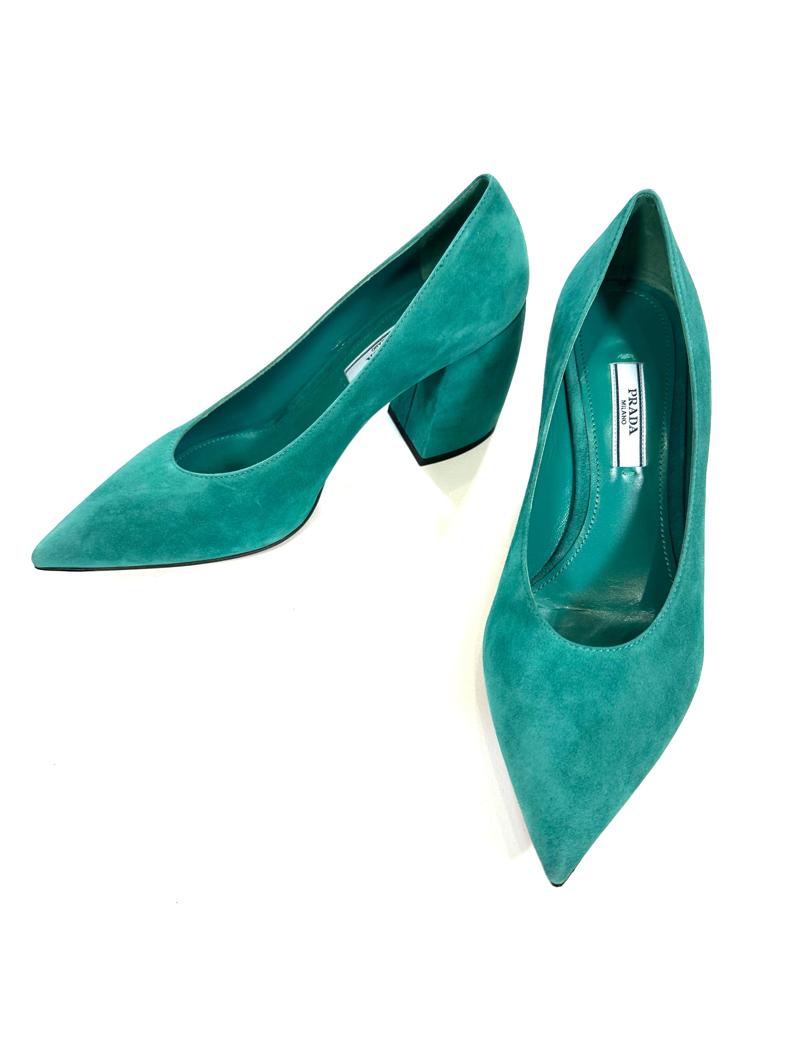 PRADA Size 36.5 GREEN SHOE SUEDE BLOCK HEEL - GREEN / 36.5 is backordered and will ship as soon as it is back in stock.