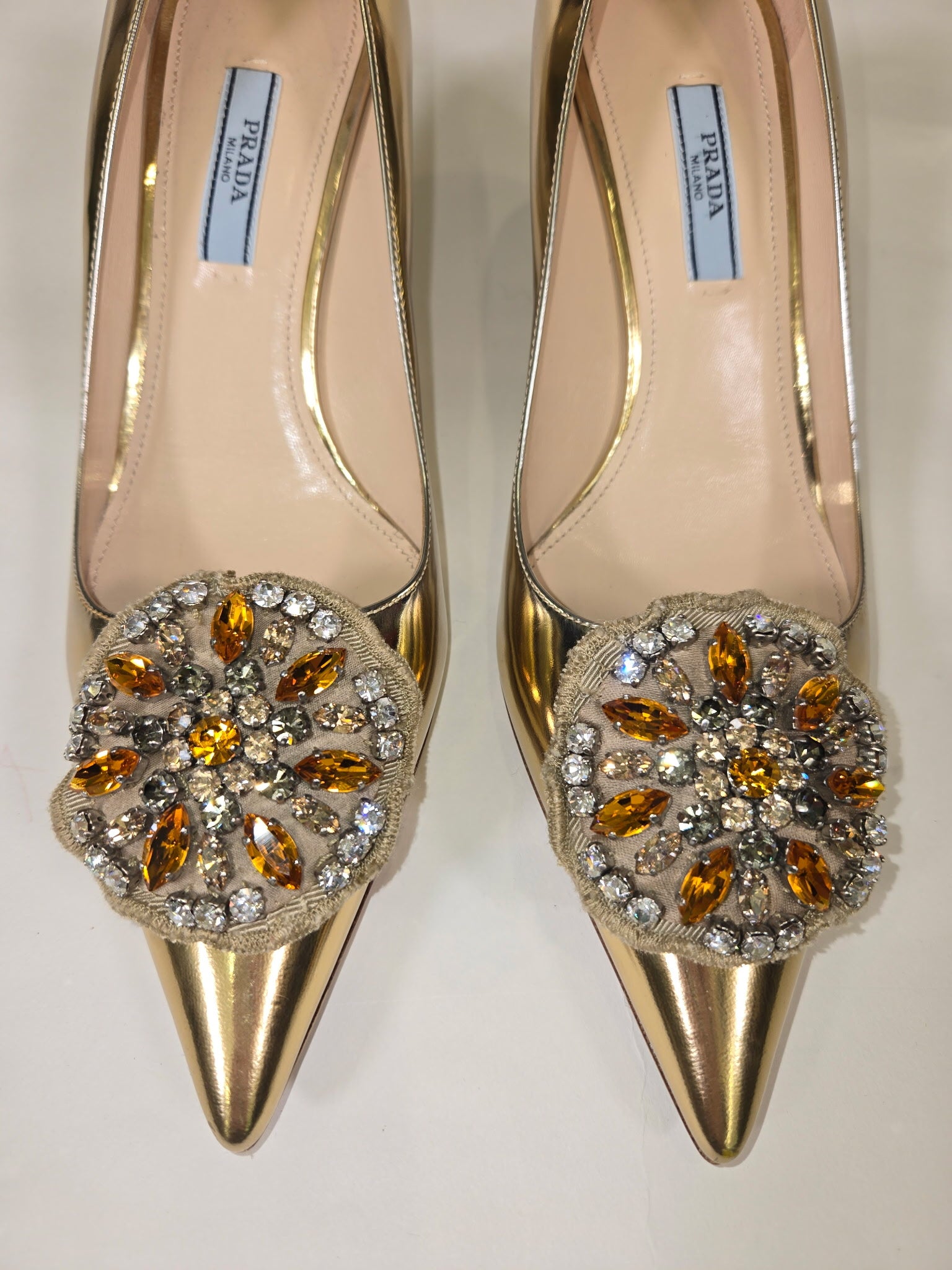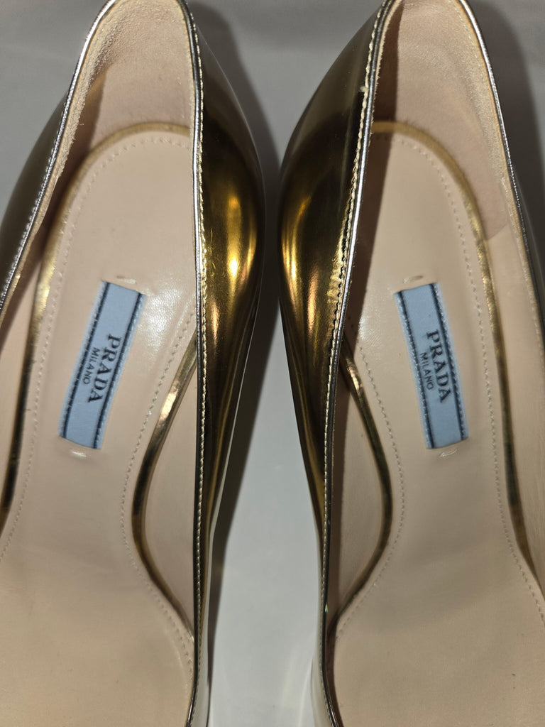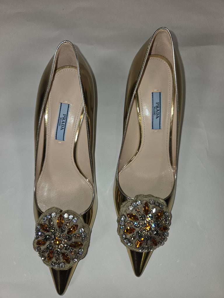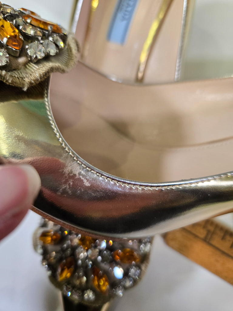 PRADA Size 38.5 GOLD SHOE CLEAR HONEY RHINESTONES HEELS - GOLD / 38.5 is backordered and will ship as soon as it is back in stock.