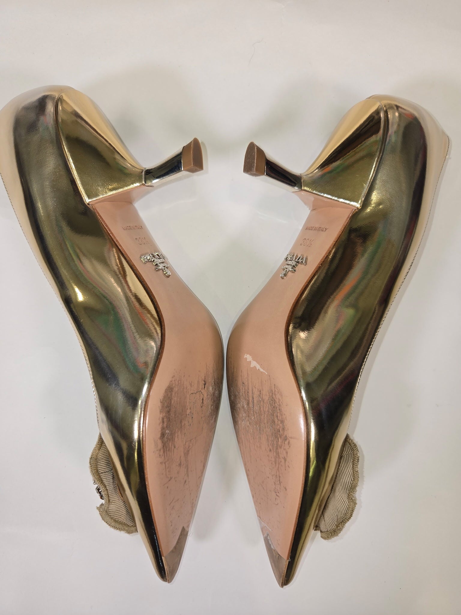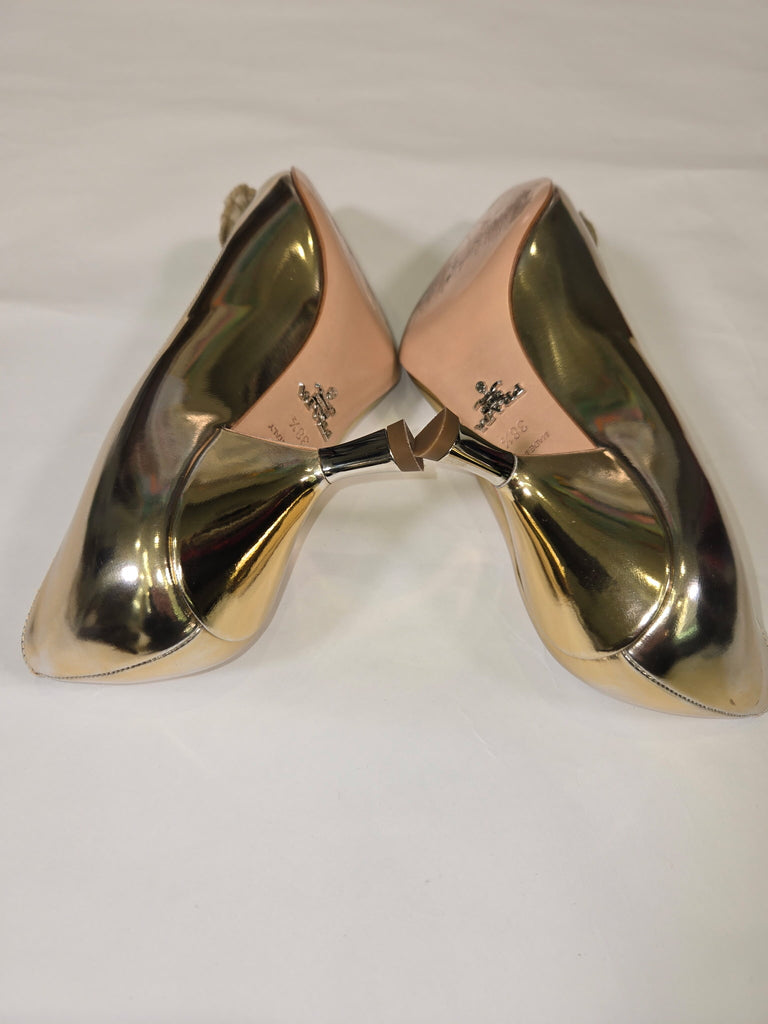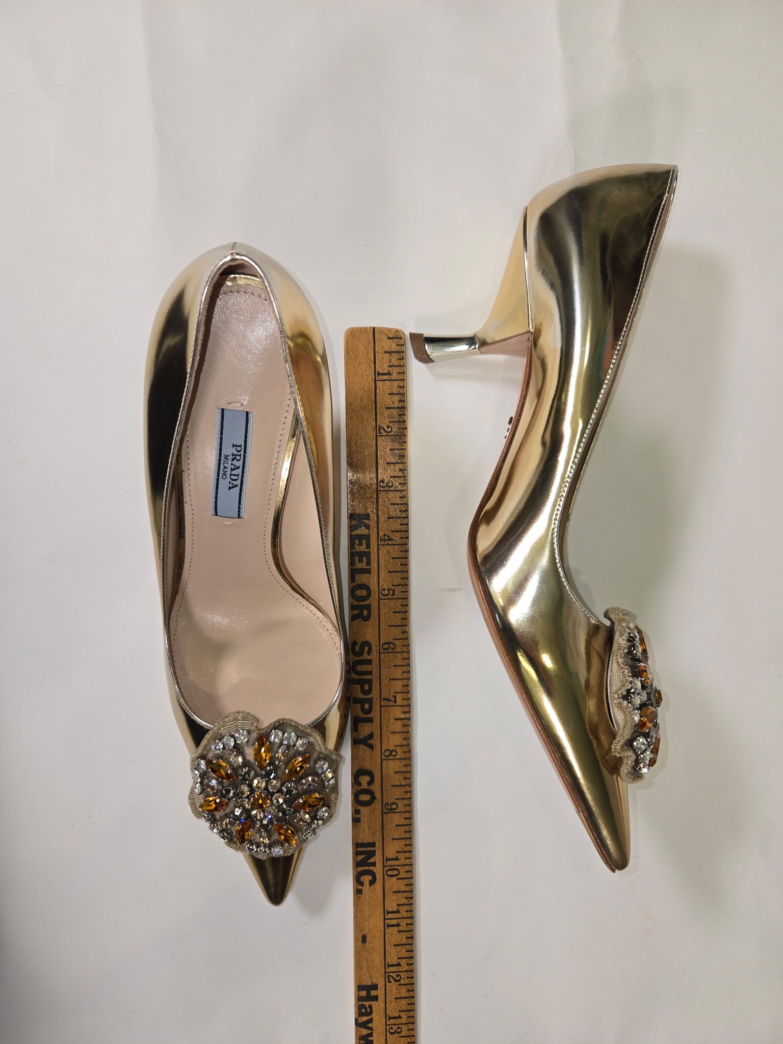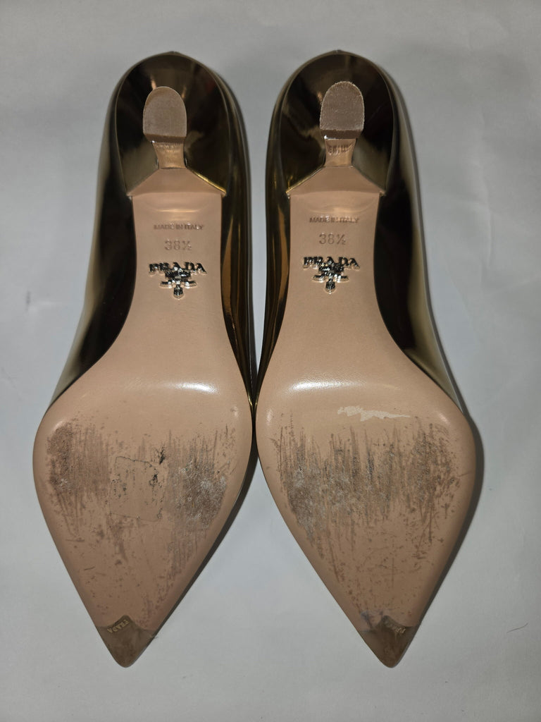 PRADA Size 38.5 GOLD SHOE CLEAR HONEY RHINESTONES HEELS - GOLD / 38.5 is backordered and will ship as soon as it is back in stock.