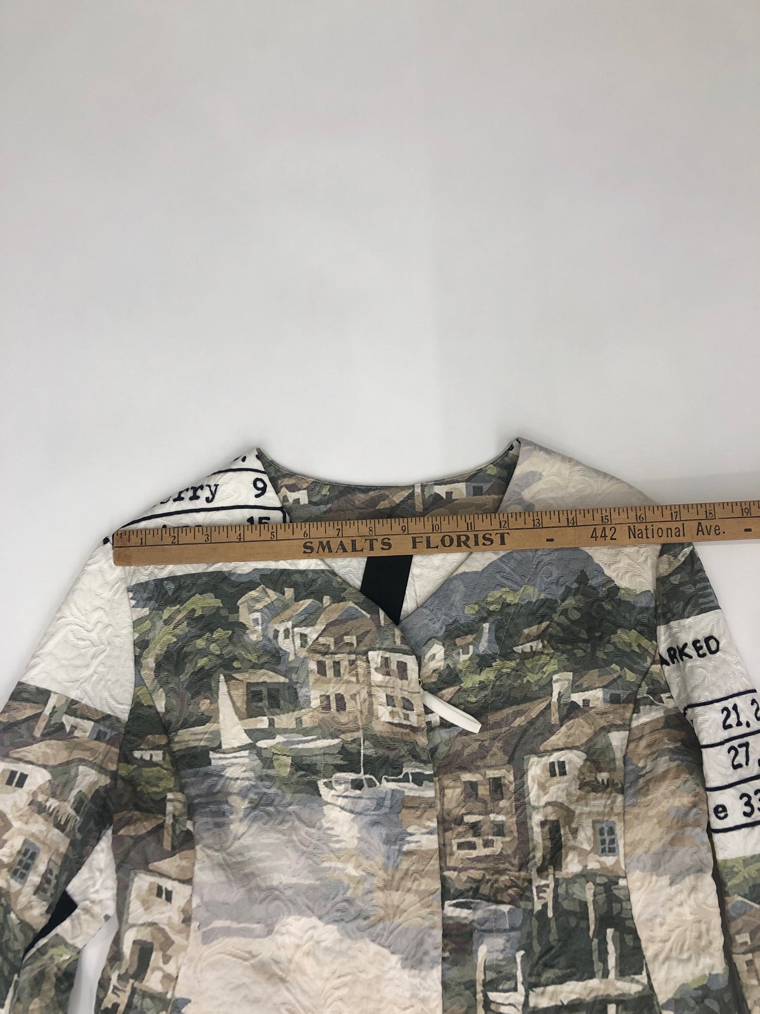 LANDSCAPE WHITE GREEN BEIGE BLACK LABEL VISCOSE BLEND REALLY LONG SLEEVES!