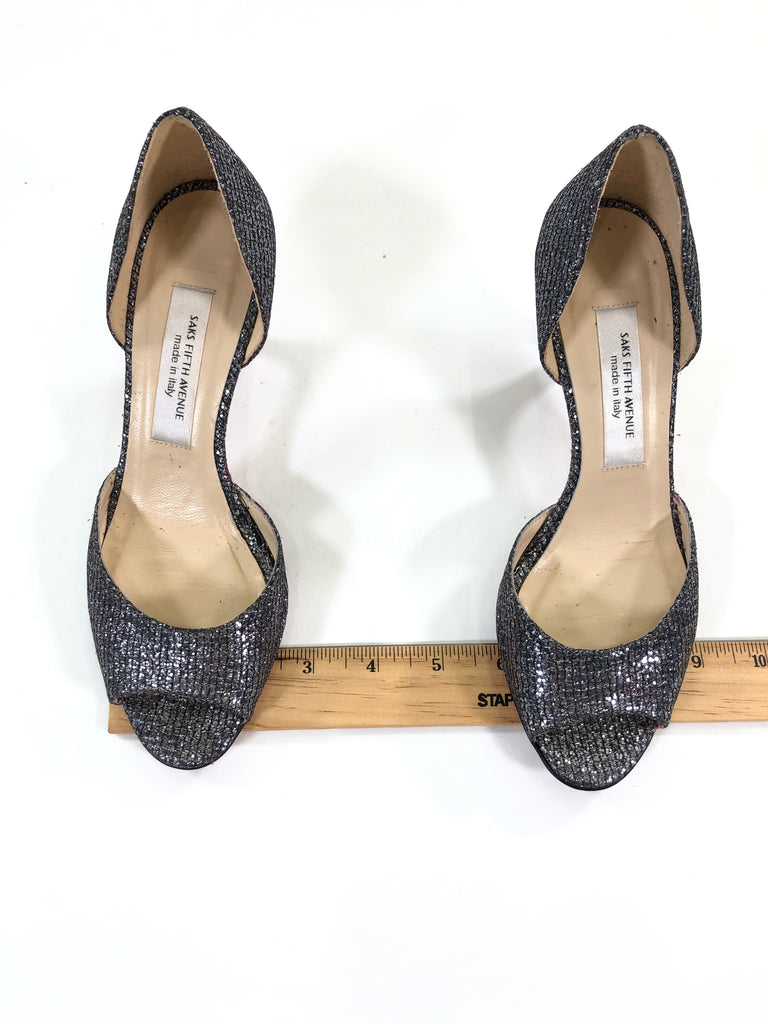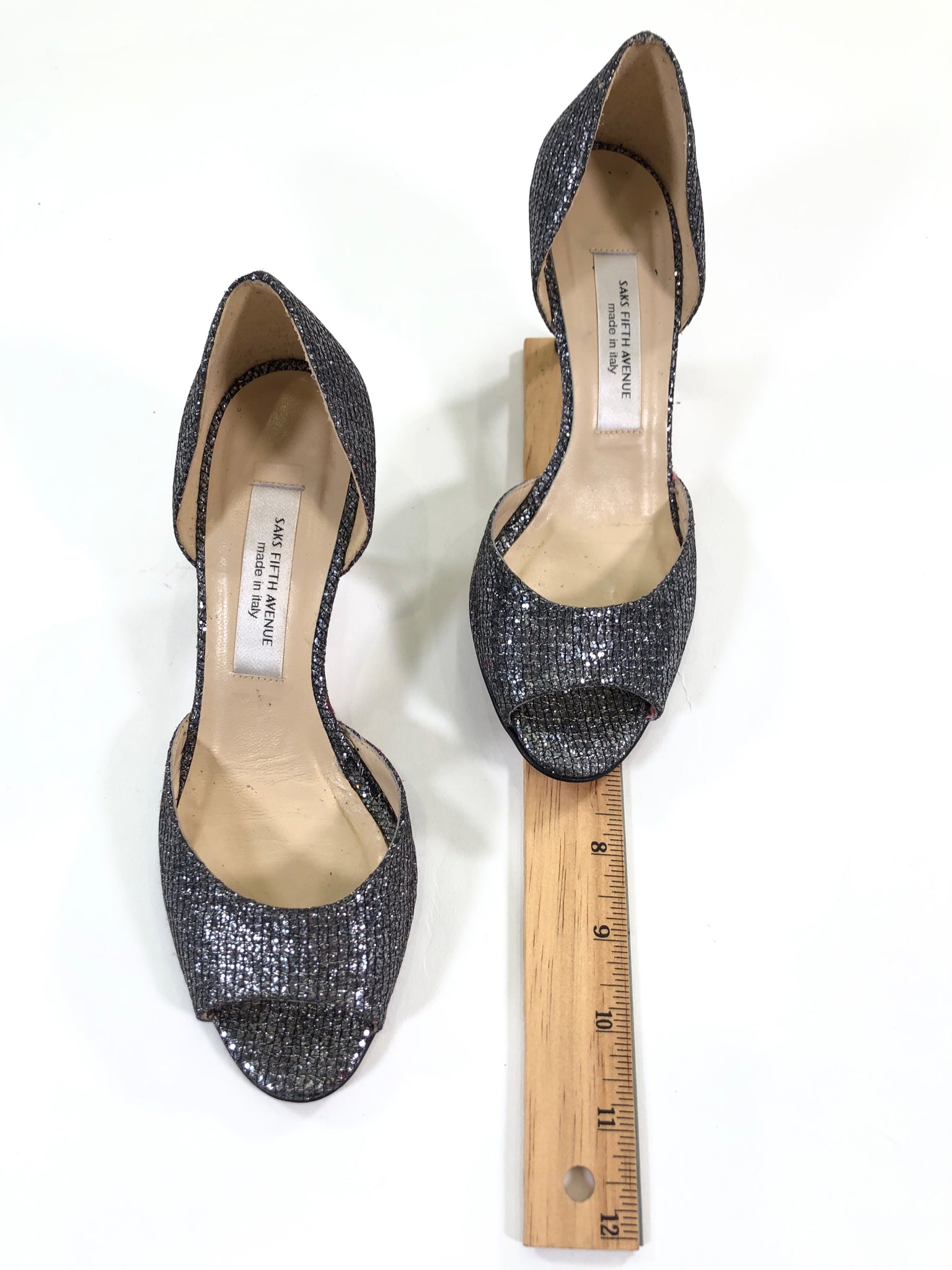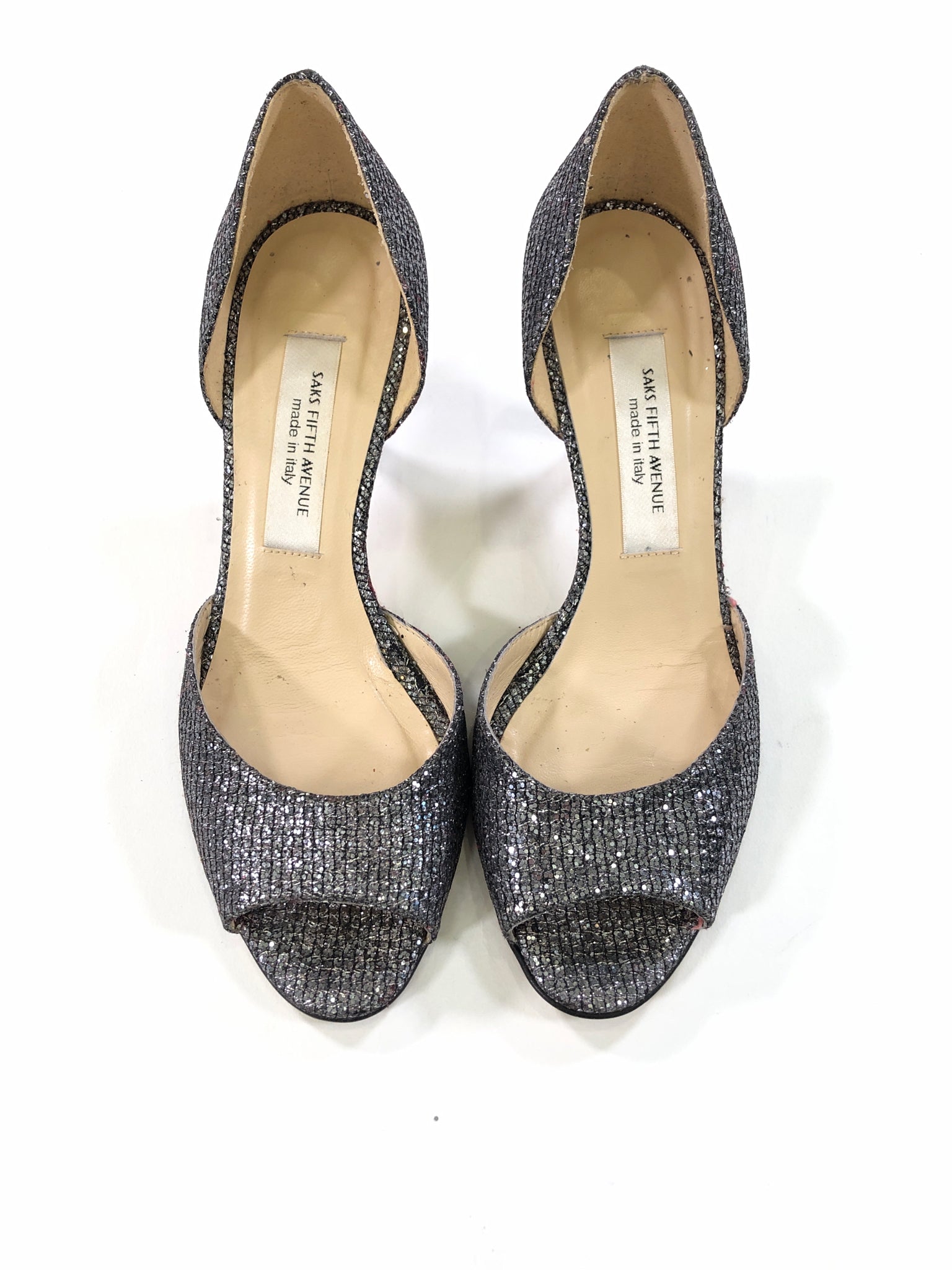 SAKS Size 5 SILVER SHOE HEEL PEEP TOE MADE IN ITALY - SILVER / 5 is backordered and will ship as soon as it is back in stock.