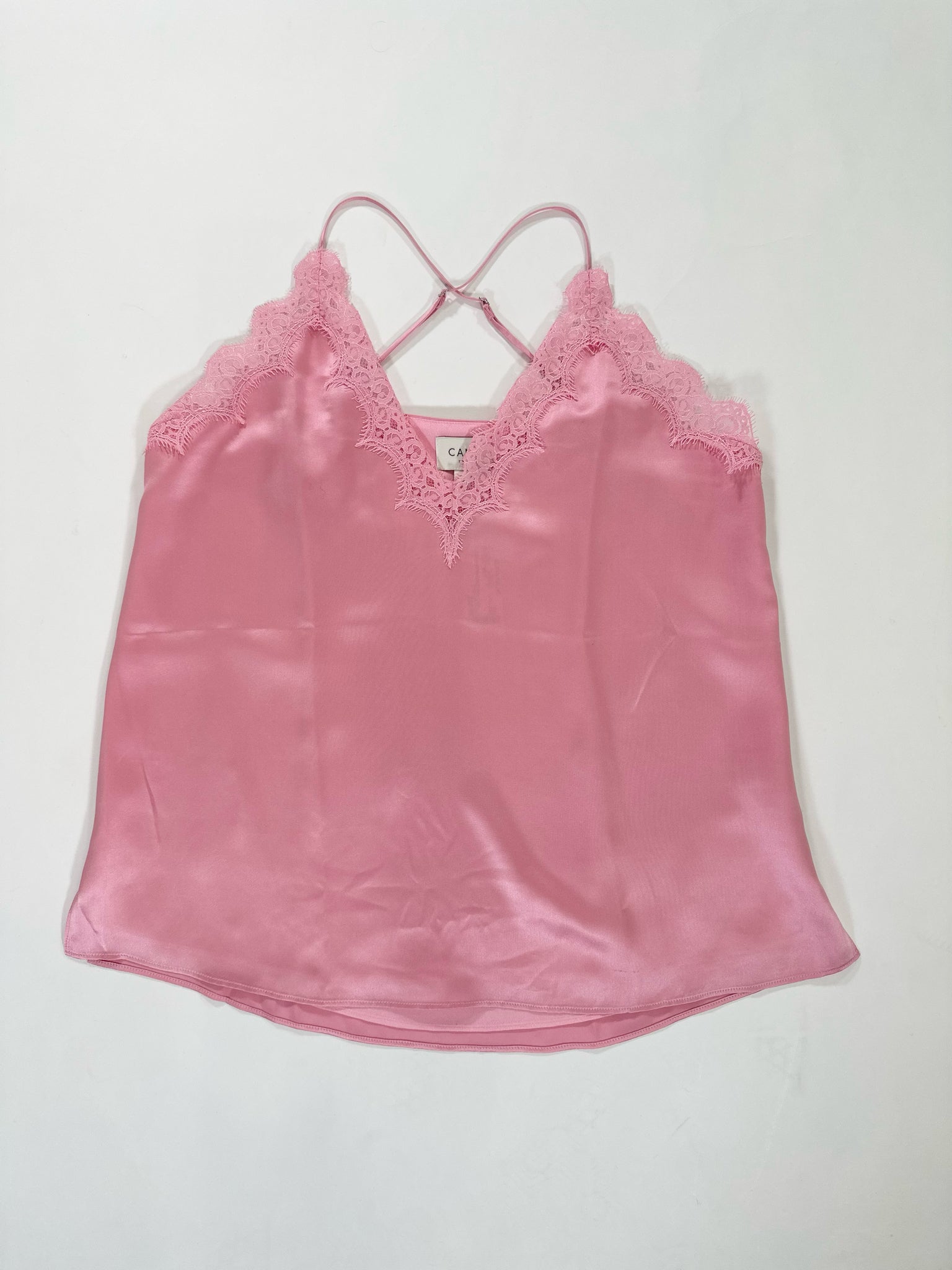 PINK SILK SATIN LACE TRIM CAMI NYC