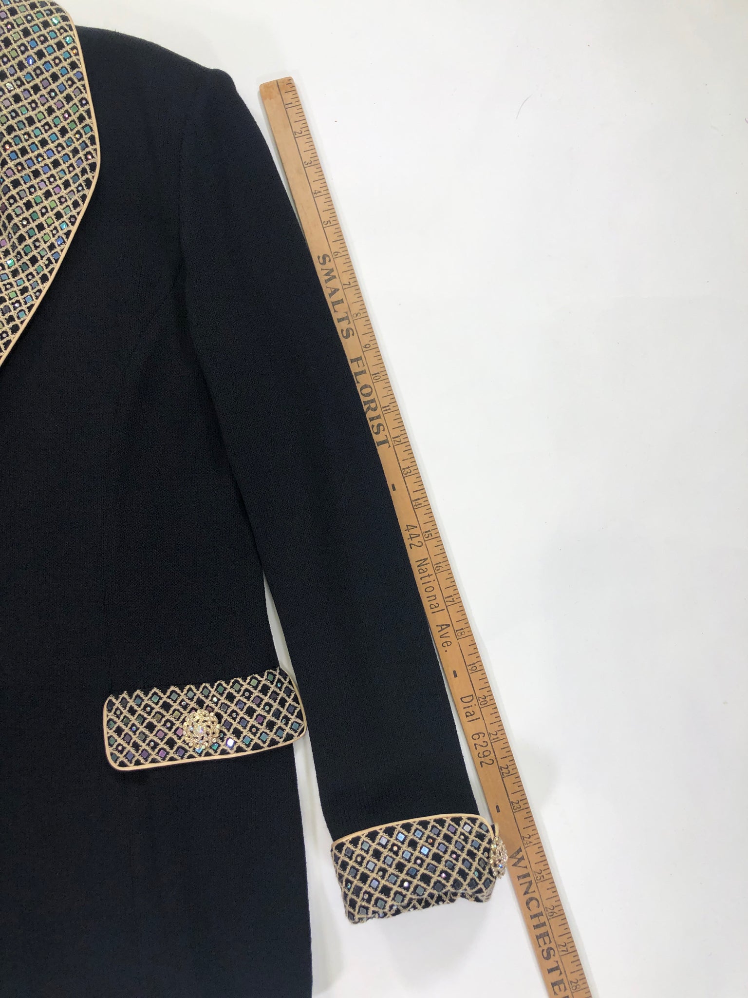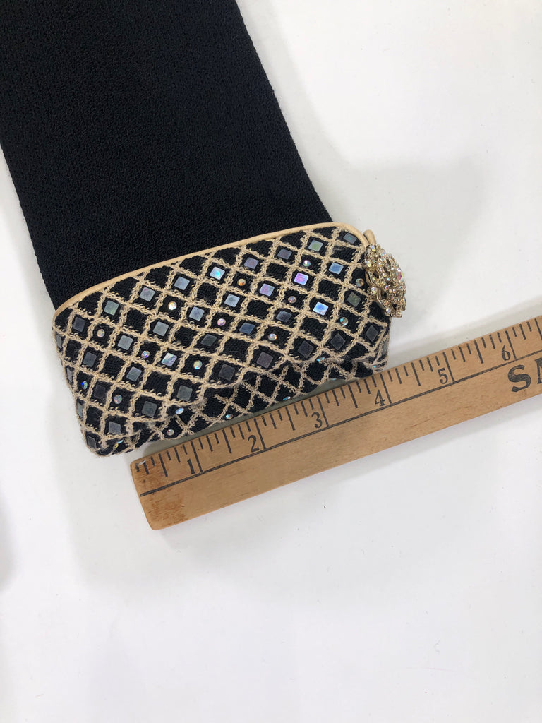 BLACK LS GOLD TRIM IRIDESCENT SEQUINS CRYSTALS VINTAGE