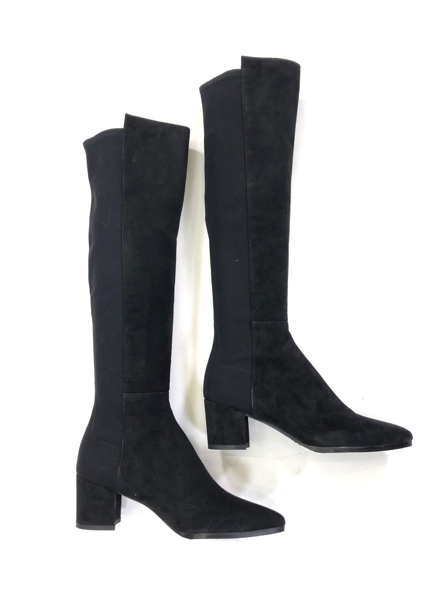 STUART WEITZMAN Size 6 1/2 BLACK BOOTS SUEDE + STRETCH FABRIC OVER KNEE