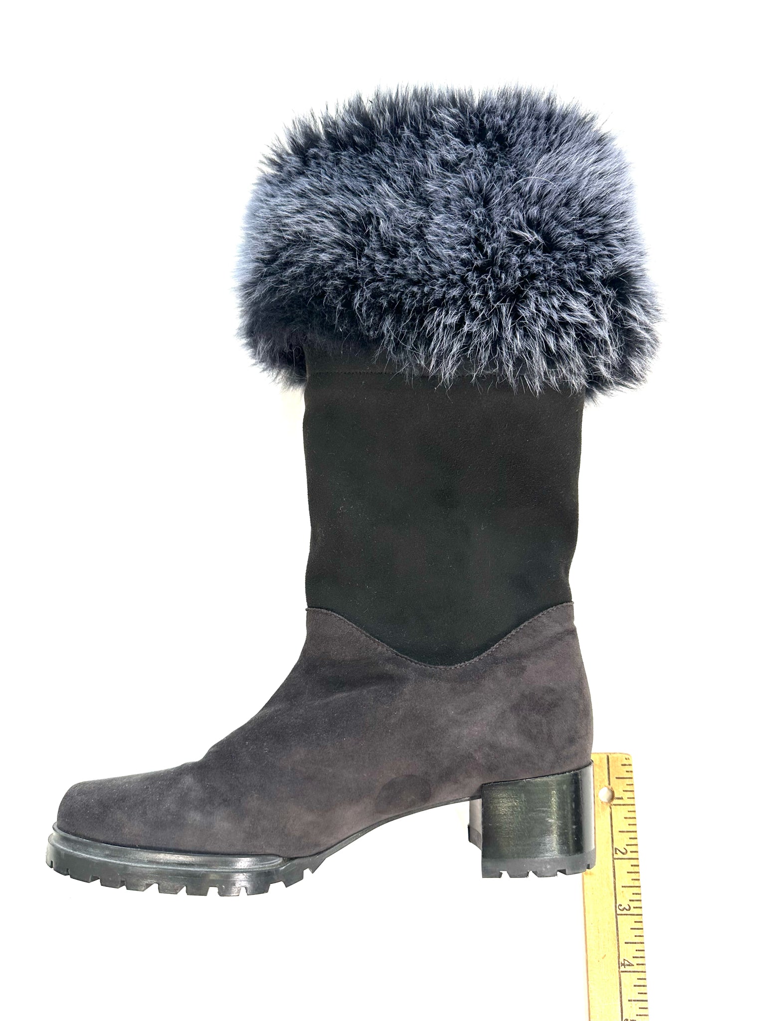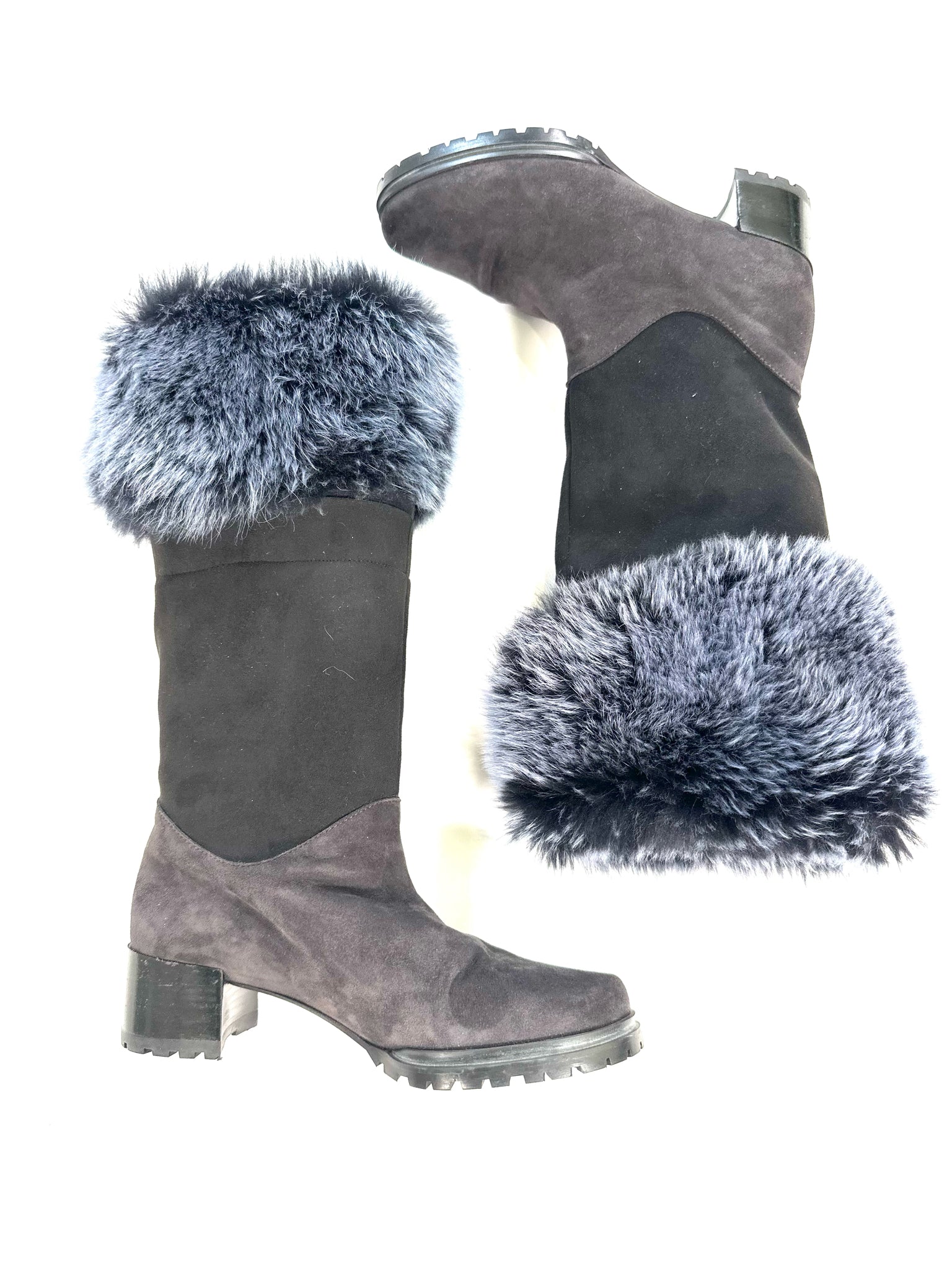 STUART WEITZMAN Size 6 MULTI COLORS BOOTS CHARCOAL BLACK SUEDE SHEARLING HEEL