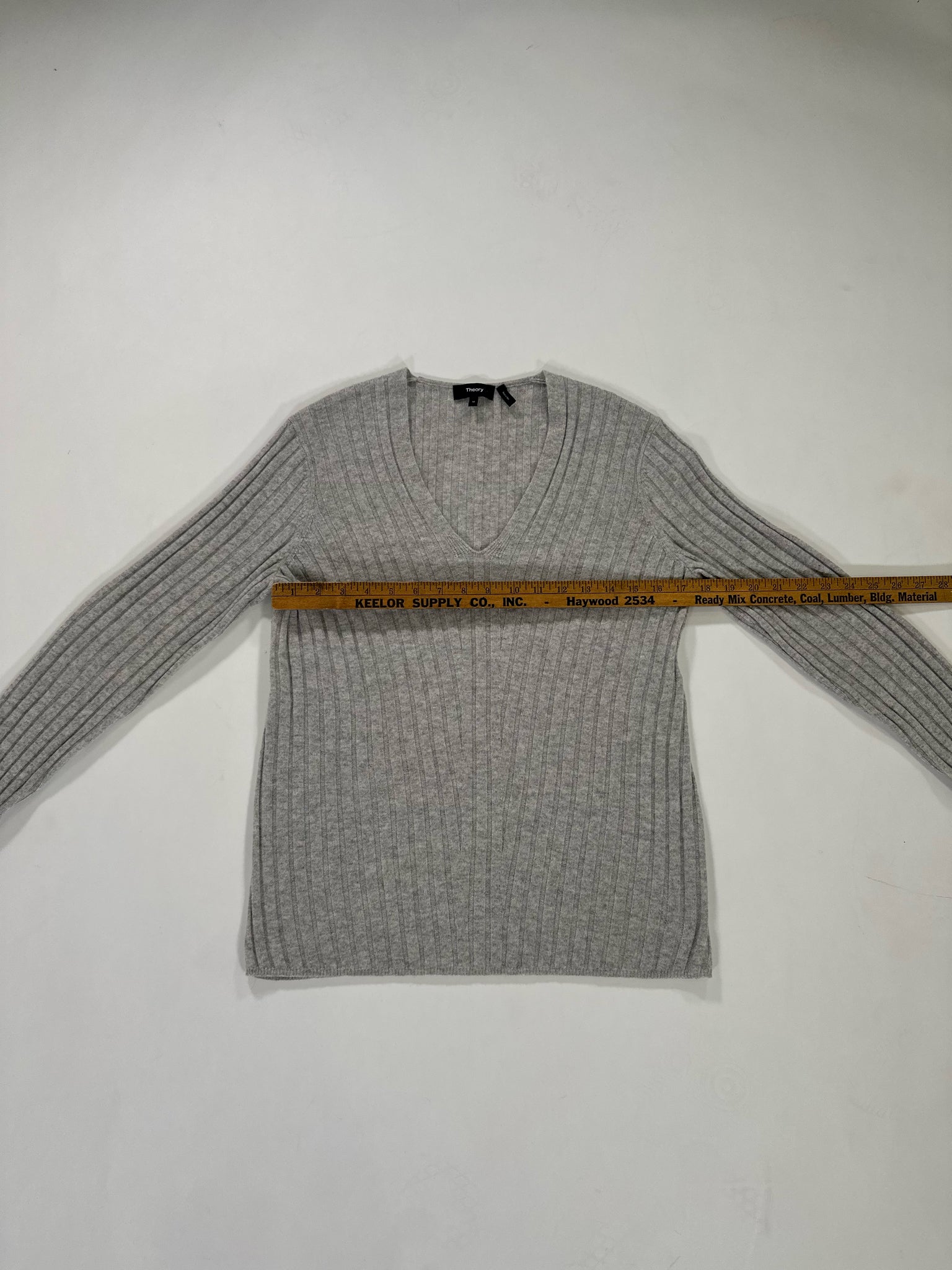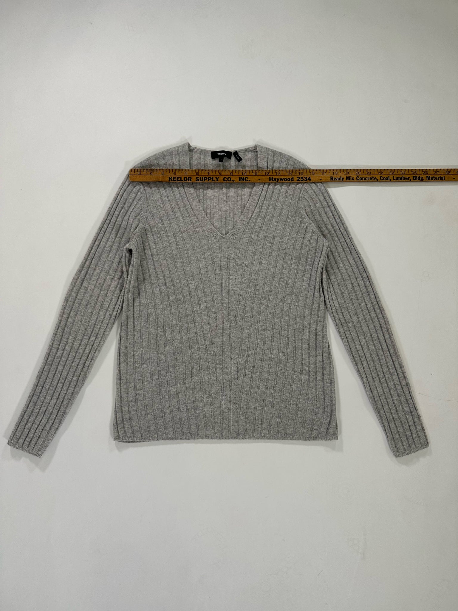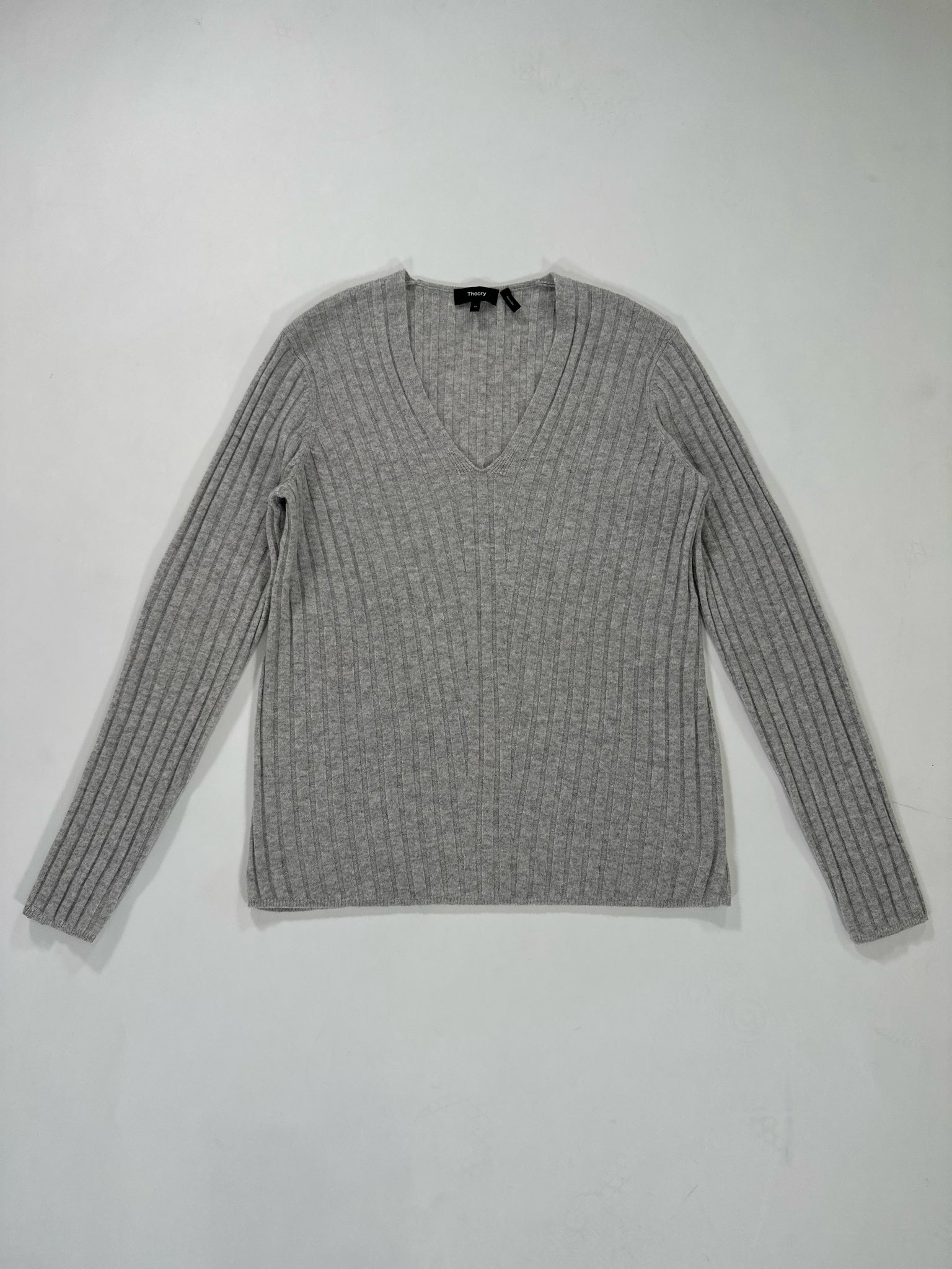 THEORY Size M GREY SWEATER V NECKLINE CASHMERE LONG SLEEVES RIBBED - GREY / M is backordered and will ship as soon as it is back in stock.