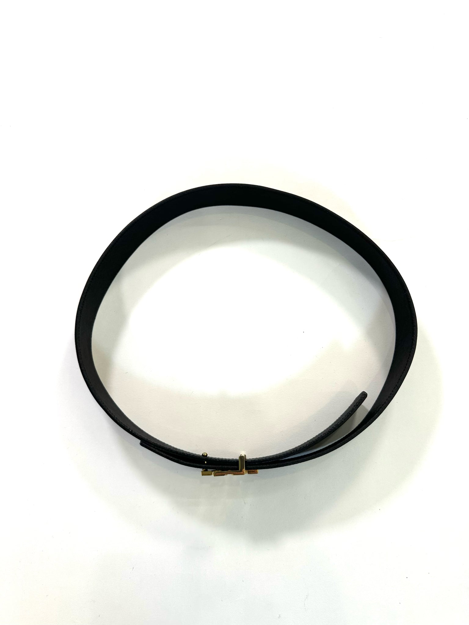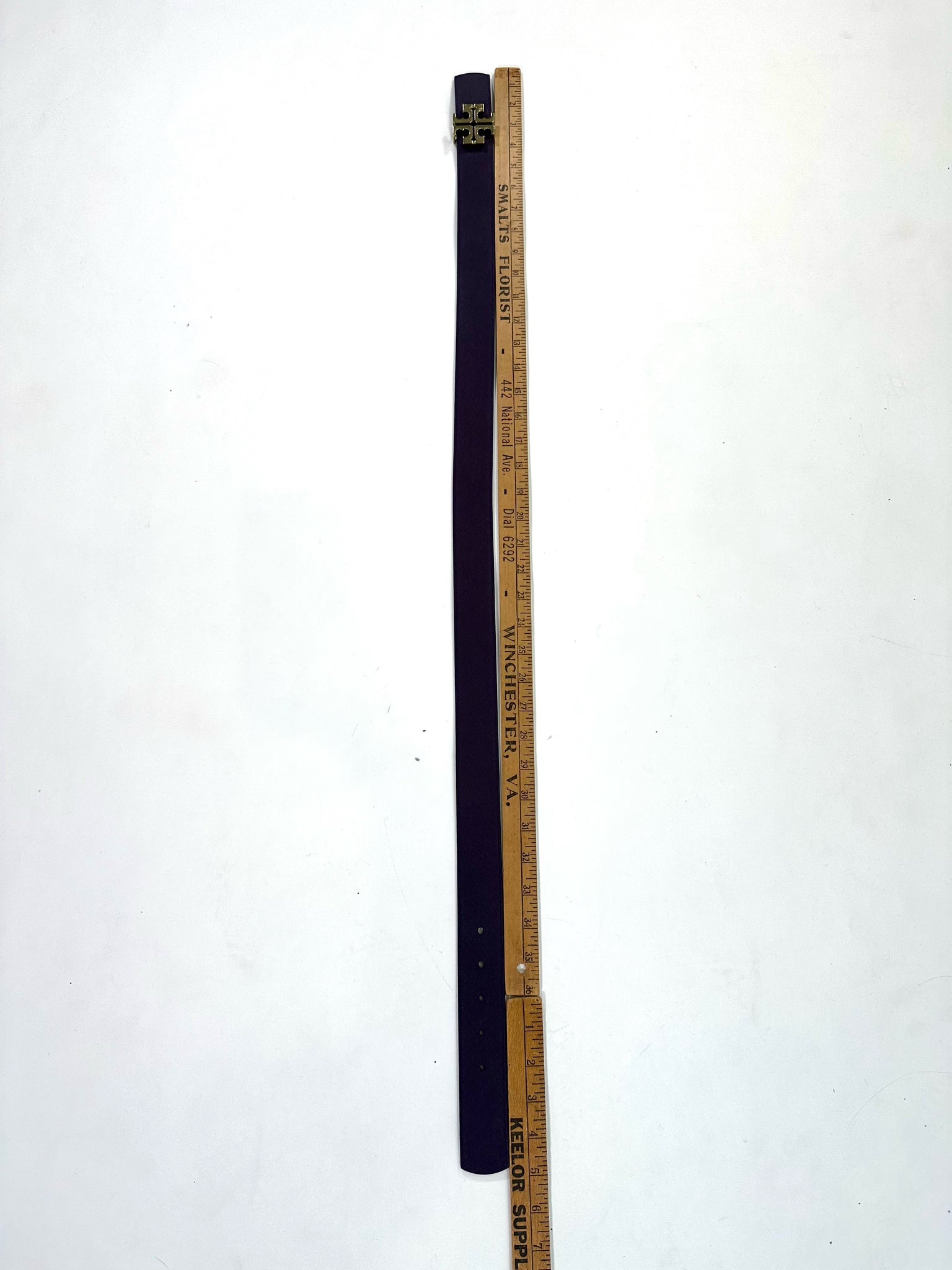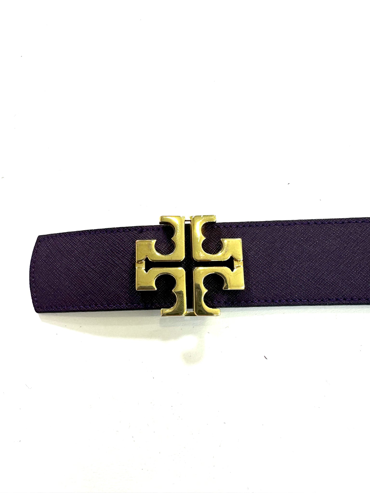 TORY BURCH Size XS MULTI BELT AUBERGINE REVERSE BLACK LOGO GOLD TONE BUCKLE