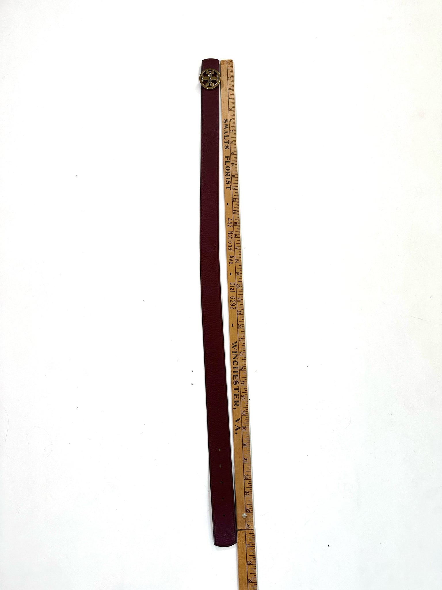 TORY BURCH Size XS MULTI BELT OXBLOOD REVERSE TAUPE LOGO BUCKLE GOLD TONE