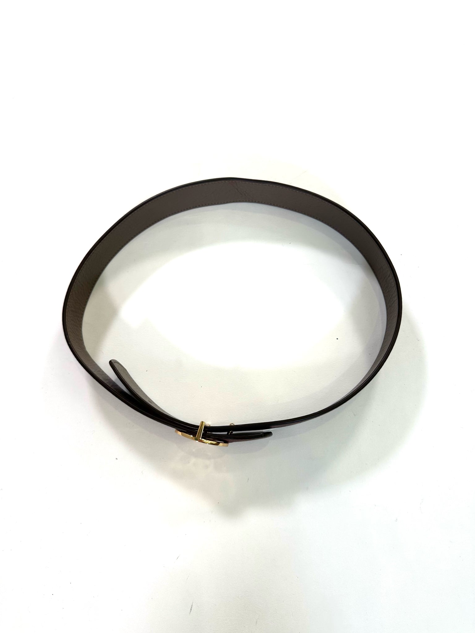 OXBLOOD REVERSE TAUPE LOGO BUCKLE GOLD TONE