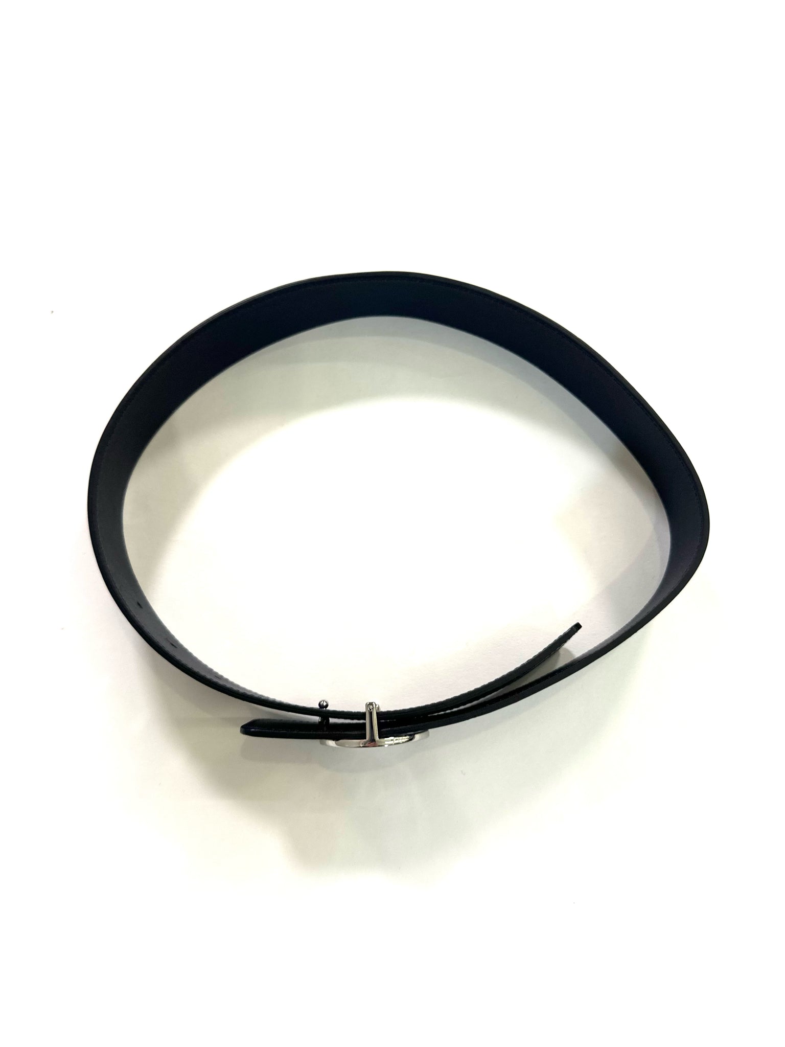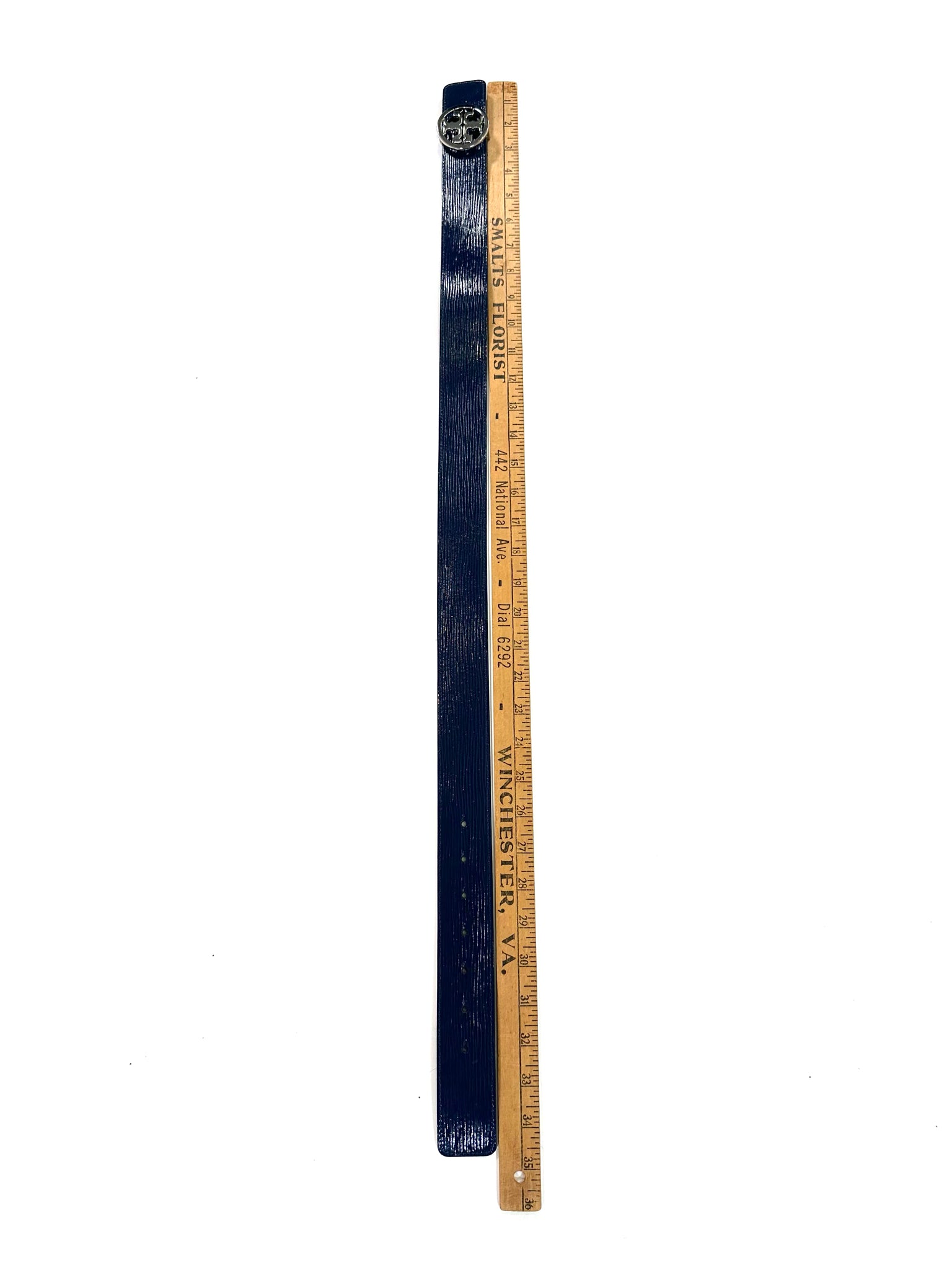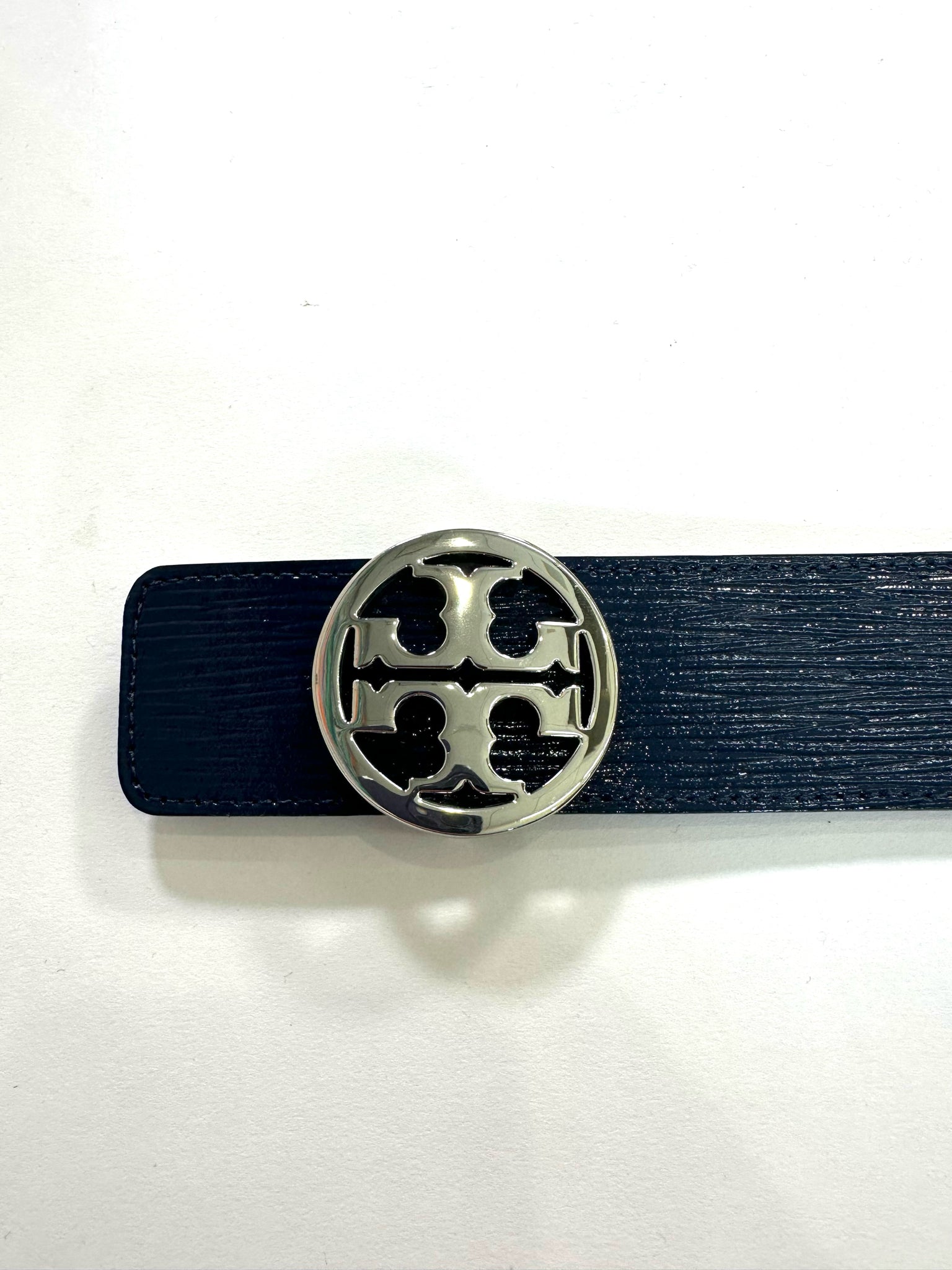 TORY BURCH Size XS NAVY BELT PATENT LEATHER SILVE R TONE LOGO BUCKLE