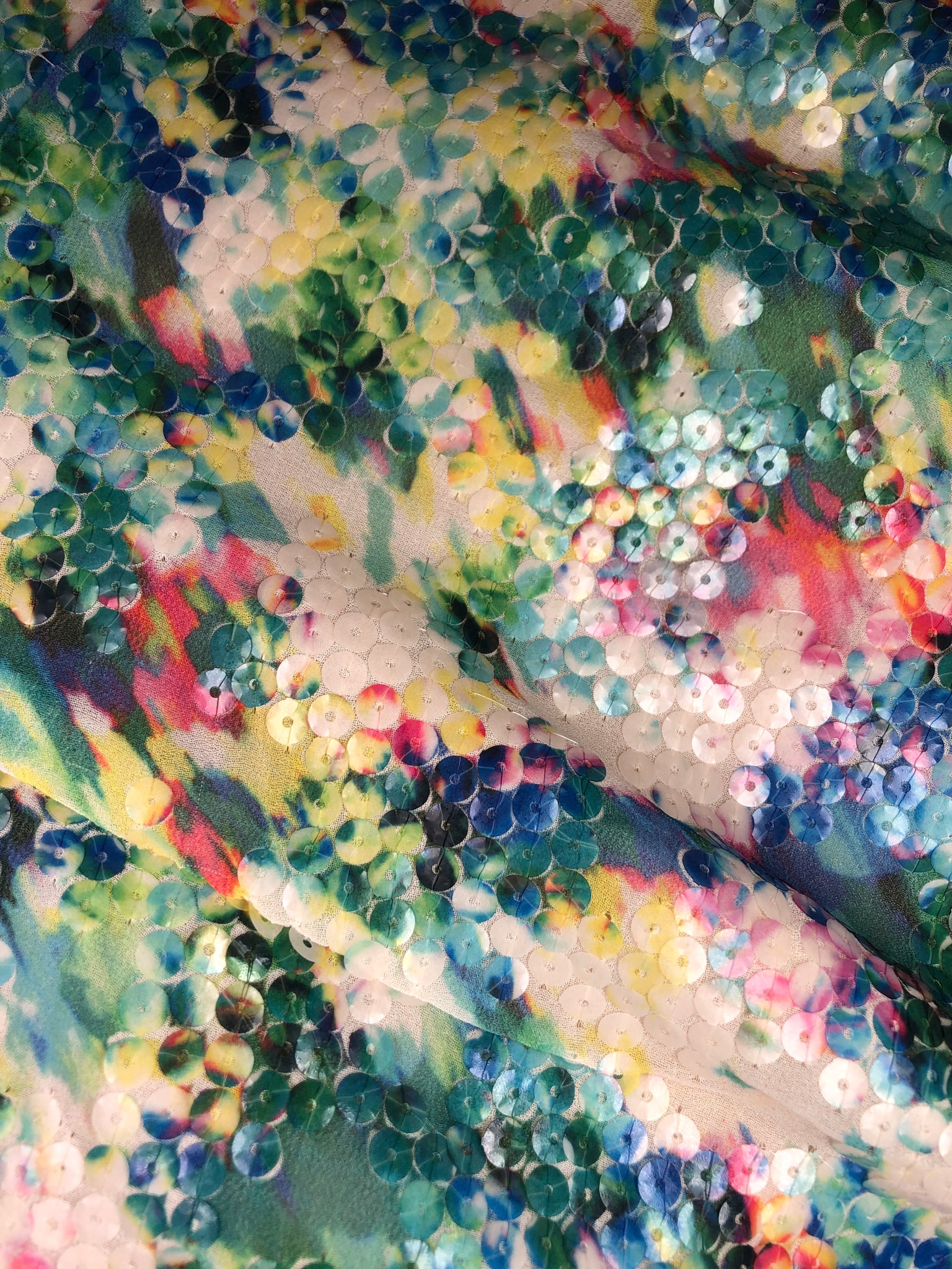 GREEN BLUE PINK WHITE YELLOW SL V SECRET GARDEN SEQUINS "MONET" POLY