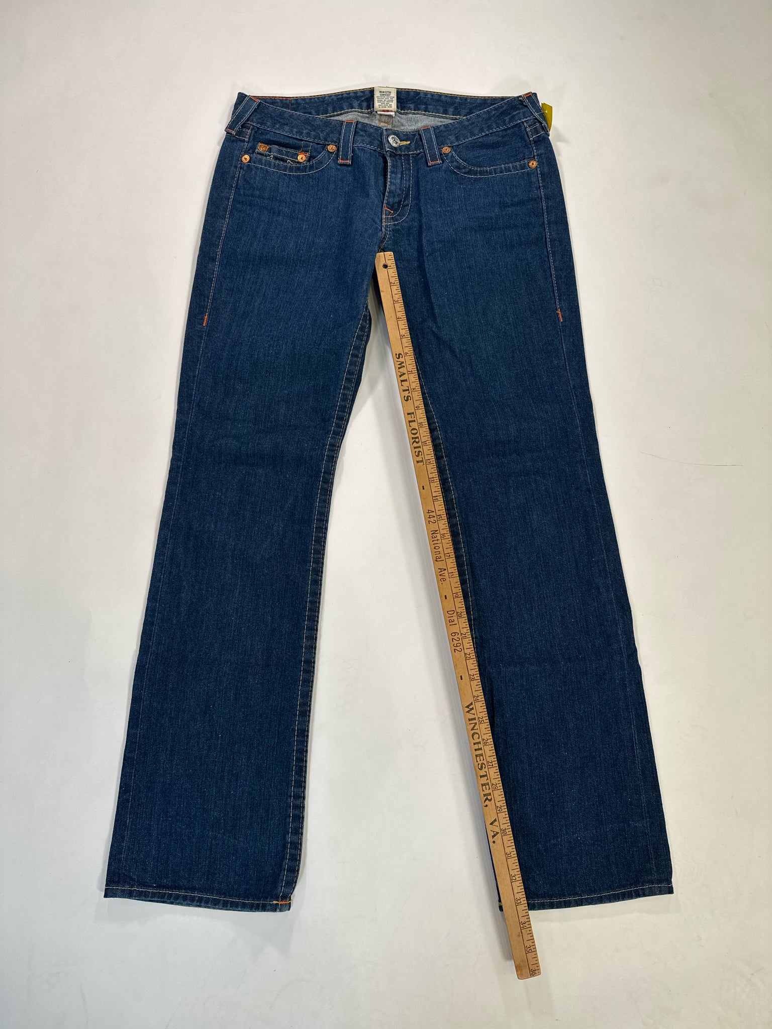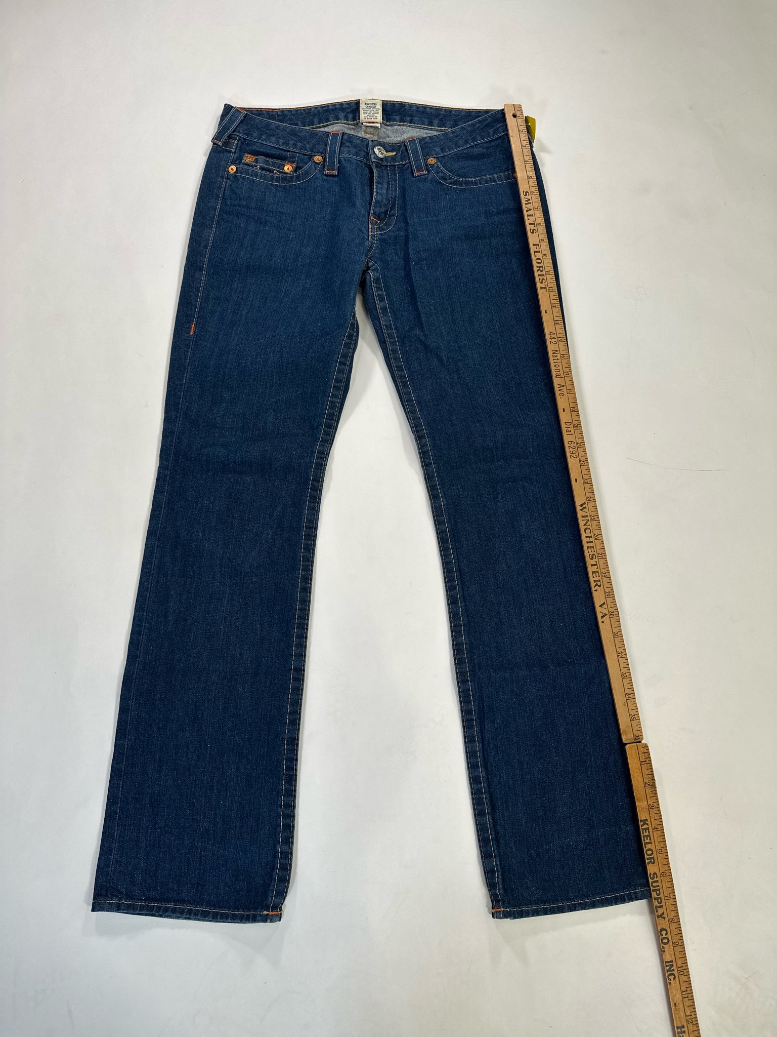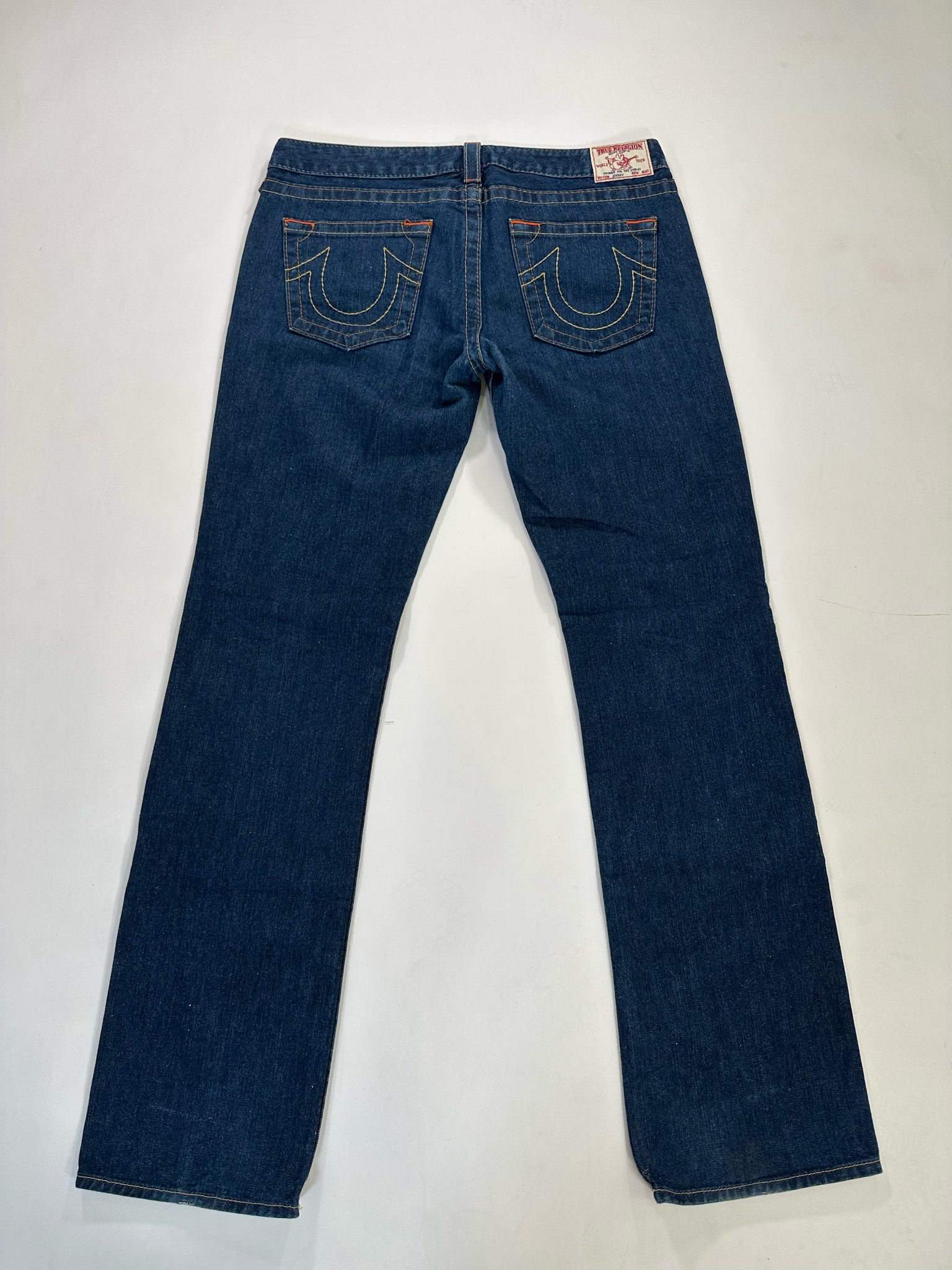 TRUE RELIGION Size 32 NAVY SLACK DENIM RED TOP STITCHING
